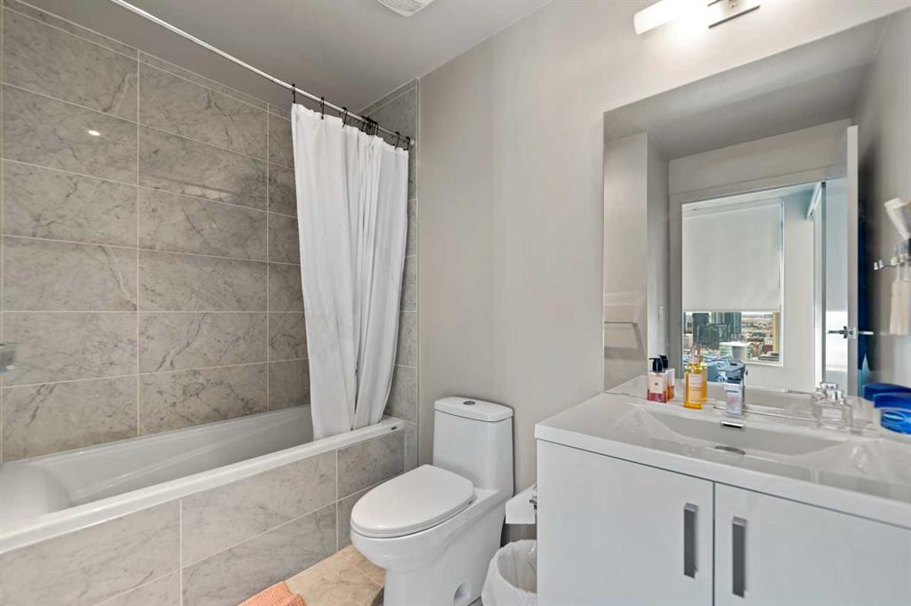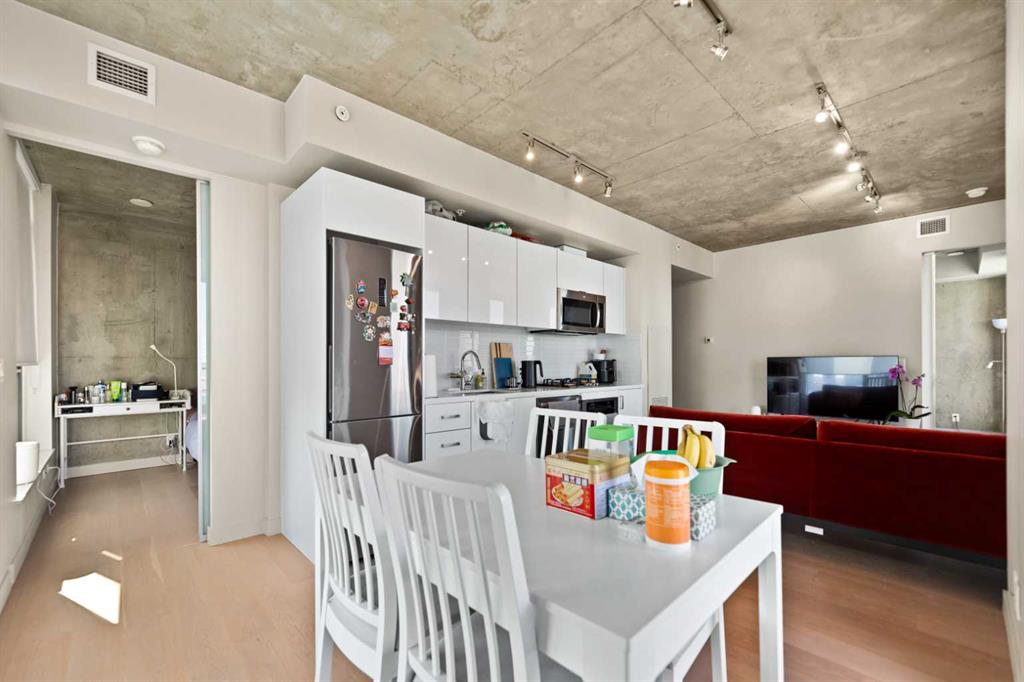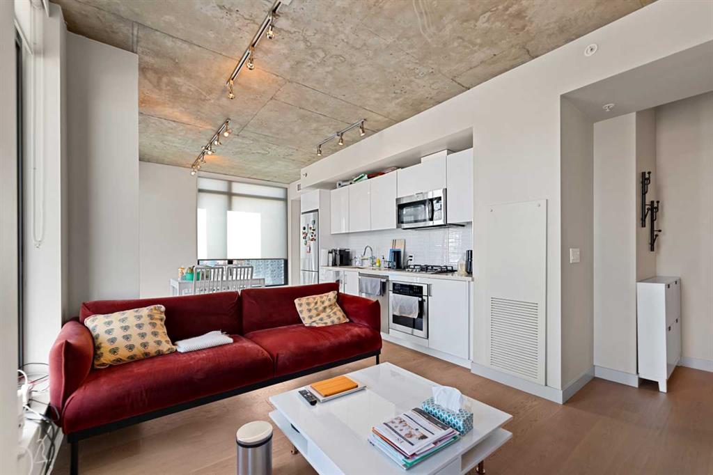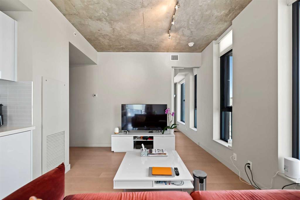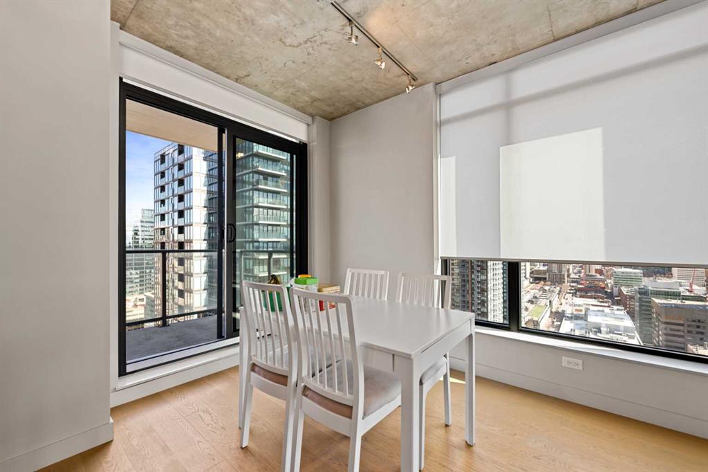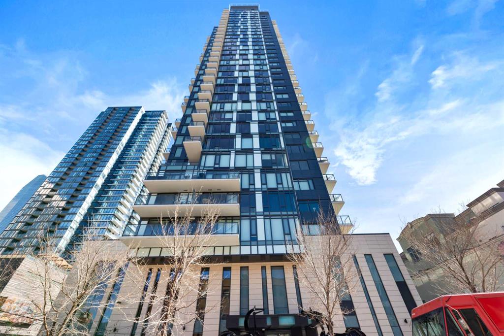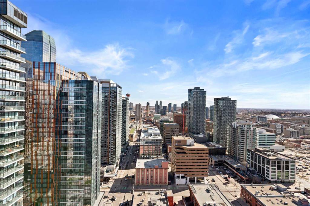 Experience elevated urban living in this stunning 2-bedroom, 2-bathroom corner unit on the 28th floor of the sought-after 6th and Tenth building in Calgary’s Beltline. Nearly floor-to-ceiling windows frame sweeping city and mountain views, filling the open-concept layout with natural light and highlighting its sleek industrial design. The modern kitchen features quartz countertops, a gas range, and stainless-steel appliances, seamlessly flowing into the living and dining areas. Step onto the large private balcony to unwind, entertain, or enjoy breathtaking sunsets over the skyline. Additional features include in-suite laundry, central air conditioning, and one titled underground parking stall. Residents enjoy premium amenities such as a fitness centre, outdoor pool, concierge service, and stylish recreation spaces. Each floor also offers a garbage chute—an uncommon convenience in most condo buildings. Located in the heart of downtown, you’re steps from top restaurants, shopping, entertainment, transit, and the Calgary Stampede grounds. The building is short-term–rental friendly, offering a rare turn-key opportunity for investors. Don’t miss your chance to own this exceptional high-rise home in one of Calgary’s most vibrant communities.