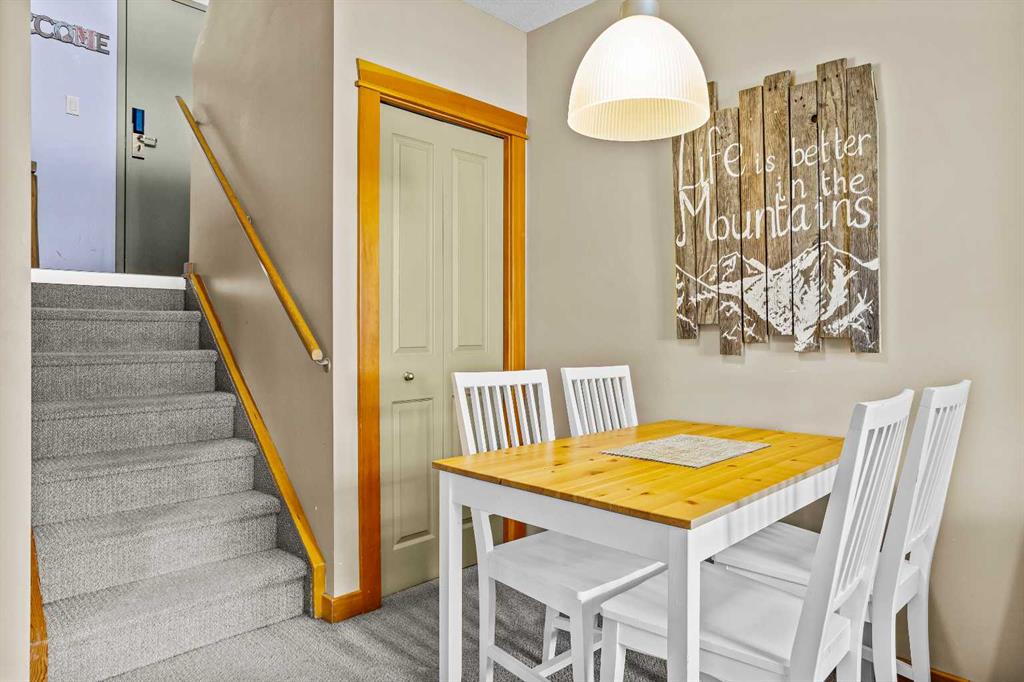 TOP FLOOR | $85K COMBINED RENTAL INCOME | Zoned for Nightly Rentals This fully furnished 2-bed, 2-bath condo in The Lodges at Canmore offers exceptional short-term rental potential, generating $85,000 last year through Airbnb, personal, and corporate rentals. Located on the top floor, this two-level unit features an open-concept layout, gas fireplace, large windows, and a private deck with stunning Lady MacDonald views. Upstairs, enjoy a private primary suite with ensuite. Amenities include a year-round heated pool, 3 hot tubs, fitness center, heated underground parking, and secure elevator access. Just a short walk to downtown, this property is ideal as a personal getaway or high-performing rental investment. Whether you’re seeking a full-time residence, weekend retreat, or income property, this unit ticks all the boxes. All furniture is included in the sale.