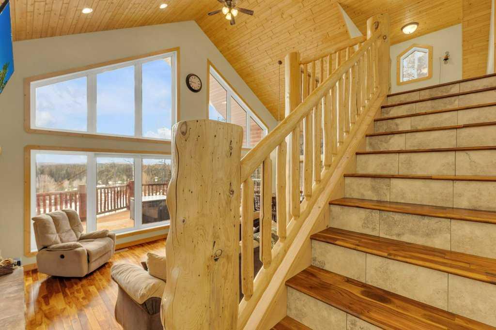 Set among the natural beauty of Nordegg, this exceptional cabin offers the perfect blend of rustic elegance and modern comfort. Designed with intention and craftsmanship, this conventionally framed home is highlighted by signature log railing details and warm natural finishes that create an inviting, upscale mountain atmosphere. Inside, the home opens to a dramatic great room with soaring vaulted ceilings and a striking wall of windows that capture uninterrupted valley views. Natural light pours in throughout the day, enhancing the rich textures and tones of the interior. The thoughtfully designed layout includes: A spacious open-concept living and dining area centered around a cozy fireplace. A well-equipped kitchen featuring hickory cabinetry and generous workspace. Currently configured to comfortably accommodate 7 beds and 3 baths, this property offers exceptional flexibility—whether for personal use, or hosting family and friends, with the basement conveniently having its own entrance. Step outside to the expansive deck, where the surrounding forest and distant views create a peaceful, private setting. Whether enjoying your morning coffee or watching the sun set over the valley, this outdoor space is truly a highlight. This home is being offered furnished - as is, making it an ease to start enjoying right away. Located just a short drive from Crescent Falls, Abraham Lake, and an abundance of outdoor activities, this property offers year-round enjoyment in one of Alberta’s most scenic destinations.