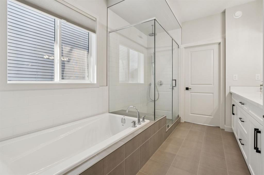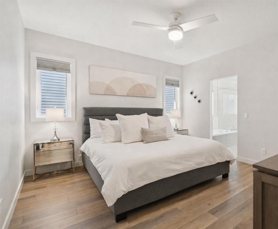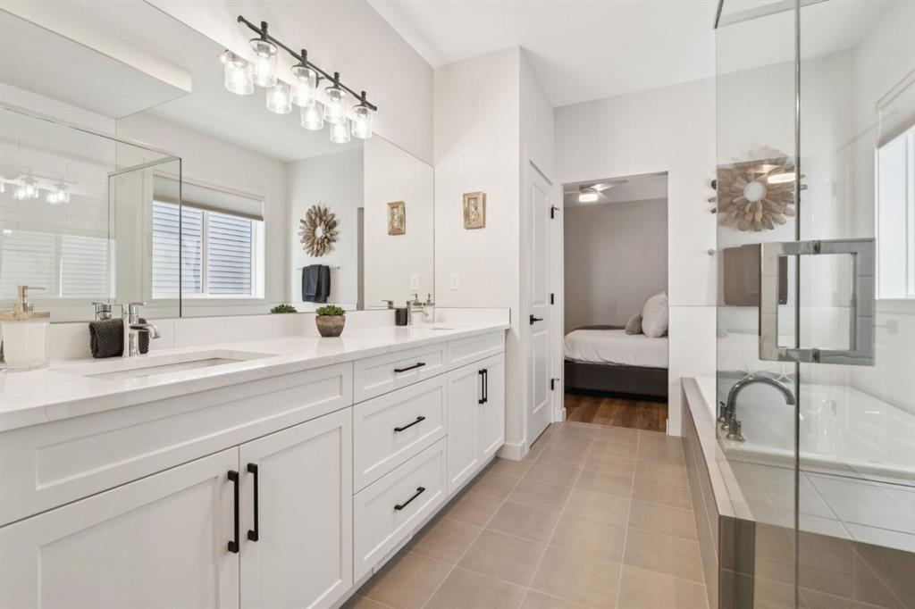 FULLY FINISHED BUNGALOW I IMMACULATE & BEAUTIFULLY MAINTAINED BUILT IN 2024 I WHITE KITCHEN WITH FULL-HEIGHT CABINETRY I QUARTZ COUNTERTOPS I GAS FIREPLACE WITH MANTLE I LUXURY VINYL PLANK FLOORING PRIMARY RETREAT WITH 5-PIECE ENSUITE I IN-FLOOR HEATING IN ENSUITE WALK-IN CLOSET WITH LAUNDRY (WASHER & DRYER) I FULLY DEVELOPED BASEMENT I HIGH CEILINGS IN BASEMENT I TWO ADDITIONAL BEDROOMS 200-AMP ELECTRICAL PANEL I HOT WATER ON DEMAND I FULL-WIDTH DECK WITH PRIVACY WALLS I HOT TUB & GAZEBO ON CONCRETE PAD I LOW-MAINTENANCE BACKYARD I LOCATED IN THE COMMUNITY OF FIRESIDE Welcome to this stunning, FULLY FINISHED BUNGALOW built in 2024, offering QUALITY UPGRADES and a modern, functional layout designed for effortless living. The main floor features LUXURY VINYL PLANK FLOORING, a spacious foyer, and a generous PRIMARY RETREAT with a 5-PIECE ENSUITE. This spa-inspired space includes IN-FLOOR HEATING, QUARTZ COUNTERTOPS, DOUBLE UNDER-MOUNT SINKS, a TILED WALK-IN SHOWER with bench and glass surround, and a relaxing SOAKER TUB. The WALK-IN CLOSET is thoughtfully designed with MDF shelving and includes a WASHER & DRYER for added everyday convenience. The OPEN-CONCEPT living area is perfect for entertaining, highlighted by a GAS FIREPLACE WITH MANTLE and a bright WHITE KITCHEN featuring QUARTZ COUNTERTOPS, FULL-HEIGHT CABINETRY, SOFT-CLOSE DOORS & DRAWERS, and PULL-OUT GARBAGE & RECYCLING. The FULLY DEVELOPED BASEMENT offers HIGH CEILINGS, plush carpet, TWO ADDITIONAL BEDROOMS, a LARGE STORAGE AREA, and a beautifully finished bathroom complete with QUARTZ COUNTERTOP, UNDER-MOUNT SINK, TILE FLOORING, and a TUB/SHOWER COMBINATION. Additional upgrades include a 200-AMP ELECTRICAL PANEL and HOT WATER ON DEMAND. Step outside to enjoy the UPGRADED BACKYARD, featuring a FULL-WIDTH DECK with PRIVACY WALLS, plus a PRIVATE HOT TUB and GAZEBO set on a CONCRETE PAD with PATIO STONES—perfect for relaxing or entertaining. Located in the desirable community of FIRESIDE, this home offers a PEACEFUL, LOW-MAINTENANCE LIFESTYLE ideal for COUPLES, DOWNSIZERS, and those seeking a more RELAXED PACE. With WALKABLE PATHWAYS, PARKS, nearby SHOPS & AMENITIES, and EASY ACCESS to major routes, Fireside blends comfort, convenience, and community.