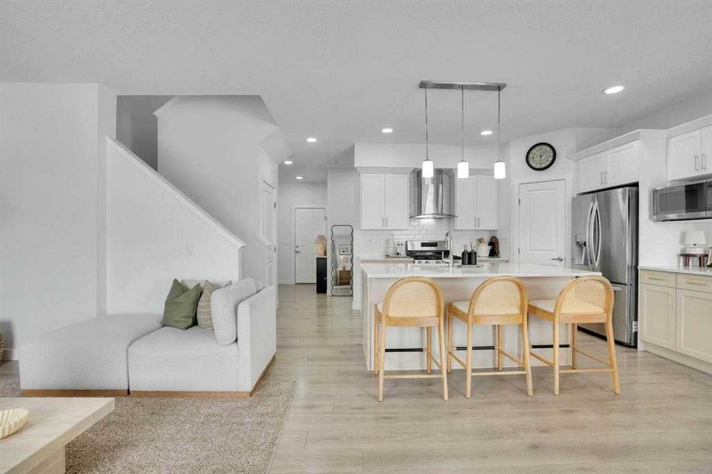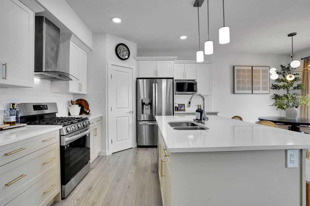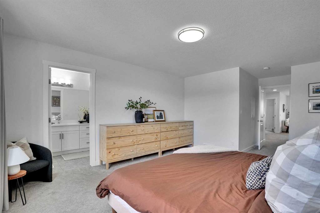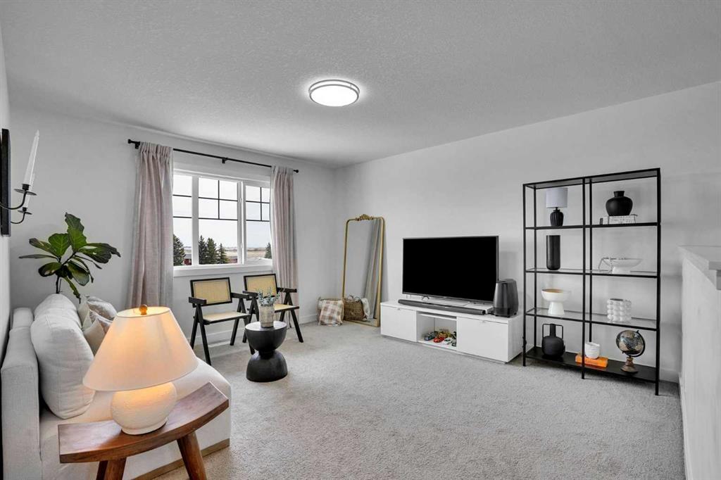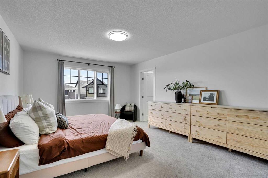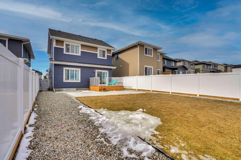 Welcome to this stunning home located in the sought after community of Air Ranch—where upscale living, modern style, and exceptional functionality come together! This beautifully maintained property offers 4 bedrooms, 2.5 baths, and a double attached garage, complete with an extended, widened driveway that provides generous additional parking. From the moment you arrive, you’ll appreciate the thoughtful upgrades, including a concrete walkway that leads to the fully maintenance free backyard—perfect for effortless outdoor living. Enjoy summer evenings on your spacious concrete patio or relax on the upper deck. There’s a gas line hookup for easy summer barbecues, so no need to hassle with propane—just fire it up and enjoy. Step inside to a bright, open concept main floor featuring a flex room/bedroom, a spacious foyer, and a stylish living area highlighted by a center electric fireplace. The chef inspired kitchen showcases a good size quartz island, modern cabinetry, and seamless flow into the dining area with sliding doors to the backyard—ideal for entertaining. Upstairs, retreat to your luxurious primary suite complete with a spa like 5 piece ensuite. The upper level also features two additional generous bedrooms, a 4 piece bath, a cozy bonus room, and a conveniently located laundry room. The unfinished basement is wide and open for your creative design and also features a rough in for a bathroom and a side entrance, offering excellent future development potential. Located close to schools, playgrounds, pathways, grocery stores, and essential amenities—plus just a short drive to South Health Campus—this home offers the perfect blend of comfort, convenience, and style. Pride of ownership is evident throughout, making this a true showstopper you won’t want to miss!