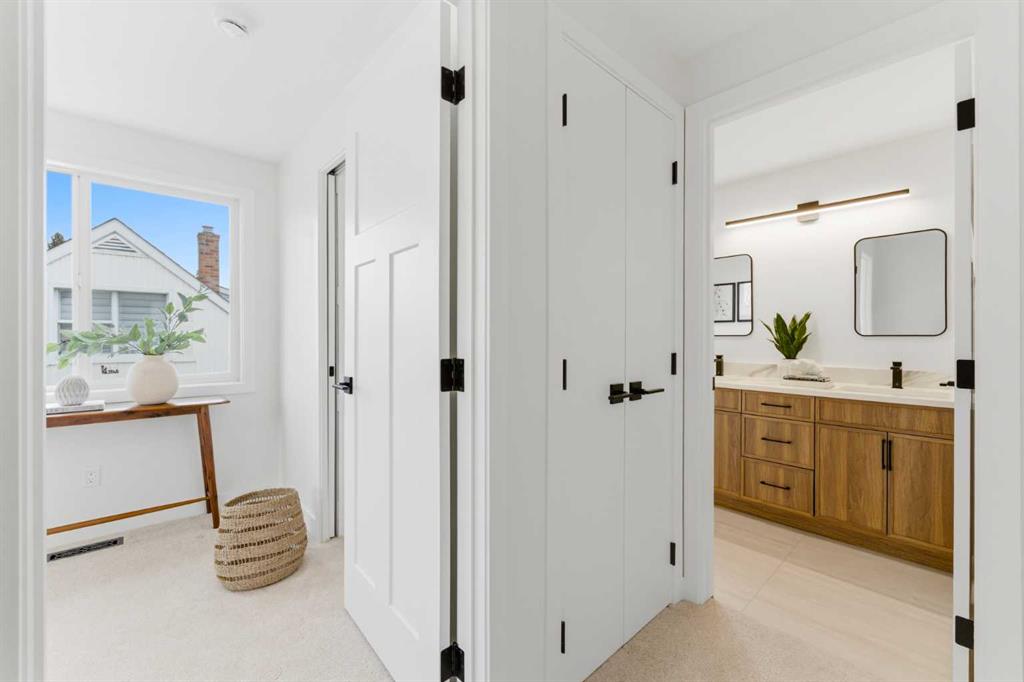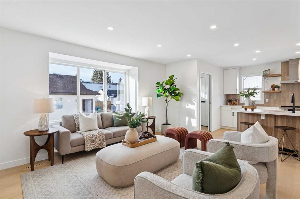 Never Lived in just completed Extensive renovations with PERMITS with an UPPER ADDITION, this exceptional half duplex is located on one of Garrison’s most desirable streets and offers a rare OVERSIZED, FULLY FENCED WEST-FACING BACKYARD. NO CONDO FEES! Thoughtfully redesigned, the home features an EXPANDED PRIMARY SUITE with an added full bathroom, creating a layout that lives like a modern detached home. Open the door to a beautifully REIMAGINED space where GORGEOUS WHITE OAK CANADIAN HARDWOOD flooring flows throughout, complemented by soft NEUTRAL WHITE TONES and an abundance of NATURAL LIGHT. The main level welcomes you with a stylish FRONT POWDER ROOM featuring a window and custom vanity, leading into a bright OPEN-CONCEPT layout enhanced by structural beam work. The spacious LIVING ROOM overlooks your private yard and seamlessly connects to the CHEF-INSPIRED KITCHEN, complete with elegant TWO-TONE CABINETRY, expansive QUARTZ COUNTERTOPS, DESIGNER TILE, BRAND NEW STAINLESS STEEL APPLIANCES, POT LIGHTING, and a central ISLAND perfect for morning coffee or entertaining. A SEMI-PRIVATE DINING AREA with a view completes this elevated main floor. Upstairs, TWO GENEROUSLY SIZED BEDROOMS offer excellent closet space, including the ENLARGED PRIMARY RETREAT. The upper level is complemented by a LUXURIOUS MAIN BATHROOM featuring a DOUBLE VANITY, SOAKER TUB with shower, a large window for natural light, and modern BLACK ACCENT PLUMBING FIXTURES that elevate the overall design. This level blends comfort and sophistication, ideal for everyday living. The FULLY DEVELOPED BASEMENT has been designed to feel bright and functional, with OVERSIZED WINDOWS allowing natural light to pour in. This space offers a versatile MEDIA OR GAMES AREA, a SPACIOUS THIRD BEDROOM, and a beautifully finished FULL BATHROOM with a WALK-IN TILED SHOWER and glass enclosure. Additional features include dedicated LAUNDRY SPACE, ample storage, and all NEW MECHANICAL SYSTEMS including a furnace, updated electrical, ON-DEMAND HOT WATER, new washer and dryer, and a new city water line, with shingles approximately three years old. The PRIVATE BACKYARD provides a friendly space to garden, relax, and enjoy the mature trees surrounding you. Perfect for professionals, downsizers, or anyone seeking a WALKABLE INNER-CITY LIFESTYLE, this location places you steps to parks, river pathways, Sandy Beach, and minutes to Marda Loop, Altadore, and downtown, all set within lively streets and a vibe you won’t forget. Shingles Home and Roof approx 3 yrs old!