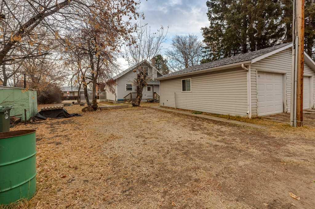 This beautifully maintained character home blends classic architectural details with key updates, all set on a mature oversized lot in a quiet, established neighborhood. Inside and you’ll appreciate the warmth of this inviting 1.5-storey home-from its distinctive rooflines to classic touches like glass doorknobs combined with updated flooring and modern finishes. The main floor features a generous front living room and a spacious eat-in kitchen with excellent cabinet and counter space. This level also includes the primary bedroom, an office (or second bedroom), a 3-piece bathroom, and the convenience of main-floor laundry. Upstairs, two large bedrooms with beautiful, pitched ceilings create comfortable, versatile spaces for kids, guests, or additional workspace. A well-kept 3-piece bathroom with a clawfoot tub enhances the character of the upper level. The basement is almost fully developed, with its current framing, drywalling, and layout already in place. The lower level has a 5th bedroom that would easily be completed with some flooring and paint, with room for a potential 6th bedroom or additional hobby/storage areas depending on your needs. Outside, the expansive yard is a standout feature offering raised garden boxes, a fire pit area, mature trees, and a convenient garden shed. You’ll also find a classic clothesline, perfect for anyone who enjoys fresh-air-dried laundry (or simply wants to save a little on electricity- delightfully “old-school” :) . The double detached garage provides parking and workspace and there is plenty of additional room to park an RV off the alley. Located close to schools, parks, the hospital and downtown amenities, with updated vinyl windows, a 2022 furnace, and a blend of character and modern improvements- this home is comfortable, efficient, and full of personality!
