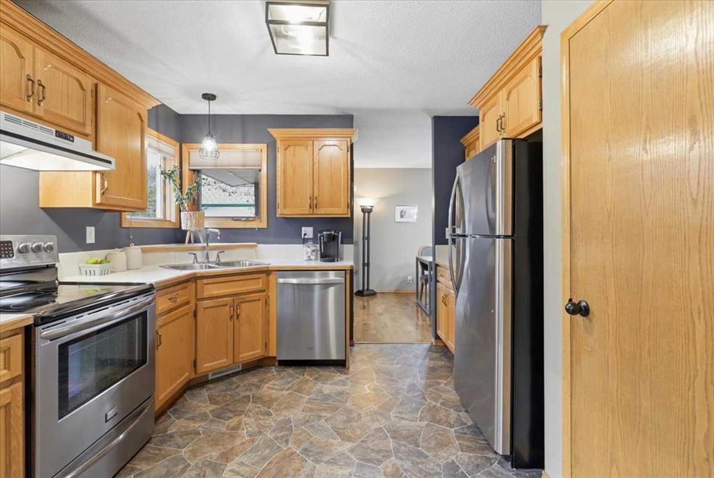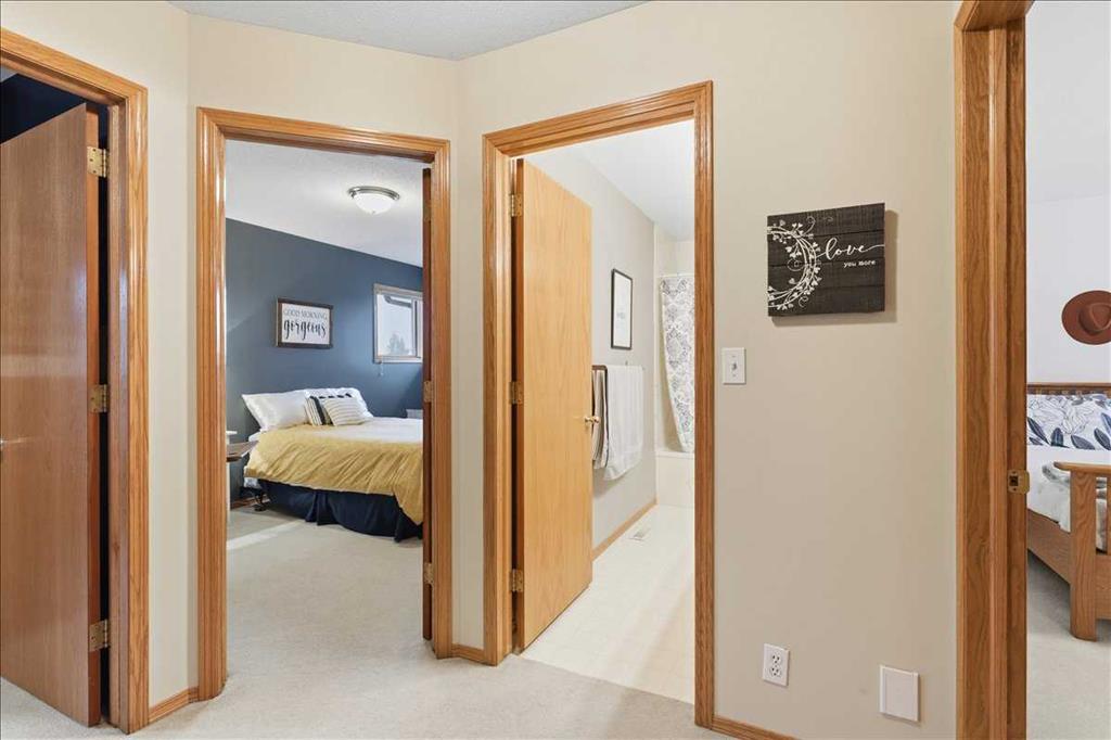 This Beautiful home shows off its pride of ownership inside and out! Enter the home to the main floor to find the living room, dining room, kitchen, family room, 2 piece bathroom, and laundry room with access to the spacious double attached garage. The Upper level host a 4 piece bathroom, and three bedrooms including the primary with its own walk-in closet and 4 piece ensuite bathroom. The fully finished basement has another 4 piece bathroom, bedroom, den, utility room, and a large rec area. The home has many upgrades including shingles, vinyl siding, and stone done within the last 5 years. A large deck over looks the back yard with mature trees, fire pit, and back lane keeping it private. Close to parks and amenities this property has to be viewed in person to truly appreciate everything it holds! Listing agent is related to the Seller.
