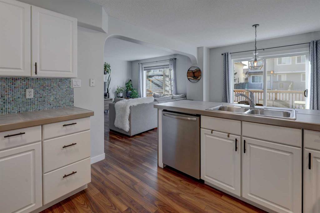Welcome Home to this well cared for & modern feeling home - perfect for young & growing families! Stonegate is a wonderful, family friendly community offering walkability to Superstore, restaurants & everything north Airdrie has to offer, including the TriSchool site - k to 12 learning in either English or French! This fully finished home shows pride of ownership throughout & big ticket items already taken care of - FURNACE is 2 years old & HOT WATER TANK is 4 years old. Walk up your front drive and note the timeless stonework, covered front veranda & storm door. You are greeted by a spacious foyer w/soaring ceilings & soft, muted modern paint colors throughout. Off to your right is the half bath updated w/modern floors & colors & your MAIN FLOOR LAUNDRY. OPEN CONCEPT main floor living is highlighted by modern lighting, SOUTH windows, a spacious living room, white kitchen with large peninsula, funky backsplash & corner pantry. The upper level is host to 2 very spacious secondary bedrooms (one is the size of some primary bedrooms) serviced by a 4 pc bathroom. The private master retreat is massive (almost 180 sq ft) & features a WIC & spacious 4 pc ENSUITE. The lower level of this home is fully finished, featuring a large rec room, 2 pc. bathroom (w/room to put in a corner shower if desired) as well as lots of storage. Come on outside to your SOUTH BACKYARD featyring a huge tiered deck perfect for relaxing on a warm summer day! There is lots of space to watch the kids run & play & if you find it warm one day An attached double garage, double driveway & some street parking complete this package. Close to schools, parks, shopping, playgrounds and parks! This home is a great property for any family - come and have a look!