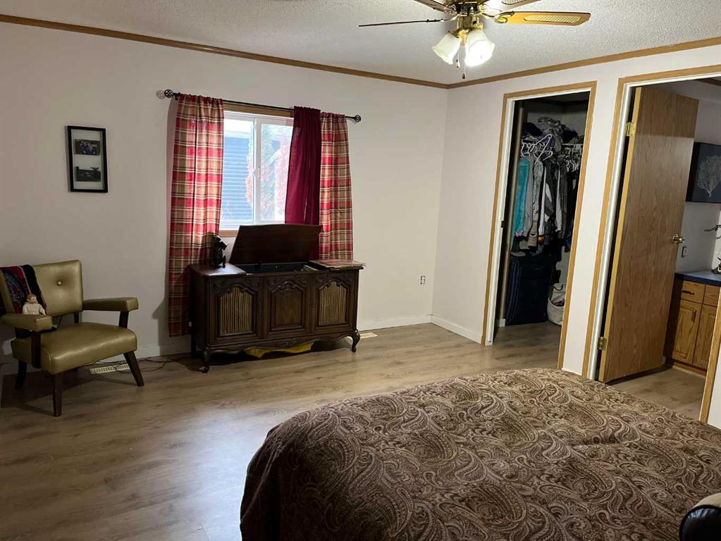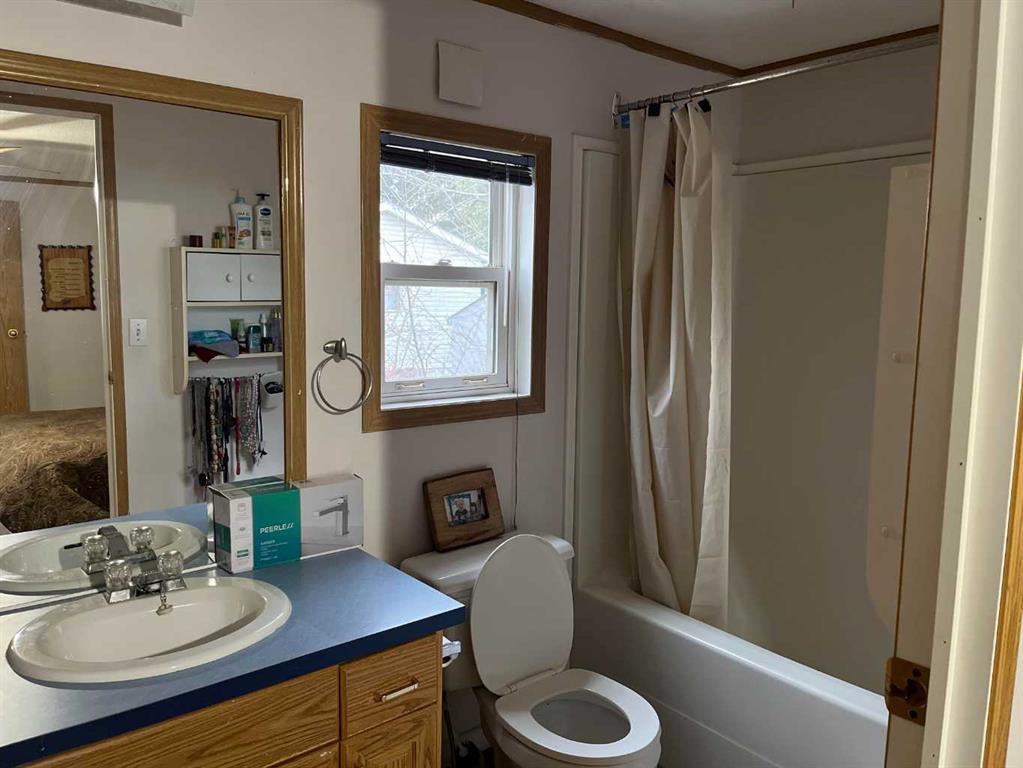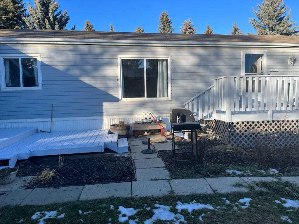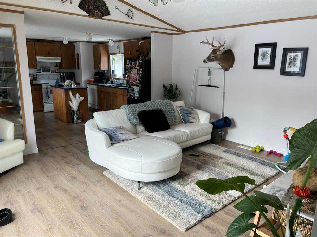 Spacious mobile home on a quiet street with beautiful mature trees, established perennials, and a matching shed. The living and kitchen area is a large open space with lots of light, and tons of cupboard space as well as a kitchen island. The master bedroom features a walk-in closet, 4 piece bathroom with a soaker tub, and enough room for a king bed. Another 2 fair sized bedrooms, a 4 piece bathroom, laundry room, and a large addition finish off the home with room for all of your extra belongings. Recent updates include shingles, flooring, paint, and baseboards in 2023. Approval by Pinecrest Estates must be a condition.