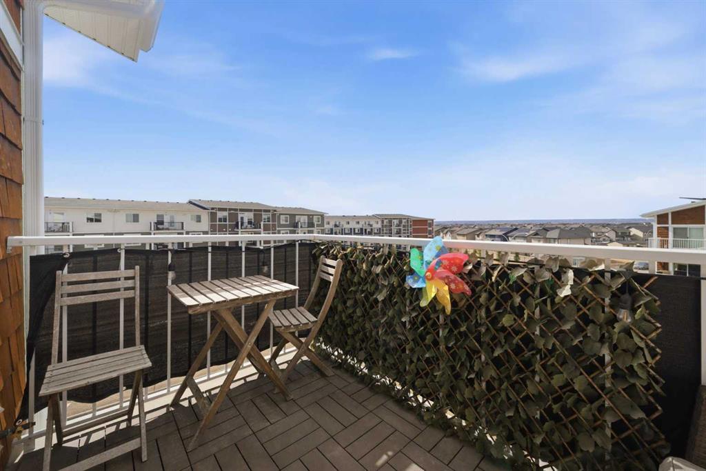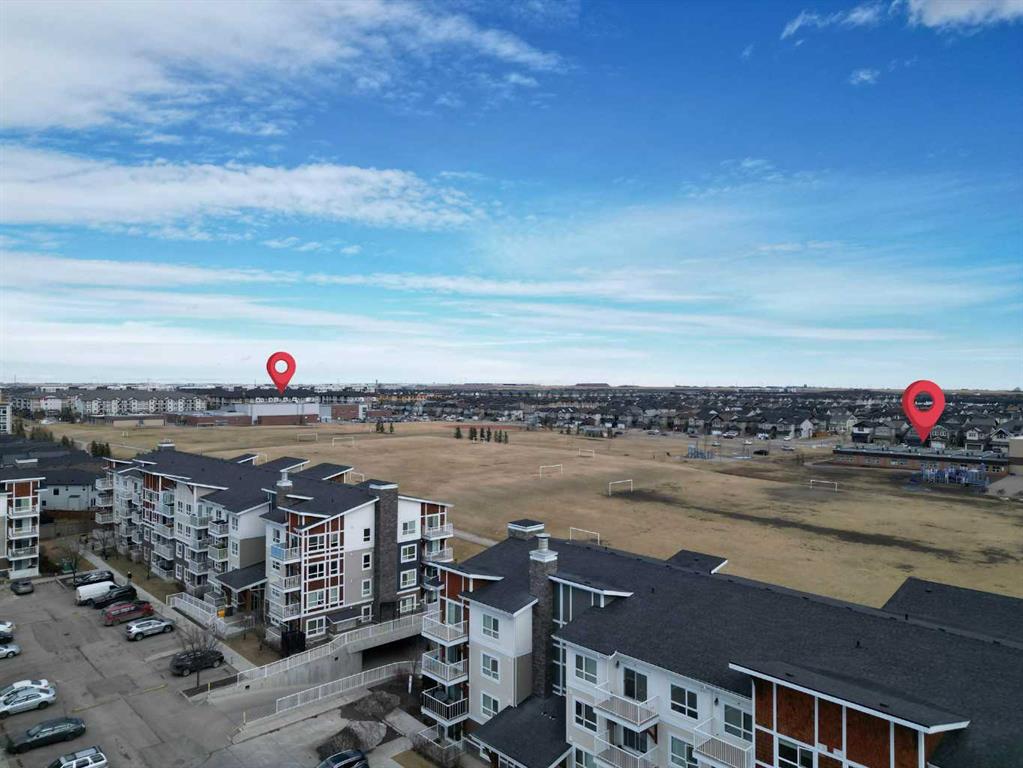 Welcome to this top floor, corner unit in Skyview Ranch, because more light, more privacy, and no upstairs neighbors is always the move. This 2 bedroom, 2 bathroom condo features a bright open-concept layout with quartz countertops, modern cabinetry, and a large island that’s perfect for everyday living and entertaining. The living area opens onto your private balcony, creating the perfect place to relax. The primary bedroom includes a walkthrough closet and private ensuite, while the second bedroom and full bathroom offer flexibility for guests or a home office. Complete with in-suite laundry, 1 underground parking stall, 1 above ground parking stall, and storage locker. This unit is located close to shopping, restaurants, and major routes! This is low-maintenance living done right.
