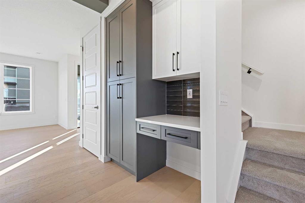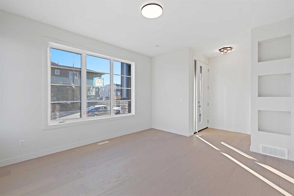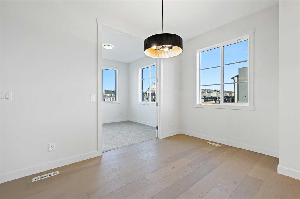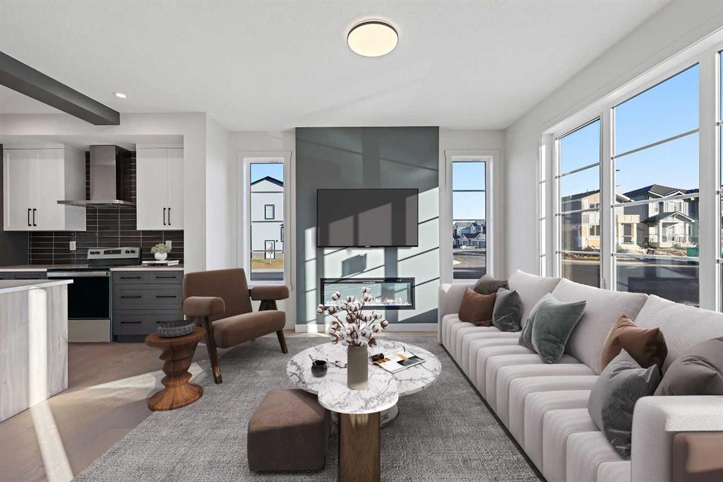 Welcome to this beautifully designed and expertly crafted home located in the vibrant community of Waterford, Chestermere. Offering 1,598 sq. ft., this thoughtfully planned residence features 3 bedrooms, 2.5 bathrooms, and a rear-attached garage, ideally situated on a desirable corner lot. Step inside to discover 8-foot doors throughout, engineered hardwood flooring on the main level, and abundant natural light enhanced by additional side windows. The spacious main floor includes a versatile flex room, a bright great room with an electric fireplace, and a modern kitchen complete with quartz countertops, chimney hood fan, built-in microwave, and stainless steel appliances—perfect for both everyday living and entertaining. Upstairs, the primary suite features a generous walk-in closet and a well-appointed ensuite with dual vanities. The upper level also offers two additional bedrooms, a full bathroom, and convenient upper-floor laundry. Enjoy outdoor living on the treated wood deck, ideal for relaxing or hosting guests. Additional highlights include 9’ ceilings on the main floor and a separate side entry to the basement, offering excellent potential for future development (subject to approvals). First-time home buyers may be eligible for the Government of Canada GST Rebate, offering potential savings (eligibility requirements apply). Located close to parks, pathways, future schools, and everyday amenities, this home presents an exceptional opportunity to own a brand-new property in one of Chestermere’s growing communities. Some photos are virtually staged and taken from a similar floor plan. Actual finishes, features, and colours may vary.