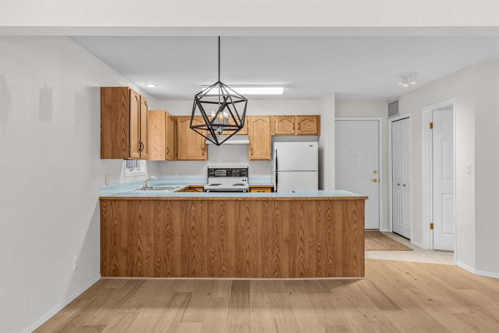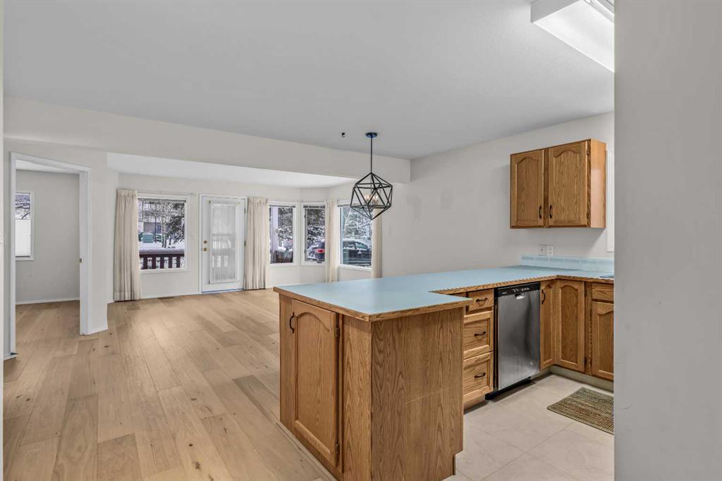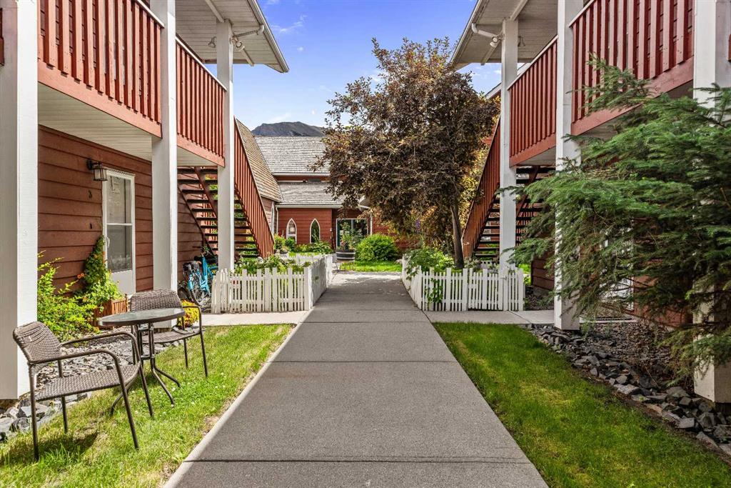 This one bedroom, one bath condo is located in charming St. Michaels Place, a well built 12 unit condo complex located only a block from Main Street in downtown Canmore. Unit 3 is a quiet ground level residence featuring its own private front door entry off a welcoming courtyard. Inside you will find a bright and spacious single level layout. Recent upgrades include beautiful engineered hardwood flooring and durable linoleum. The open concept kitchen, dining and living area are ideal for comfortable everyday living, while the generously sized bedroom offers a peaceful retreat. A laundry/storage room adds valuable functionality. One exterior parking stall is included, entry from the lane. Enjoy easy walking access to trails along the Bow River, nearby park and amenities of downtown Canmore. This property offers a wonderful balance of comfort, quiet, and community in a highly desirable location. Age restriction 40+