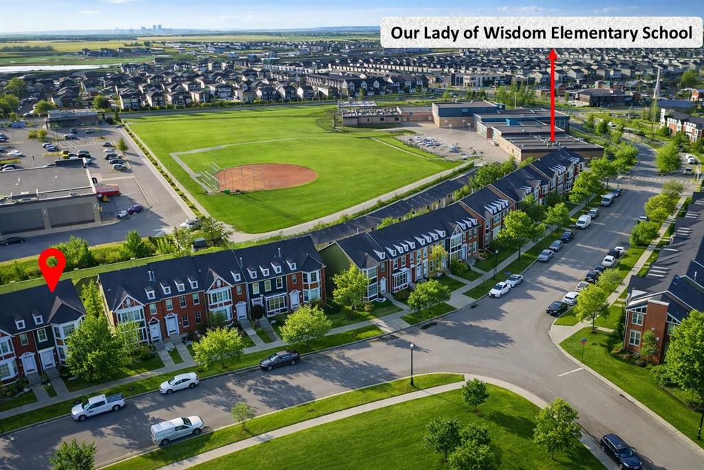 Welcome to this beautifully maintained END-UNIT townhouse offering over 1,800 sq ft of developed living space, including a fully finished walk-out basement. With 1,300+ sq ft above grade plus approximately 600 sq ft in the basement, this home is perfect for families, first-time buyers, or investors, combining comfort, functionality, and an excellent location. The bright open-concept main floor with 9-foot ceilings features a spacious living and dining area filled with natural light. The living room faces the park and fountain and boasts floor-to-ceiling windows, creating a beautiful and relaxing view. The well-appointed kitchen showcases dark cabinetry, a large pantry, an oversized island, and heated floors. A built-in central speaker system with amplifier adds the perfect touch for entertaining and everyday living. Upstairs you’ll find a primary bedroom with large sun-filled windows facing the front park, a walk-in closet with its own window, and a luxurious 5-piece ensuite with heated floors. A spacious second bedroom with large windows facing the backyard, along with a 4-piece bathroom, completes the upper level. The fully developed walk-out basement features a private entrance, full kitchen, and separate laundry (washer & dryer), offering excellent flexibility for extended family or additional living space. Additional highlights include a double attached garage with built-in organizing shelves, a clean and wide back alley, and the added privacy of an end-unit location. Ideally situated directly across from a park and water fountain, and within walking distance to grocery stores, banks, shops, pharmacy, gas station, restaurants, walking paths, and a family bike park. Schools are nearby, including one less than 250 metres away. Located just 3 minutes from Chestermere Boulevard, providing quick and convenient access to Calgary. Maintenance fees include condominium amenities, common area maintenance, and ground maintenance. A fantastic opportunity in a vibrant, family-friendly community.