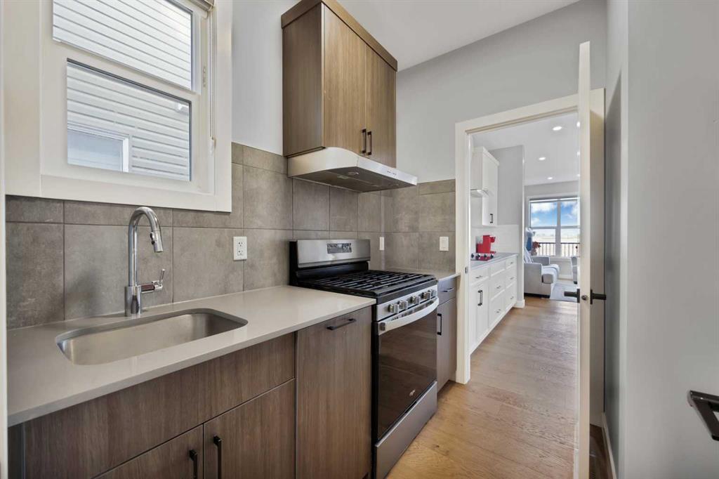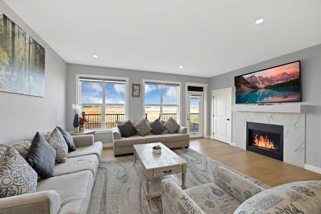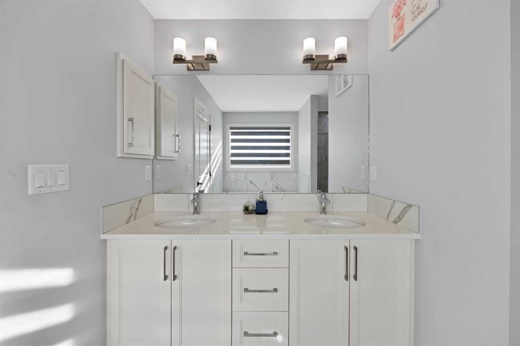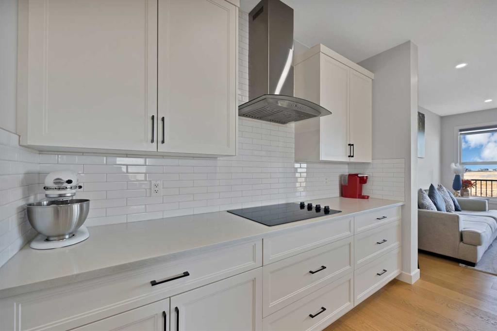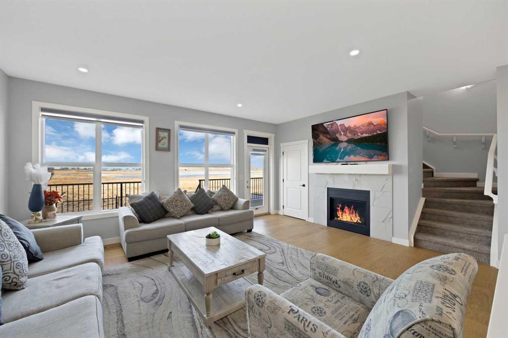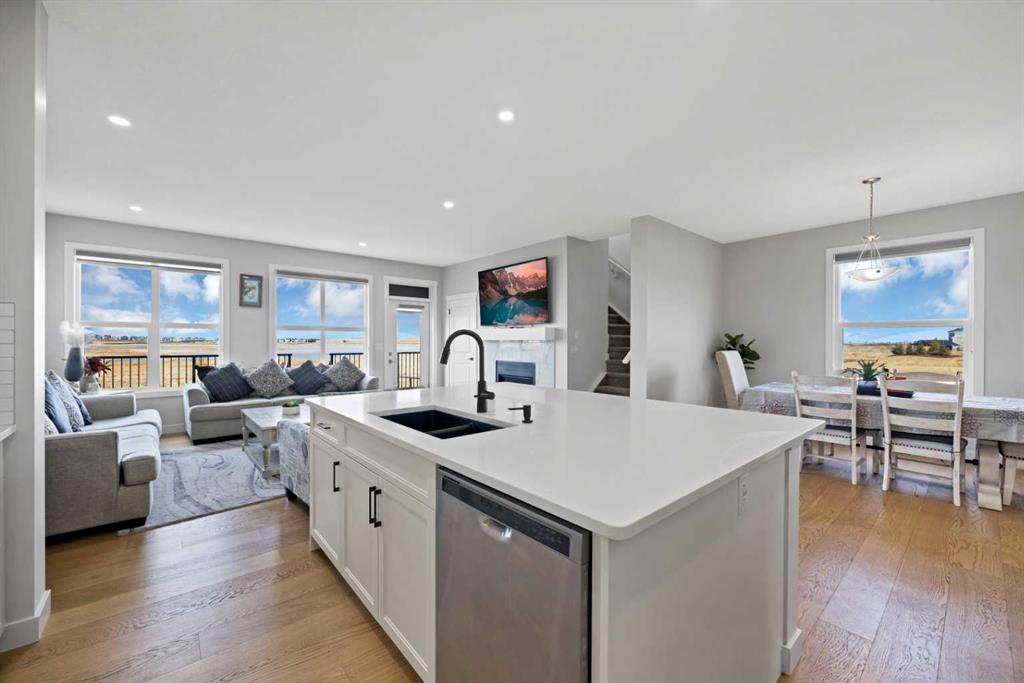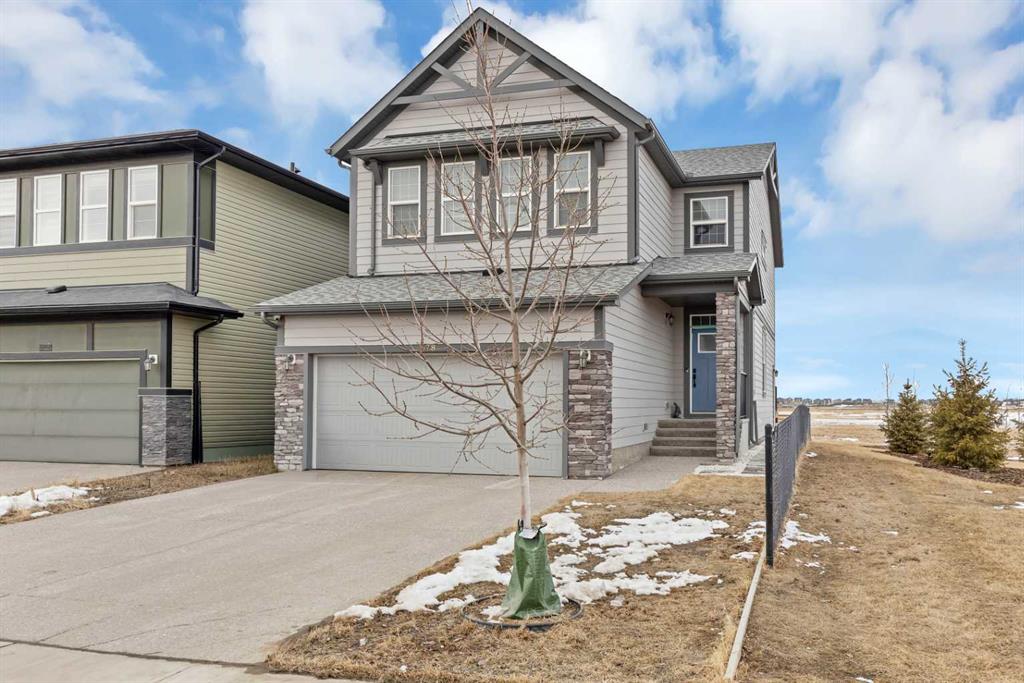 Welcome to this beautifully designed front garage home located in the highly desirable community of Cornerstone, Calgary, perfectly positioned on a premium corner lot backing onto tranquil pond-facing green space with additional green space along the side, offering exceptional privacy, scenic views, and an abundance of natural light throughout the day. This impressive property features a bright and spacious open-concept layout with a huge living area that is ideal for both entertaining guests and comfortable family living. The main floor showcases a modern kitchen complete with stainless steel appliances, granite countertops, ample cabinetry, and a dedicated spice kitchen, providing added functionality and convenience for everyday cooking. Large windows throughout the home create a warm and inviting atmosphere while maximizing the surrounding views. Upstairs, you will find four generously sized bedrooms, offering plenty of space for growing families, including a spacious primary retreat designed for relaxation. The thoughtful layout ensures both comfort and practicality in every corner of the home. Step outside to a full deck overlooking the peaceful green space, perfect for outdoor gatherings, summer barbecues, or simply unwinding in a serene setting. The corner lot location enhances curb appeal while providing additional outdoor space and flexibility. This home is ideally situated close to shopping plazas, parks, schools, and a variety of everyday amenities, making it a perfect choice for families seeking both convenience and lifestyle. With its prime location, functional design, and beautiful surroundings, this property presents a rare opportunity to own a stunning home in one of Calgary’s fastest-growing and most sought-after communities.
