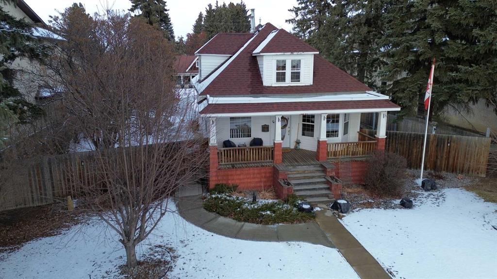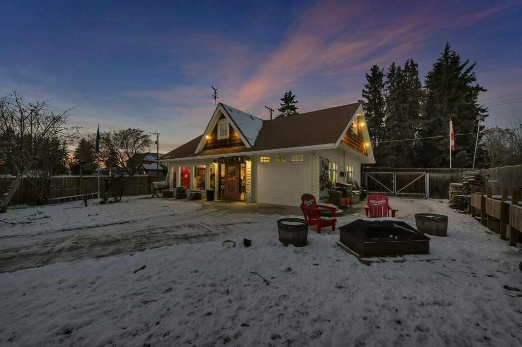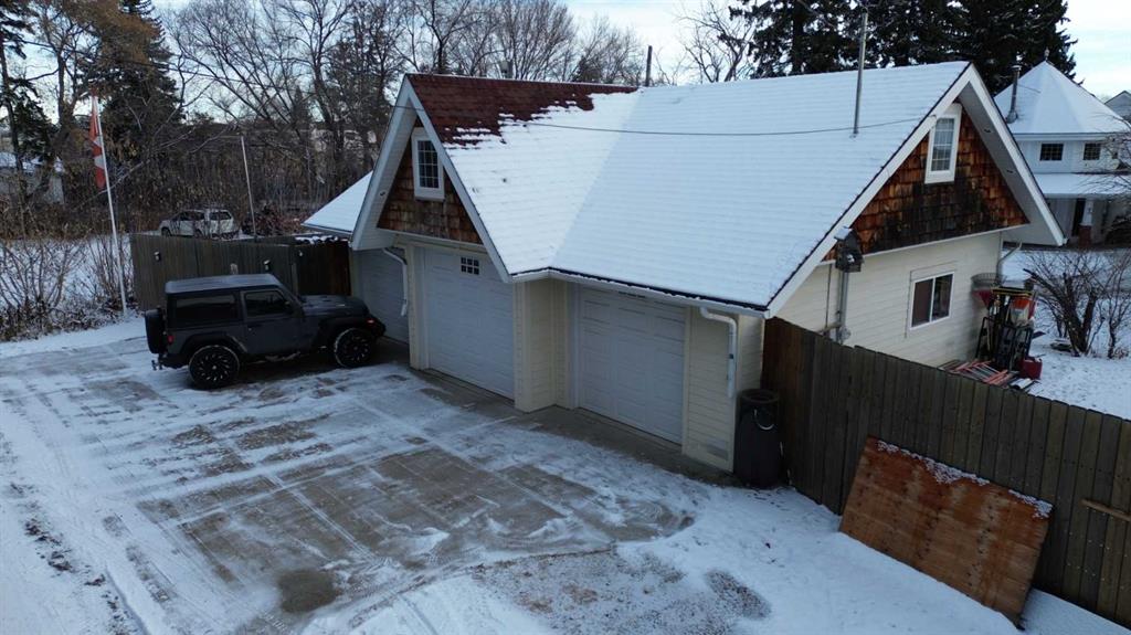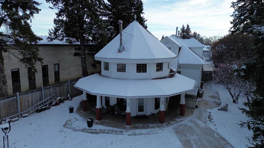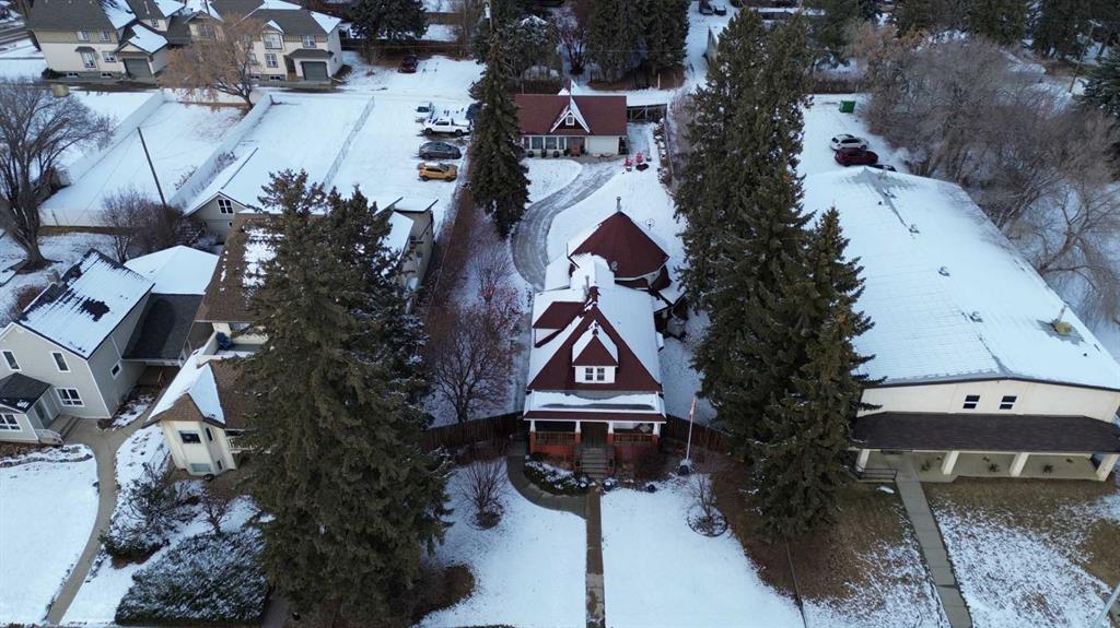Welcome to this beautifully restored century home along the heart of Lacombe! Guaranteed you’ve never laid your eyes upon such a unique and incredible property such as this. The classic features of bold crown molding and sophisticated wainscotting in this turn of the century home have been preserved and yet modern upgrades make this home truly one of a kind. The warm kitchen features a downdraft gas stove and provides an amazing amount of storage with plenty of counterspace. The adjacent dining room opens over to the “turret” section of this home which features a lower den/sitting area with in-floor heat and a built in wet bar. Up above supports a loft area with glass flooring blocks for added ambiance to this multi-media room. The entirety of the original second story of this home has been renovated to host the primary bedroom and living area, complete with a 4 piece bath, integrated dressing table, and workout room. As well, there are two walk-in closet areas with an abundance of storage and “cubbies” and even a laundry chute for your convenience!!! Out back along the ally is another amazing feature of this property. A 3 bay (one is a pass-through) 25x40 garage with in-floor heating run approx 18” outside the walls, lower cellar section, dry sump, water feed from the house, and an upper mezzanine level. It isn’t difficult to imagine what you can make of a place like this! The property itself is a whopping 0.4 acres and allows for two RV or trailer parking spots on either side of the garage and more parking outside the garage doors. Outdoor lighting on both the garage and the house have been upgraded to LEDs and two power points have been run into the yard for future lighting post considerations. A new hot tub has been installed outside along the turret where the in-floor heat has been run approx 18” outside the walls to keep your path clear and warm in the winter months. There are so many amazing details and features here that it simply cannot be entirely detailed in this description.