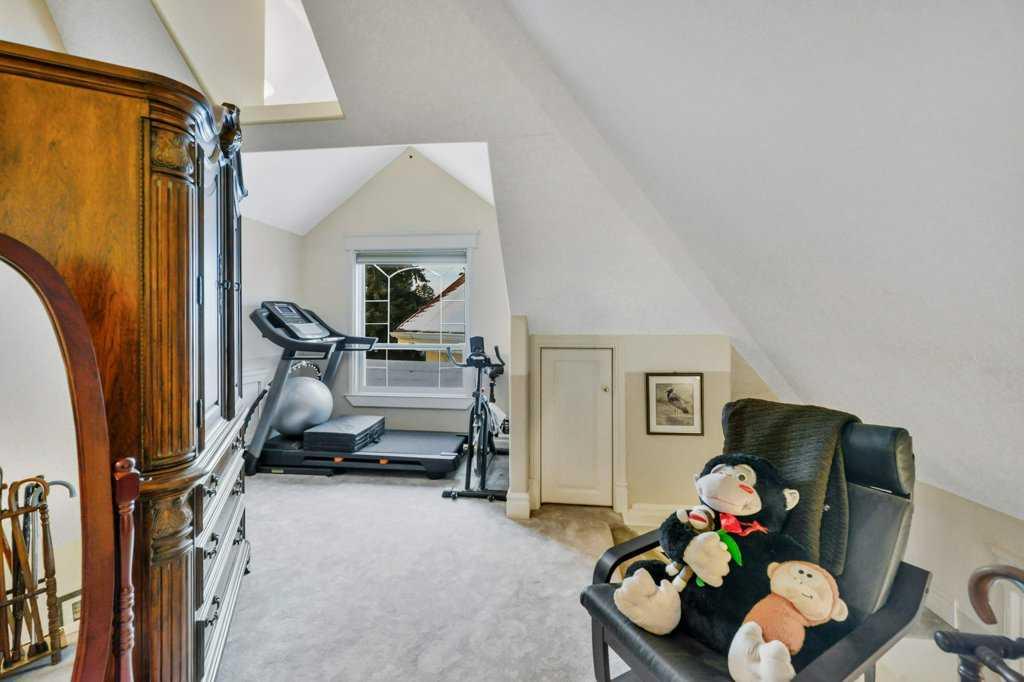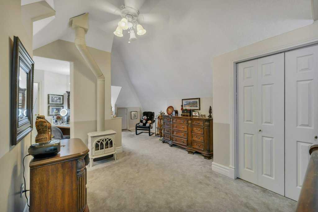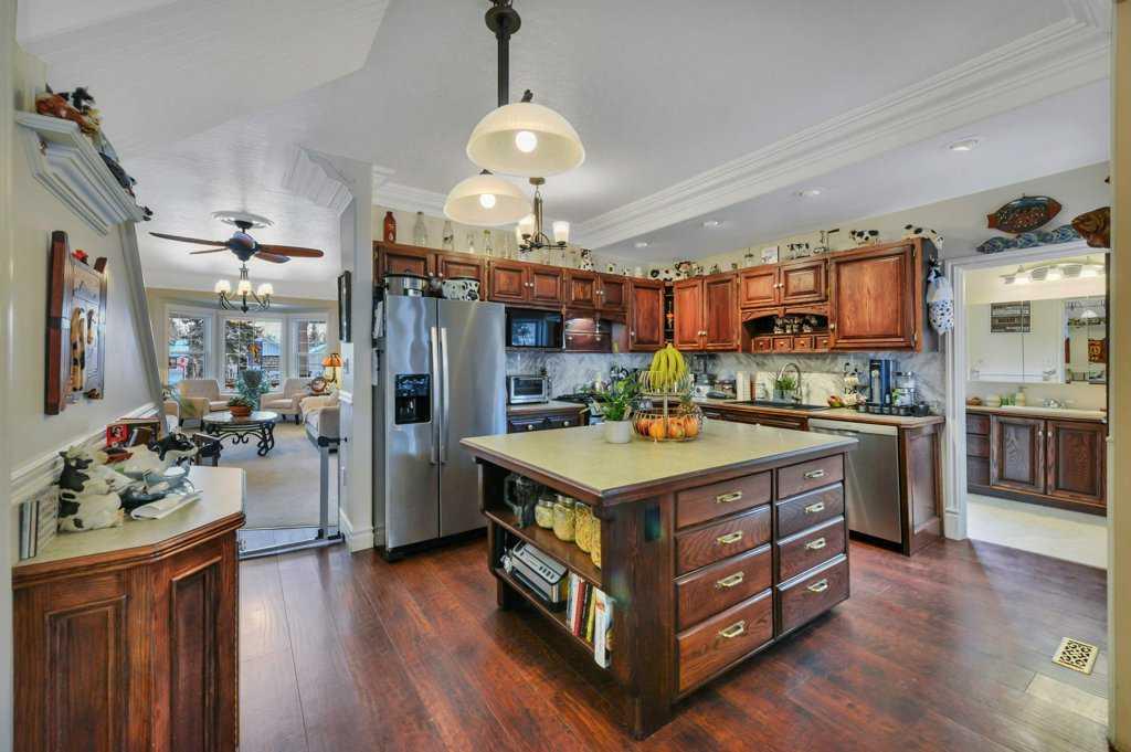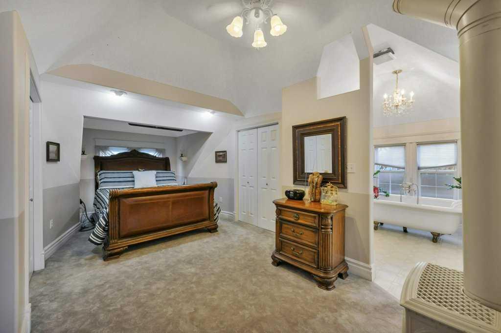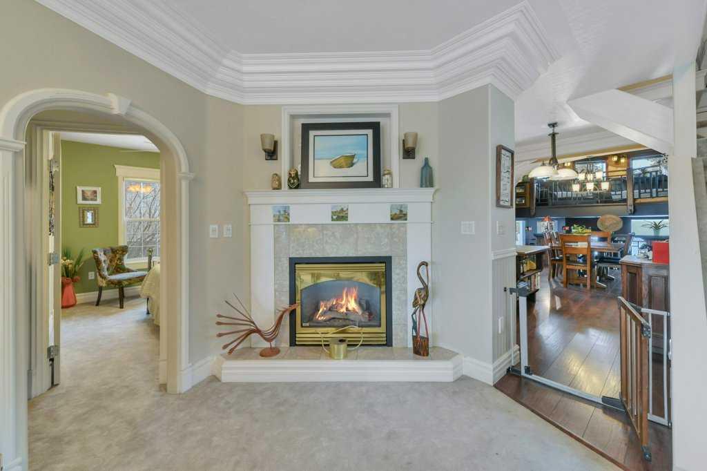 Welcome to this beautifully restored century home along the heart of Lacombe! Guaranteed you’ve never laid your eyes upon such a unique and incredible property such as this. The classic features of bold crown molding and sophisticated wainscotting in this turn of the century home have been preserved and yet modern upgrades make this home truly one of a kind. The warm kitchen features a downdraft gas stove and provides an amazing amount of storage with plenty of counterspace. The adjacent dining room opens over to the “turret” section of this home which features a lower den/sitting area with in-floor heat and a built in wet bar. Up above supports a loft area with glass flooring blocks for added ambiance to this multi-media room. The entirety of the original second story of this home has been renovated to host the primary bedroom and living area, complete with a 4 piece bath, integrated dressing table, and workout room. As well, there are two walk-in closet areas with an abundance of storage and “cubbies” and even a laundry chute for your convenience!!! Out back along the ally is another amazing feature of this property. A 3 bay (one is a pass-through) 25x40 garage with in-floor heating run approx 18” outside the walls, lower cellar section, dry sump, water feed from the house, and an upper mezzanine level. It isn’t difficult to imagine what you can make of a place like this! The property itself is a whopping 0.4 acres and allows for two RV or trailer parking spots on either side of the garage and more parking outside the garage doors. Outdoor lighting on both the garage and the house have been upgraded to LEDs and two power points have been run into the yard for future lighting post considerations. A new hot tub has been installed outside along the turret where the in-floor heat has been run approx 18” outside the walls to keep your path clear and warm in the winter months. There are so many amazing details and features here that it simply cannot be entirely detailed in this description.