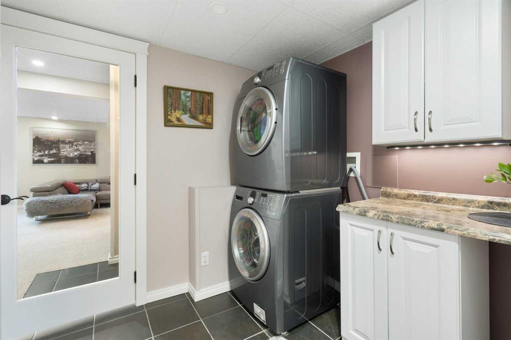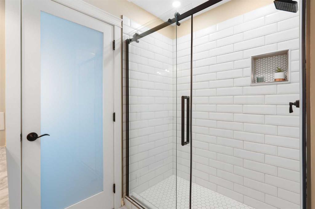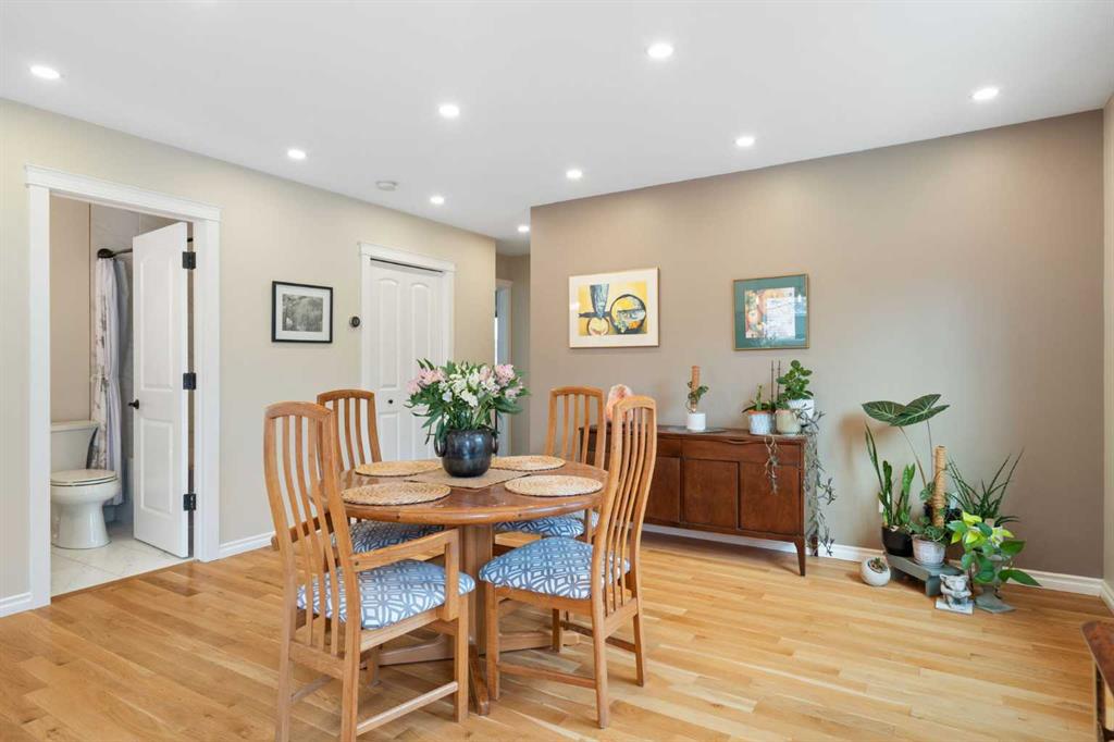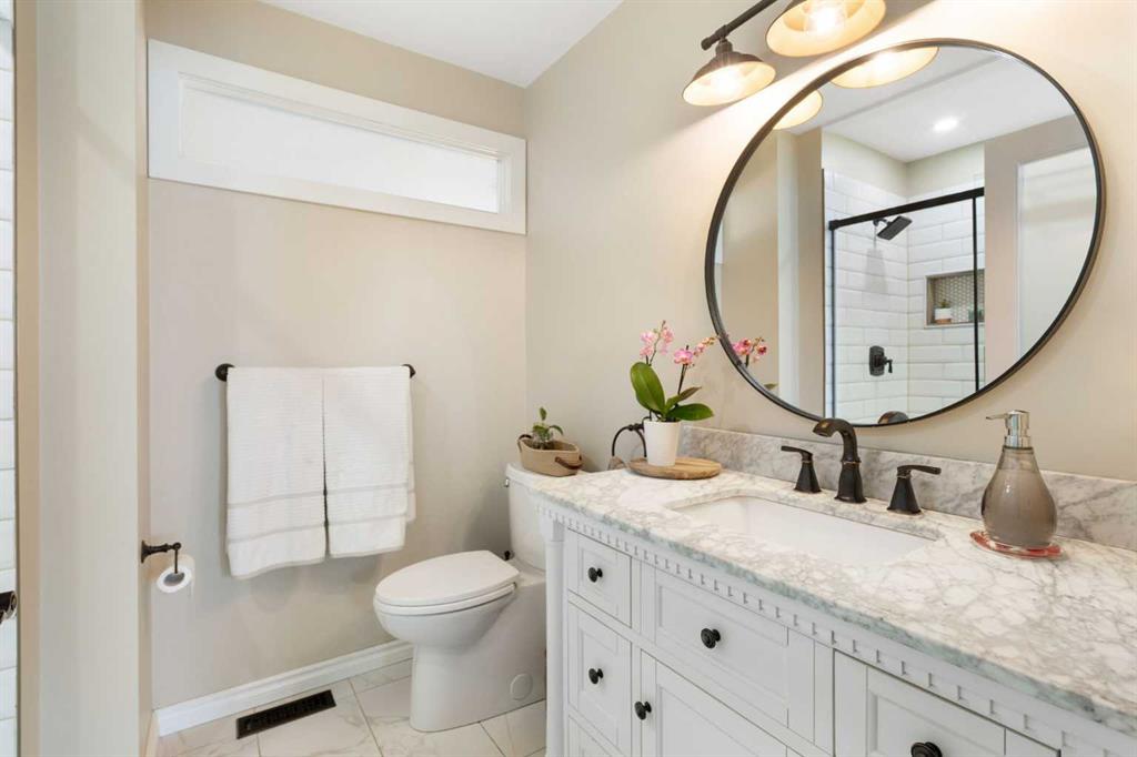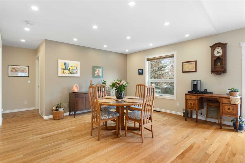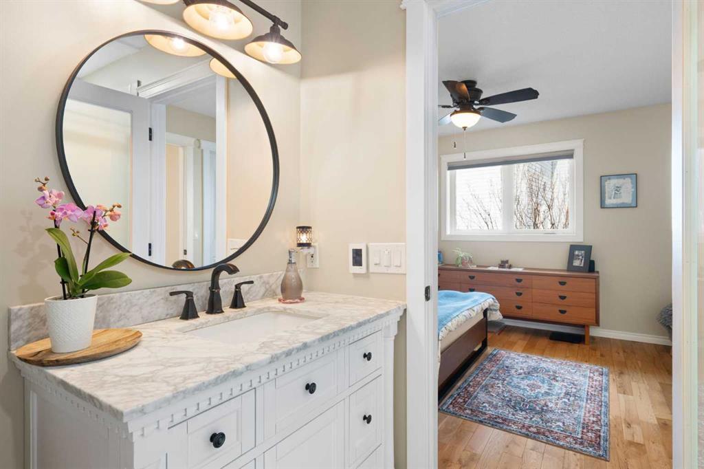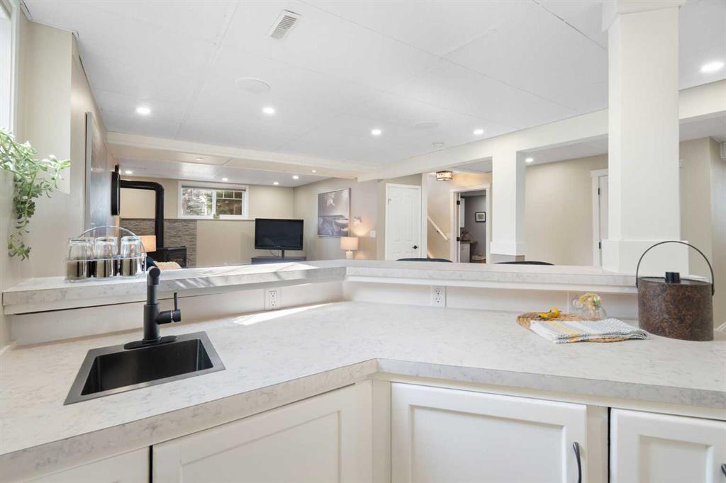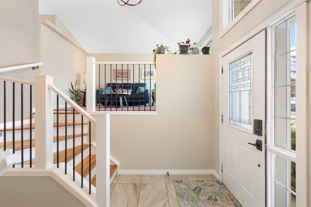 Rare opportunity to own an original-owner, custom-built bi-level by Schickedanz in the prestigious community of Bow Meadows. Tucked away in a quiet cul-de-sac with no through traffic, this meticulously maintained home sits on one of the largest lots in the area (668 SqM). The main floor is a showcase of timeless design, featuring vaulted ceilings and stunning hardwood floors. The gourmet-style kitchen is a masterpiece, boasting quartzite counters, ceiling-height soft-close cabinetry, a farmhouse sink, and a high-end stainless appliance package featuring an induction cooktop and built-in wall oven. A central island with breakfast bar and a built-in beverage cooler make this the ultimate space for entertaining. Retreat to the primary bedroom, complete with a walk-in closet and a 3-piece ensuite with heated floors. The fully developed lower level offers a spacious rec room with a wet bar, a cozy natural gas fireplace, two additional bedrooms, and a 4-piece bath with heated tile floors. Mechanical integrity is a priority here: Poly-B has been replaced with Pex, the hi-efficiency furnace and central A/C are newer (2023), and attic insulation was upgraded to R55. Outside, the massive south-facing backyard is a private oasis with a large deck, private patio and mature trees. Enjoy direct access to walking paths leading to the Bow River, with schools and shopping just minutes away. Complete with an insulated, drywalled, and heated double garage—this home is truly turn-key.