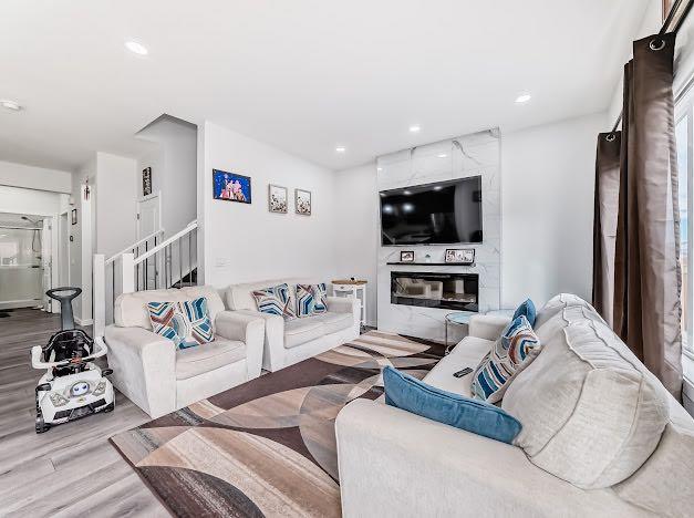 Welcome to this beautifully designed and fully Upgraded home located in the sought-after community of Livingston NW. Situated on a over 4200 sq. ft. lot, this 7 bedroom, 3.5 -bathroom home offers over 2292 sq. ft. of total living space, providing exceptional functionality for large families or multi-generational living. The main floor features an open-concept layout with Main floor bed & full washroom with standing shower & a gourmet kitchen complete with quartz countertops, full-height cabinetry, gas cooktop, built-in wall oven and microwave, chimney hood fan, Ekectric fire place and Featured wall to mount tv , and a spacious buttler pantry and walk in pantry with additional cabinetry and second sink. The spacious living and dining areas lead to a raised deck overlooking the fully landscaped and fenced backyard. A room on the main floor is ideal for a home office, guest bedroom, or playroom. Upstairs offers a large bonus room, convenient upper-floor laundry with built-in shelving, and four generously sized bedrooms. The primary suite includes a walk-in closet and a spa-inspired ensuite featuring double vanities, a soaker tub, and separate standing shower with glass . A spcious bonus room with big window on 2nd floor .A second washroom , shared for other 3 bedrooms . The fully finished basement ( not legal )features 9-foot ceilings, a large recreation area with , 2 big rooms , full bathroom, and separate laundry area—ideal for extended family living. This house also has back alley , which is very hard to find in Front garage house nowadays. Additional highlights include a double attached garage with wrap-around exterior lighting, an extra cement-paved front parking stall, two high-efficiency furnaces, central air conditioning, and close proximity to parks, walking paths, transit, schools, shopping, and major roadways. An excellent opportunity to own a spacious, move-in-ready home having upgrades worth $70 k in a growing NW community. Book your private showing today. One of the seller is licensed real estate agent.
