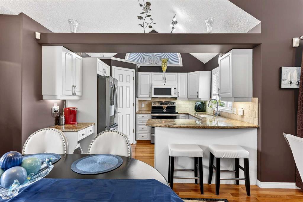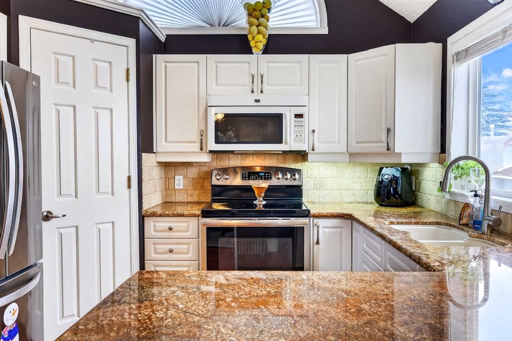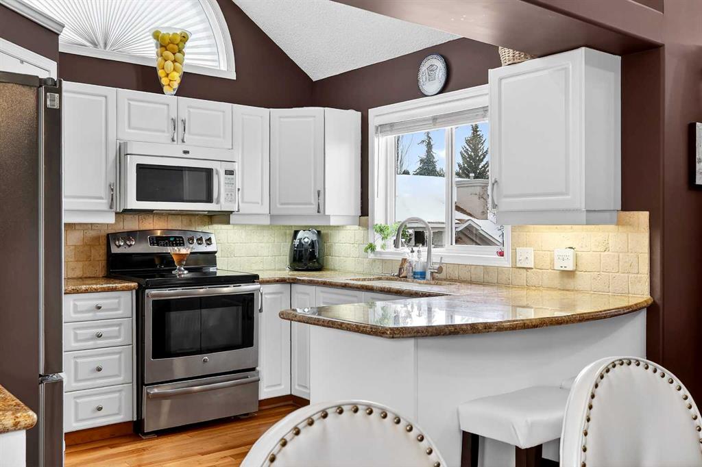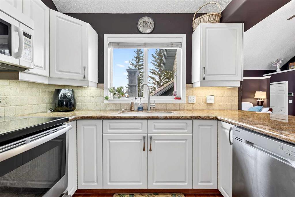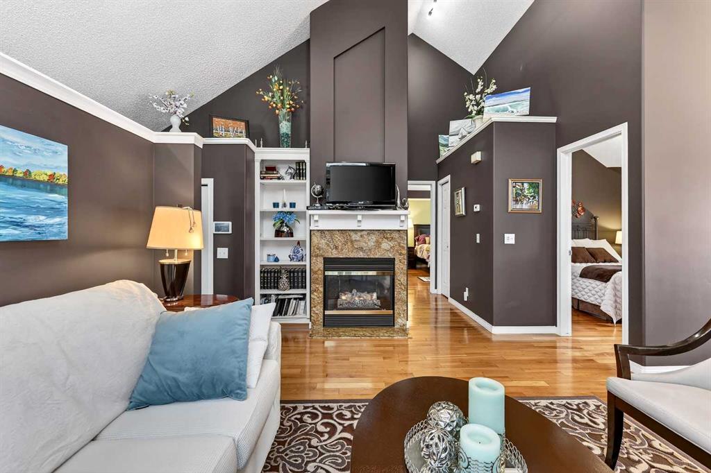 ***A Stunning Must See!*** Fantastic 2 bedroom, 2 bathroom end unit with attached (heated) garage in the highly desirable "Lookout at Christie Park!!" Enjoy unparalleled convenience that is merely a short walk to Sirocco LRT Station, Sunterra Market, shopping, a variety of restaurants, top-rated schools, parks and more. Icing on the cake is that it is a very quick commute to downtown...and an easy escape to the mountains from this coveted location! The unit itself offers over 1000 square feet developed with an amazing layout and soaring vaulted ceilings. A huge benefit is that no-one lives above...or below you! Updated flooring is comprised of cherry hardwood and luxury vinyl plank. Other items of note are granite kitchen countertops, a breakfast bar, clean/white cabinetry, stainless steel appliances and a feature gas fireplace in living room with granite facing. You'll absolutely LOVE the spacious bedrooms! The primary bedroom has a walk-in closet...plus 4 piece private ensuite. The 2nd bedroom has built-in cabinetry and is conveniently located near the main 3 piece bathroom. Dining area also has attractive built-in cabinetry. Main floor laundry too! ALL appliances included. The private west-facing balcony will bring peaceful enjoyment during the warm summer days/evenings. The Lookout is very well maintained with mature trees, visitor parking and near walking pathways. Units of this caliber rarely become available at such an affordable price. Don't miss out on this wonderful home!