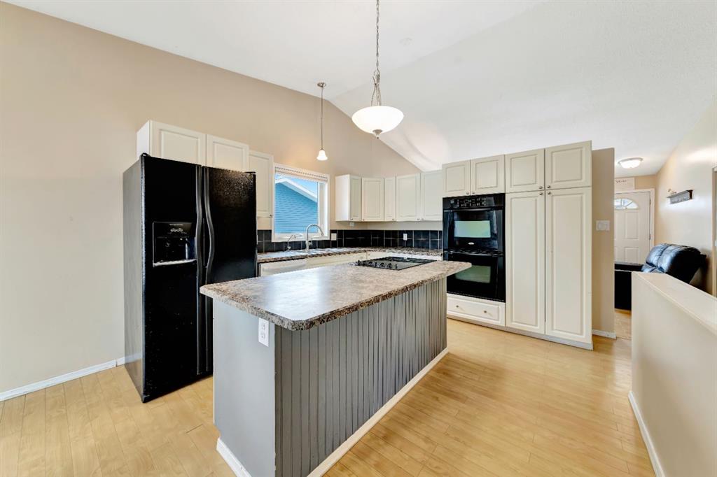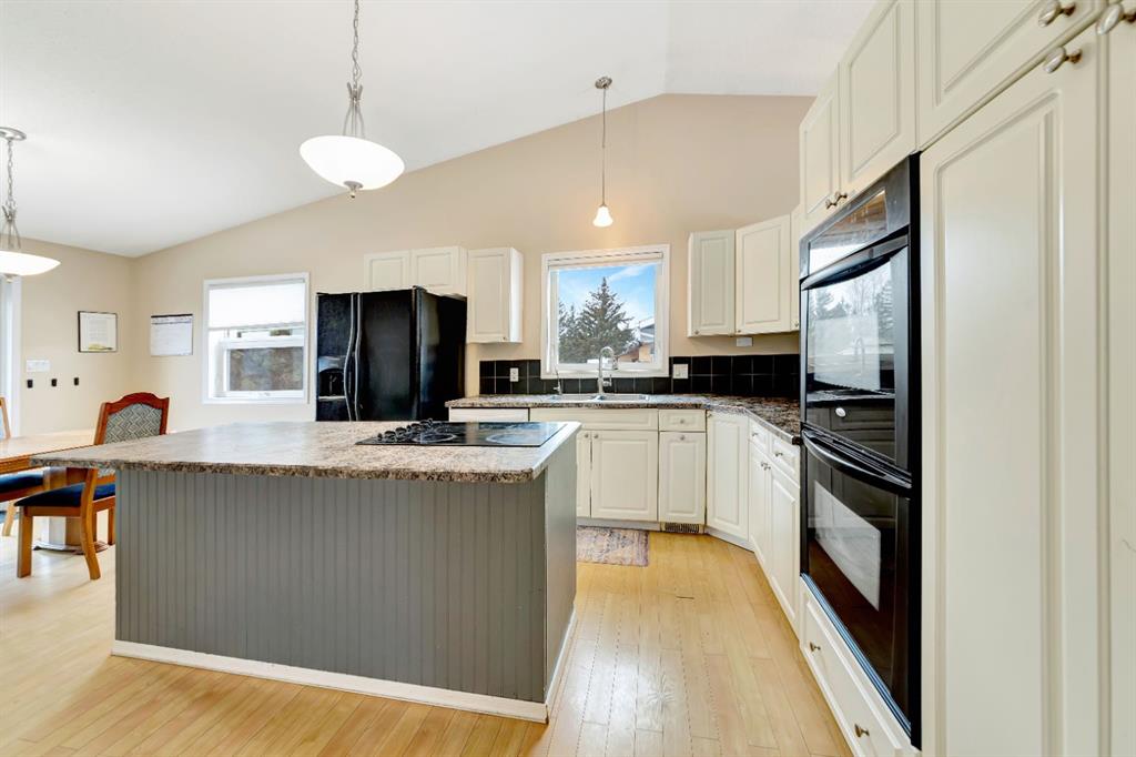 Welcome to this spacious 1,324 sq. ft. bungalow nestled in the peaceful, family-friendly community of Neilburg. Built in 1995, this home offers a bright and functional open-concept layout designed for comfortable everyday living and effortless entertaining. The kitchen is a true highlight, featuring a double wall oven, large island with cooktop, abundant cabinetry and counter space, plus a versatile desk area perfect for a coffee bar or workspace. The main floor also includes convenient laundry, three generously sized bedrooms, and a primary suite complete with a walk-in closet and private 3-piece ensuite. Downstairs, you’ll find an impressive amount of additional living space with two more large bedrooms, a dedicated office, a spacious family room with cozy carpeting, and plenty of storage. Outside, enjoy a beautifully set-up yard with a concrete driveway accented by exposed aggregate, underground sprinklers, raised garden beds, gas BBQ hookup, and a large storage shed with a charming second-storey playhouse. Backing onto private greenspace and located right next to Village Green park and playground, and just two blocks from the K–12 school, this property offers the perfect blend of space, comfort, and small-town convenience.