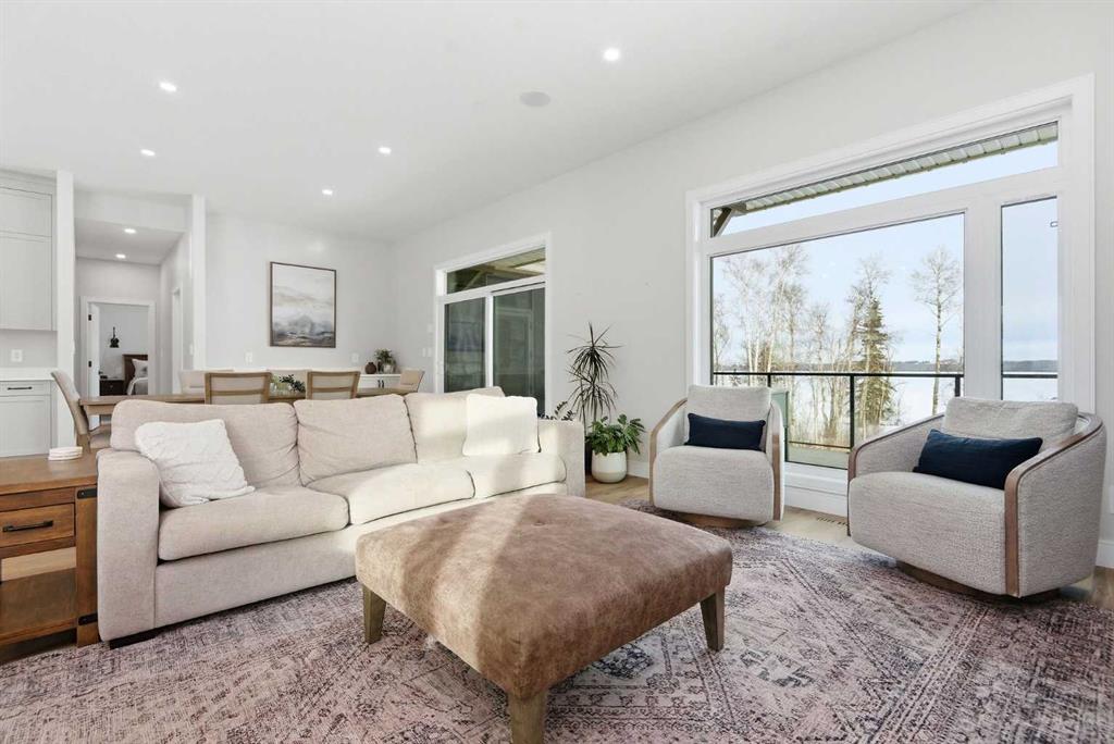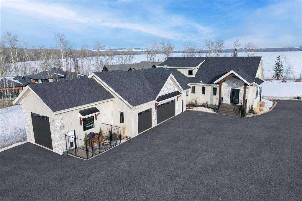 Welcome to this truly exceptional 4,800 sq. ft. custom 1.5-storey walkout, perfectly positioned on a ¾-acre lakefront lot in the exclusive and secluded Eagles Quay subdivision on the northwest end of Sylvan Lake. Built in 2023, this four-season Alberta dream home delivers luxury, privacy, and premier lake living. Enjoy full lake access with a communal dock for boats and personal watercraft—perfect for summer days on the water and unforgettable sunset cruises. Inside, the home offers five spacious bedrooms, four bathrooms, a dedicated office, and a stunning 3-season sunroom with two heaters overlooking the lake, ideal for extending your lake enjoyment well into spring and fall. The open-concept main floor is flooded with natural light and designed for entertaining, while the upper level provides private retreats for family and guests. Convenience is unmatched with laundry on the main floor, second floor, and in the garage. Entertain like no other in the ultimate man cave, featuring a full bar, built-in ventilation for enjoying a smoked old fashioned, and a top-of-the-line Foresight golf simulator that seamlessly converts into a 14’ x 10’ home theatre screen for movie nights and game days. Outside, the property continues to impress with year-round programmable Gemstone lighting, a beautiful firepit and seating area, and full-service RV hookups for visiting family and friends. The newly paved RR 24 leads to a huge paved driveway, offering both convenience and exceptional curb appeal. Car enthusiasts and outdoor adventurers will appreciate the massive three-car garage plus an additional RV/boat bay with a 12’ overhead door, providing space for all your toys. This is more than a home—it’s a lifestyle. Luxury, privacy, and lakefront living, all wrapped into one extraordinary property.