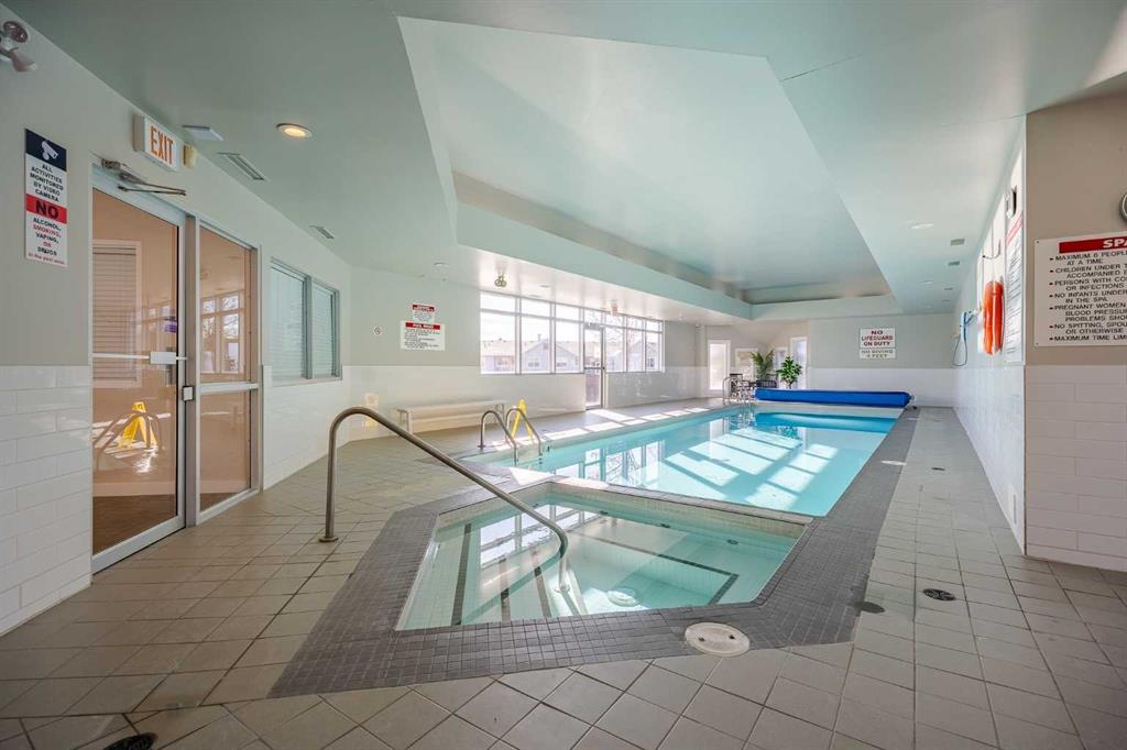 Perched at the top of Edgemont, this TOP FLOOR suite delivers sweeping city and Nose Hill views from the living room and private balcony and comes with its OWN DETACHED GARAGE ! The open-concept layout connects the kitchen, dining-nook and family room with a gas fireplace, creating a bright and airy space for everyday living and entertaining. The primary bedroom features a 3-piece ensuite; a second bedroom and full bathroom provide flexible space for guests or a home office. Large windows capture light and the panoramic outlook toward downtown. Practical perks include one surface parking stall directly in front of the building plus a RARE included single detached garage – a standout in this market (what other condo comes with its own garage?). Residents may also enjoy clubhouse amenities: indoor pool, hot tub , exercise room and full size kitchen for parties, can hold over 50 guests or more. With Edgemont being a highly desirable neighbourhood due to proximity to key amenities such as parks, playgrounds, ravines for dog walks, proximity to Market Mall, public transit options, Co-op, Country Hills Superstore, Edgemont Athletic Club, Nose Hill Park and proximity to plenty of schools, no wonder this community is one of the most highly rated in the city! Quiet, top-floor living with exceptional views and strong community amenities — move-in ready and easy to show. Book your viewing today.