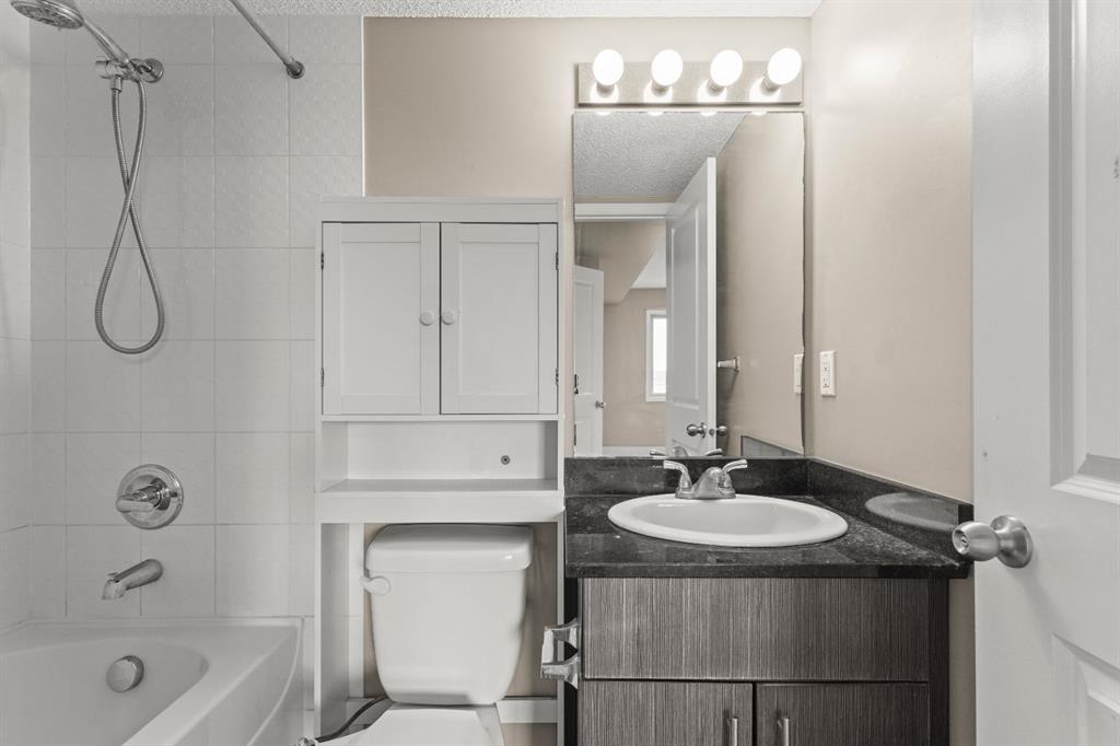 Amazing Investment Opportunity in Saddle Ridge! Welcome to this charming apartment in the Lakeview complex, nestled in the desirable neighborhood of Saddle Ridge. This unit offers an incredible opportunity for first-time buyers or savvy investors looking for cashflow properties. Step inside to discover an inviting open-concept living area, perfect for modern living. The kitchen is a standout, featuring ample cabinet and counter space, granite countertops, and stainless steel appliances. Just off the spacious living room, you'll find a covered balcony, ideal for enjoying your morning coffee or evening relaxation. This unit boasts two generous-sized bedrooms, with the primary bedroom offering its own ensuite for added convenience. In addition to a full bathroom, there's a large laundry room with plenty of extra storage space. Recent updates to the building include newly replaced carpets in the common areas and hallways, enhancing the overall appeal and upkeep of the complex. Conveniently located just a 4-minute drive from Saddletown Station, this home ensures easy access to transit. Plus, with amenities just a couple of minutes away.