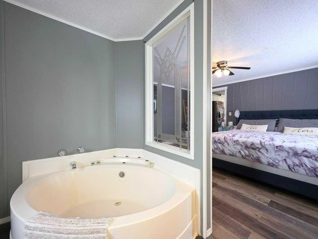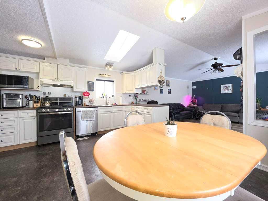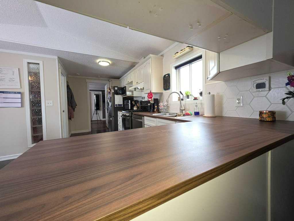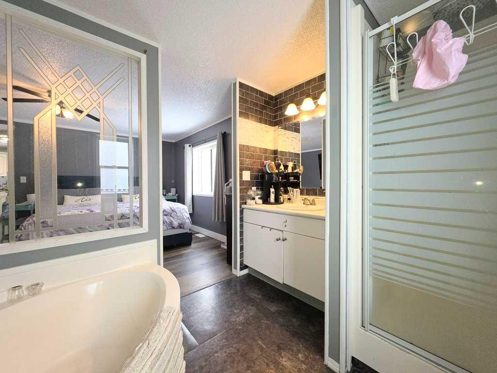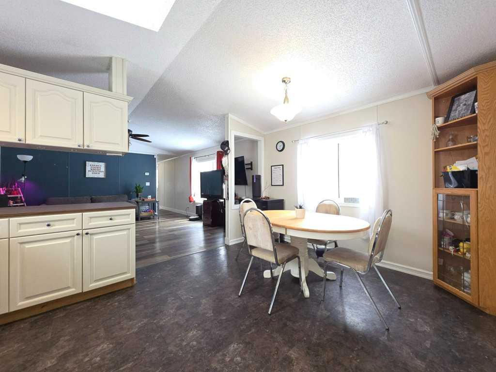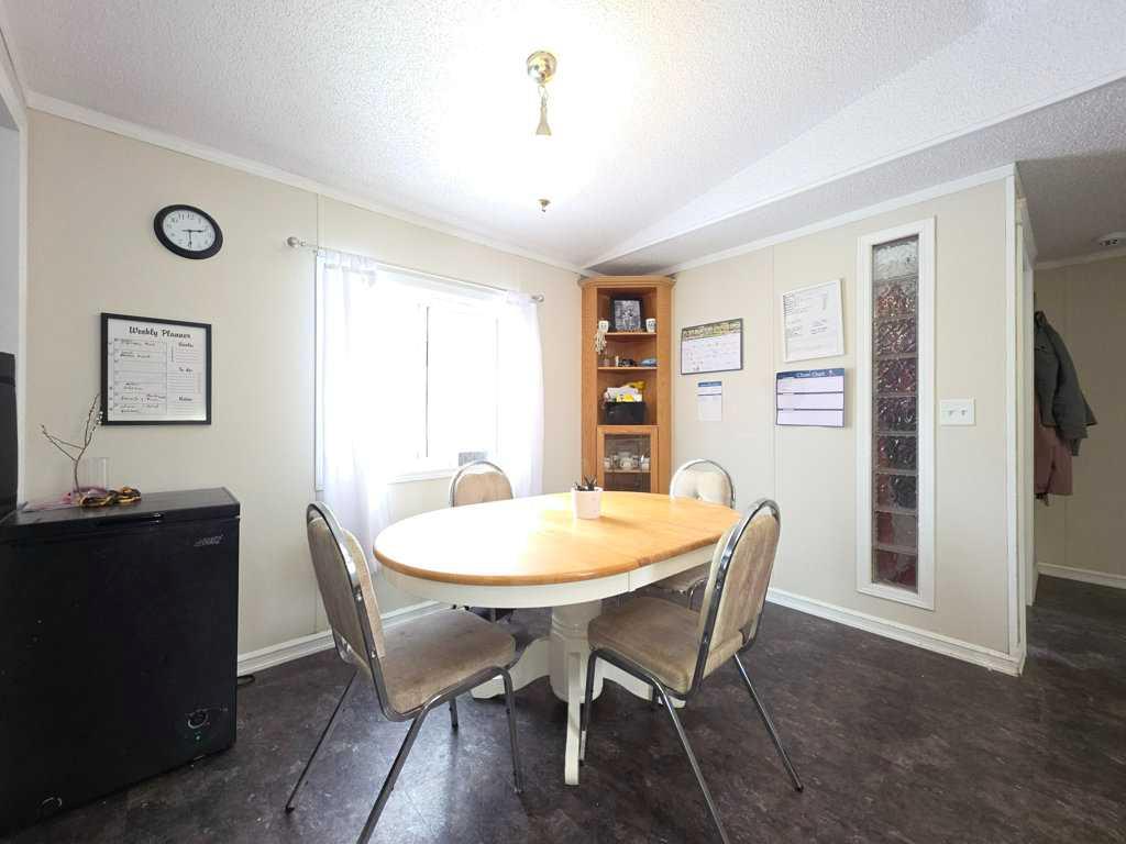 Well-maintained mobile home situated on its own lot, offering excellent value for first-time buyers, downsizers, or investors. This fee-simple property is fully fenced and features a large treated deck—perfect for outdoor living. Inside, the functional open-concept layout includes 3 bedrooms and 2 full 4-piece bathrooms, with a bright living room that flows into an upgraded kitchen and dining area. The kitchen has been refreshed with new countertops, a new backsplash, a newly installed dishwasher, and newer stainless steel appliances, offering plenty of cabinets and generous counter space The primary bedroom is spacious and features a walk-in closet and a large 4-piece ensuite complete with a deep soaker tub. Additional highlights include a dedicated laundry room, freshly painted with sealed trim, and a new washer and dryer (2024), a new toilet and vanity in the main bathroom, and plumbing upgrades scheduled for completion this month. Outside, you’ll appreciate the fully fenced yard, big deck, and a 3-car-wide parking pad. Located close to schools, the MRC, and parks, this home delivers affordability, comfort, and convenience—with no lot fees.