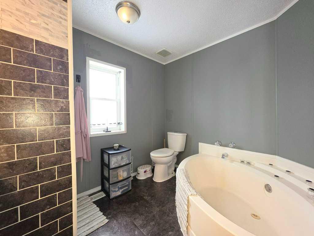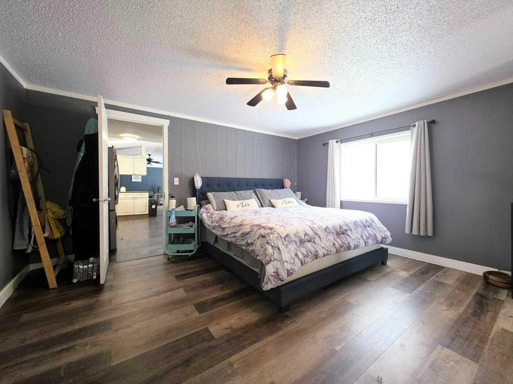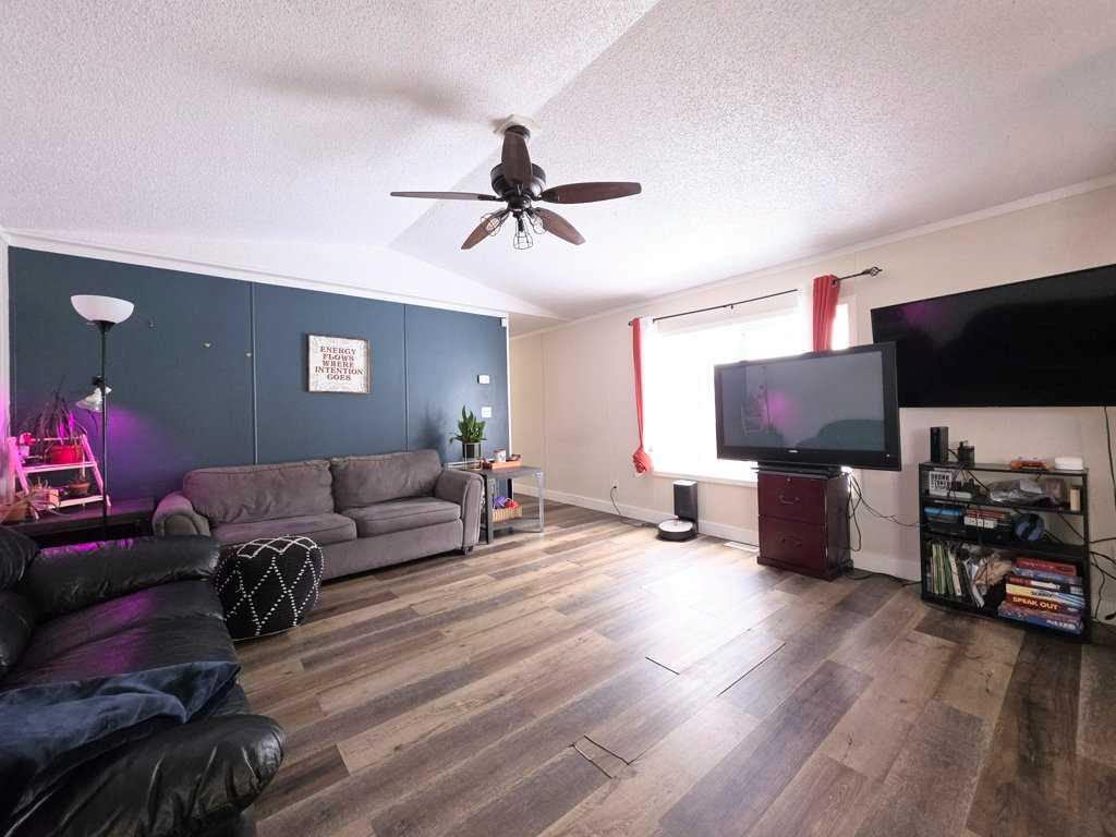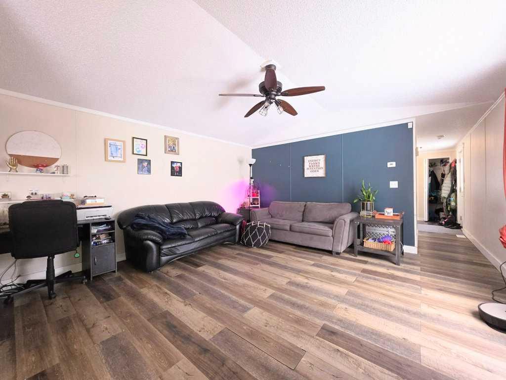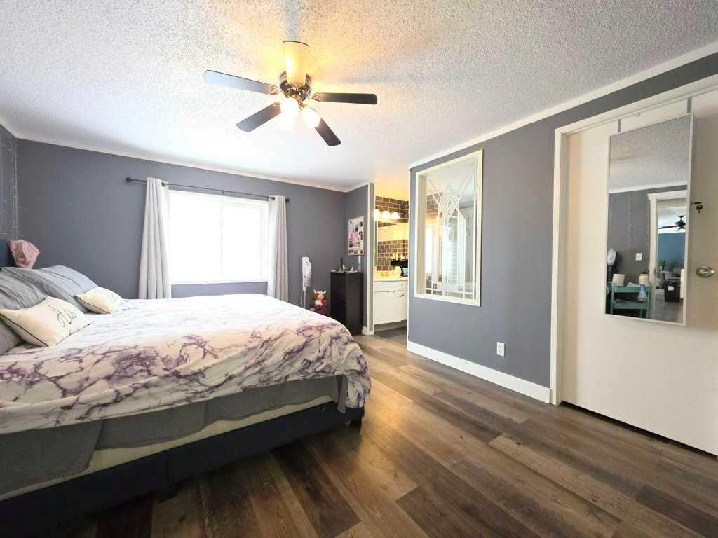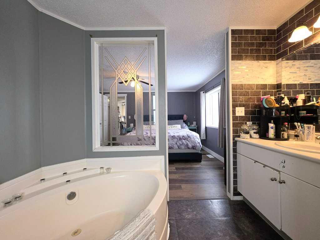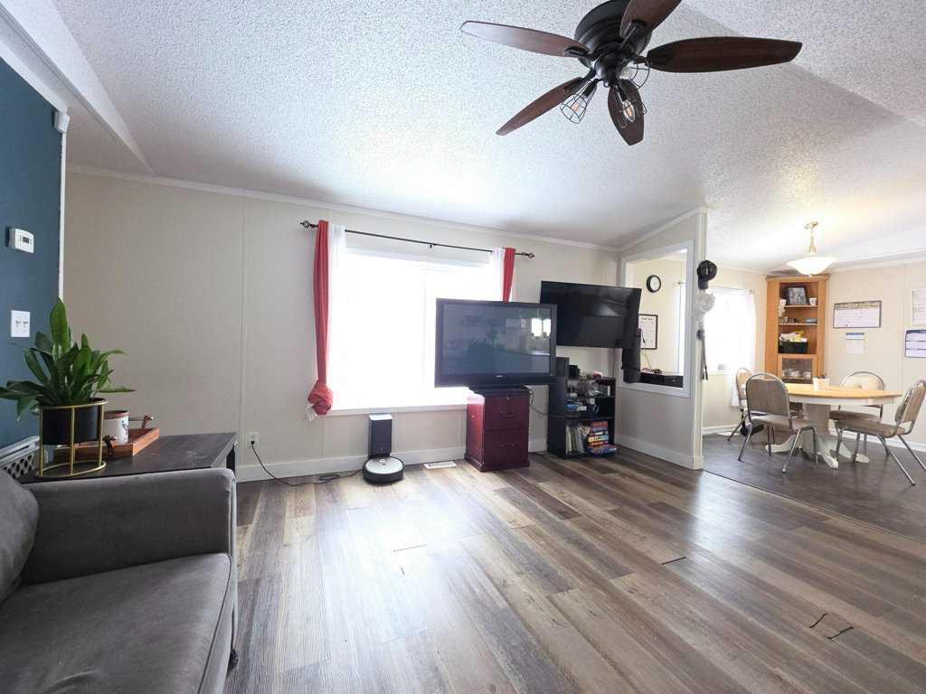 Well-maintained mobile home situated on its own lot, offering excellent value for first-time buyers, downsizers, or investors. This fee-simple property is fully fenced and features a large treated deck—perfect for outdoor living. Inside, the functional open-concept layout includes 3 bedrooms and 2 full 4-piece bathrooms, with a bright living room that flows into an upgraded kitchen and dining area. The kitchen has been refreshed with new countertops, a new backsplash, a newly installed dishwasher, and newer stainless steel appliances, offering plenty of cabinets and generous counter space The primary bedroom is spacious and features a walk-in closet and a large 4-piece ensuite complete with a deep soaker tub. Additional highlights include a dedicated laundry room, freshly painted with sealed trim, and a new washer and dryer (2024), a new toilet and vanity in the main bathroom, and plumbing upgrades scheduled for completion this month. Outside, you’ll appreciate the fully fenced yard, big deck, and a 3-car-wide parking pad. Located close to schools, the MRC, and parks, this home delivers affordability, comfort, and convenience—with no lot fees.