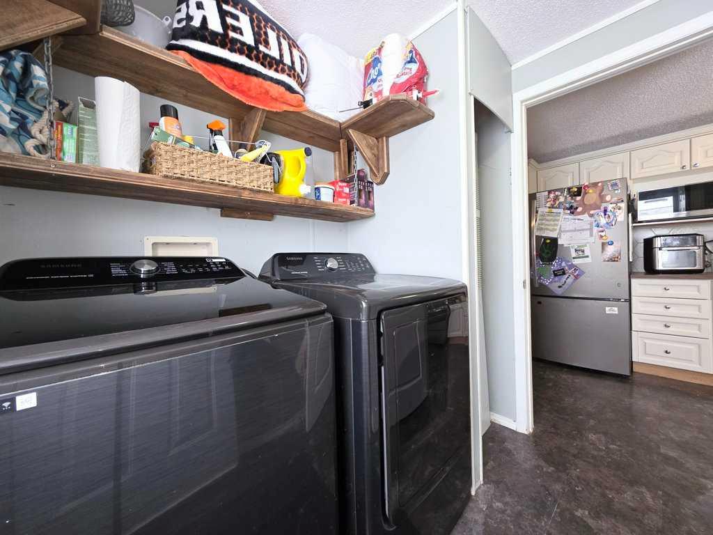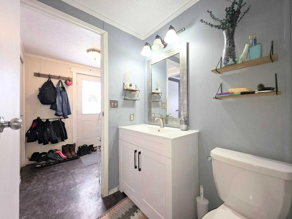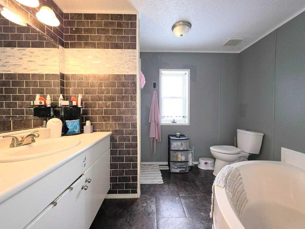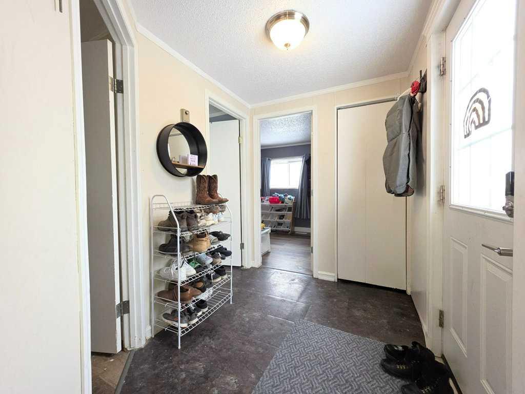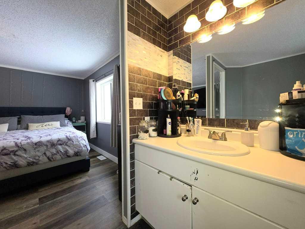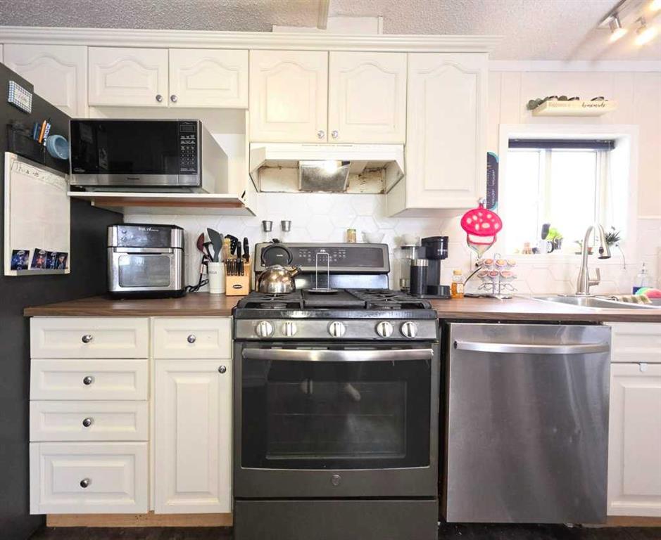 Well-maintained mobile home situated on its own lot, offering excellent value for first-time buyers, downsizers, or investors. This fee-simple property is fully fenced and features a large treated deck—perfect for outdoor living. Inside, the functional open-concept layout includes 3 bedrooms and 2 full 4-piece bathrooms, with a bright living room that flows into an upgraded kitchen and dining area. The kitchen has been refreshed with new countertops, a new backsplash, a newly installed dishwasher, and newer stainless steel appliances, offering plenty of cabinets and generous counter space The primary bedroom is spacious and features a walk-in closet and a large 4-piece ensuite complete with a deep soaker tub. Additional highlights include a dedicated laundry room, freshly painted with sealed trim, and a new washer and dryer (2024), a new toilet and vanity in the main bathroom, and plumbing upgrades scheduled for completion this month. Outside, you’ll appreciate the fully fenced yard, big deck, and a 3-car-wide parking pad. Located close to schools, the MRC, and parks, this home delivers affordability, comfort, and convenience—with no lot fees.