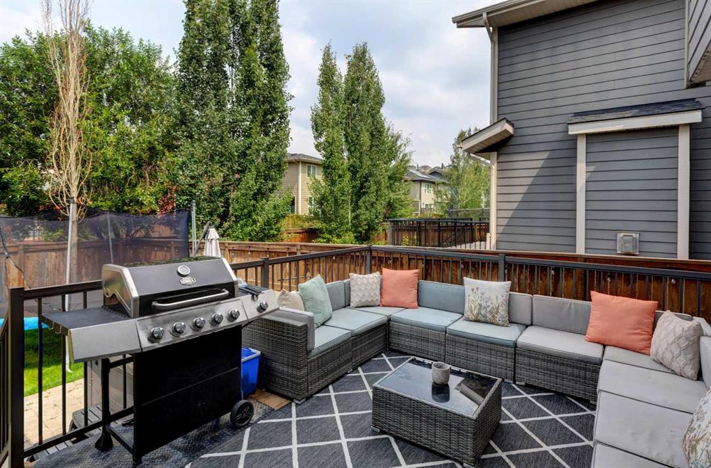 Welcome to an exceptional home in the heart of Riverstone Cranston, where modern sophistication meets everyday comfort. This 4 bedroom, 3.5 bath residence offers nearly 3,600 square feet of developed living space and a seamless balance of elegance and practicality in one of Calgary’s most exclusive communities. Designed to impress, every space reflects meticulous attention to detail and a layout meant for both entertaining and relaxed family living. As you enter, you’re drawn into a grand, light-filled interior defined by high ceilings and refined finishes. The kitchen is a true centerpiece crafted for the inspired cook, with striking quartz surfaces, full-height cabinetry, and a sprawling island. A built-in oven, microwave, gas cooktop, and designer hood vent add both beauty and function, while the adjoining walk through pantry connects directly to a well-appointed mudroom, keeping your day-to-day perfectly organized. The main floor also features a quiet office for those who work from home and a welcoming living room anchored by a sleek gas fireplace. Whether hosting friends or winding down at night, this space effortlessly adapts to any mood or occasion. Upstairs, in the primary suite, enjoy a spa-inspired ensuite with dual vanities, a deep soaking tub, and a rejuvenating steam shower. The custom walk-in closet provides carefully designed built in storage. Two additional bedrooms, a roomy bonus area, upper-level laundry, and a beautifully finished four-piece bath offer plenty of flexibility for family or guests. The fully developed lower level expands your living space even further. A generous recreation zone and family lounge provide room for games, movies, and gatherings, while a fourth bedroom, full bathroom, and abundant storage make it ideal for overnight visitors or growing families. Step outside to your private oasis, a landscaped backyard with a spacious deck, gas hook up and an inviting hot tub, perfectly suited for summer evenings or crisp winter nights under the stars. Central air conditioning, built-in speakers throughout the home, a fully insulated garage, and updates to the carpet and paint completed in 2022 add comfort and peace of mind. Situated in one of Calgary’s most desirable neighborhoods, Riverstone offers immediate access to the Bow River, endless pathways, and an atmosphere of quiet prestige. With its natural beauty and close proximity to amenities, this home captures the best of refined suburban living. Opportunities like this rarely come along, discover what makes life in Riverstone so extraordinary.