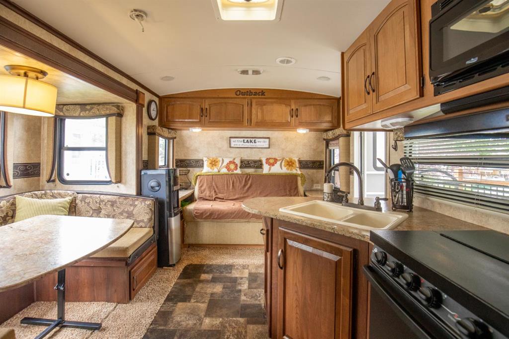 PHASE 3, LOT 5 GLENIFFER LAKE GOLF AND COUNTRY CLUB: Great location, nicely landscaped interior lot, backing west onto a large green space. Come enjoy lake living! Many amentities for everyone in the family to enjoy. This property Includes: Renovated Bunk House (Powered) w/Queen Bed, (mattress included) mini fridge, dresser, porta potty and a/c unit. Storage Shed, 2 deck boxes, 2 lounge chairs, BBQ & BBQ table, lawn mower, fire pit, propane fire pit, 2 gazebos, with roller shades and curtain panels, Patio lights on gazebos, 2 rugs on the deck. Firepit in the backyard with lots of room for gatherings, Large 11"6 X 28 deck skirted with vinyl and solar outdoor lighting around the outside of the deck and - 2013 Keystone Outback Travel Trailer with 2 slides – 1 in the bedroom and the other is the dinette slide in the living area space, the bedroom has an new RV Queen mattress, large closet, dresser and storage about bed with door access to the deck, as well as direct access to the bathroom. There is plenty of room in the living area with a U-shpaed dinette and a sofa, (both make down into beds) & plenty of cupboard space. Also included are all kitchen contents (except for coffee maker, and the water bottle holder) as well as the original TV that came with the trailer. Tons of Storage Space inside and outside the trailer. Trailer is fully blocked underneath for extra support. All access key and fobs to lot included. This lot has been well enjoyed and cared for.