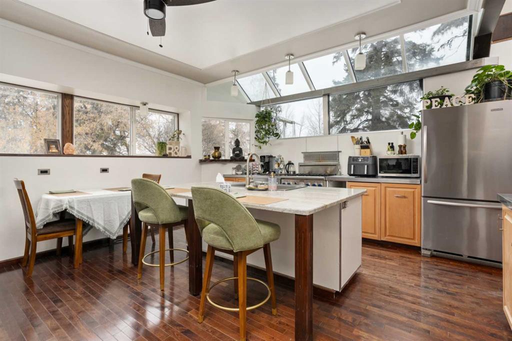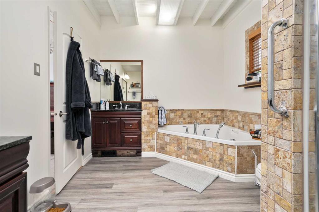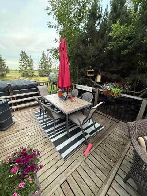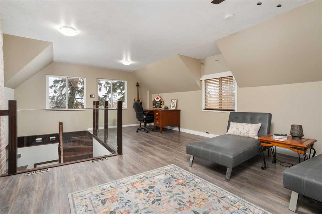 Discover an exceptional blend of convenience and tranquility with this stunning 3.36-acre property, just minutes from the heart of the city. Recently updated and freshly painted throughout, this charming farmhouse boasts chic modern touches and mature landscaping that create an idyllic setting. As you pull into the drive-through lane, the inviting front porch welcomes you to a bright and airy living space filled with natural light. The chef’s kitchen shines with an abundance of windows, featuring a granite countertop island perfect for hosting gatherings, an oversized sink, an industrial Thermador gas stove, sleek stainless steel appliances, and countertops ideal for food preparation. Plus, enjoy your built-in coffee bar, tailored for caffeine lovers! Retreat to the spacious master bedroom with its generous en suite that includes his and her sinks, along with an oversized jetted tub for ultimate relaxation. Convenient main floor laundry is cleverly tucked away in the walk-in closet. The loft area offers even more potential with large windows, an ideal space for a home office, an additional bedroom, and its own 4-piece bathroom. The main floor also features a convenient 2-piece powder room near the entrance. This exceptional property is enhanced by an updated water system and brand-new lighting throughout, ensuring comfort and style. Enjoy the park-like yard, sheltered by tall spruce trees and featuring a small in-ground fish pond (currently not in use). For the outdoor enthusiast, a heated four-car garage/workshop (30x40) provides ample space for projects or hobbies, while the well-constructed and insulated greenhouse, complete with sliding vinyl windows, allows for an early start on growing herbs, flowers, and vegetables. Additionally, an extra-large, chicken coop in the backyard offers the potential to embrace sustainable living. With its serene atmosphere and modern amenities, this property is a rare find so close to Camrose. Don’t miss your chance to make this updated and sheltered gem your own!