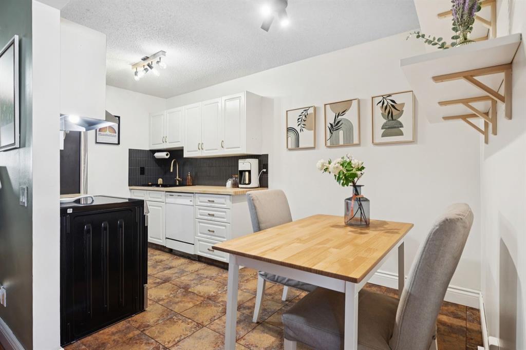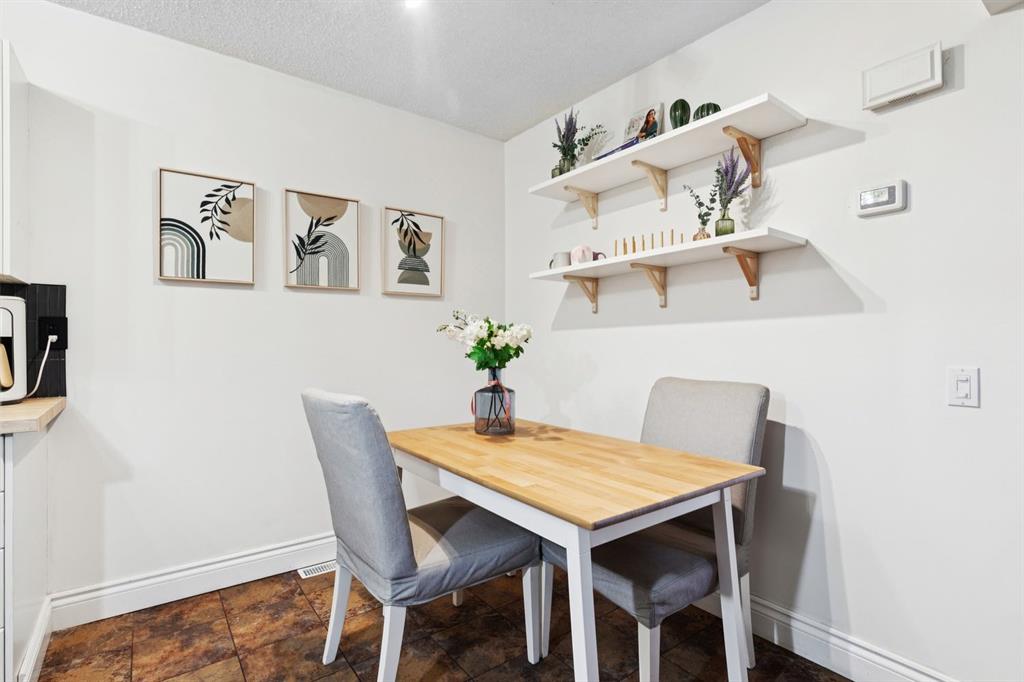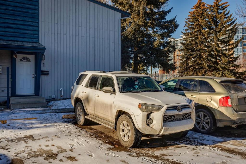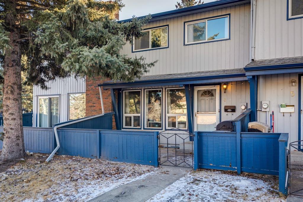 PRIME INVESTMENT IN VARSITY!!! Welcome to Varsity Estates Village, this is one of Calgary’s most sought after and exceptionally well-managed townhome communities, known for its pride of ownership, strong management, and unbeatable long term value. This is your opportunity to own in a prime Varsity location, offering the perfect balance of safety, convenience, and lifestyle. Just minutes to the University of Calgary, major hospitals, downtown, parks, walking paths, and golf courses, this location is ideal for first time buyers, professionals, or savvy investors looking for a solid property in a high demand area. This beautifully updated, move-in ready two storey townhome immediately impresses. A welcoming foyer opens into a bright, spacious living room featuring a stunning corner stone-faced wood burning fireplace, the perfect centre piece for cozy winter nights or to set a nostalgic ambiance. The kitchen has been thoughtfully renovated with both style and function in mind, showcasing stainless steel appliances, crisp white cabinetry, warm wood countertops, a deep granite sink, and elegant gold hardware. The adjacent dining area offers ample space to entertain or enjoy everyday living. Durable laminate flooring flows throughout the main level, complemented by a fully renovated two-piece powder room for added convenience. Step outside to your private, fully fenced front patio which is an ideal space for morning coffee, summer BBQs, or unwinding in the evening sun with friends. Upstairs, you’ll find a beautifully refreshed 4-piece bathroom featuring a deep soaker tub, updated vanity, and excellent storage. The primary bedroom is bright and inviting with large windows and a full-size closet, while the second bedroom is generously sized making it perfect for guests, a roommate, or to be used as a home office. The fully developed basement adds incredible versatility with a cozy family room and a flexible space currently used as a gym. This area is easily adaptable for a home office, studio, or hobby area. The laundry and utility room also provide additional storage. Extensive updates include newer vinyl flooring, appliances, renovated kitchen and bathrooms, and a fresh paint throughout which offers you a true move in ready with a peace of mind. A dedicated parking stall is conveniently located just steps from the unit. The professionally managed complex features reasonable condo fees and a strong reputation, making this an excellent investment opportunity or place to call home. With its stylish updates, private outdoor space (ideal for pets), unbeatable location, and exceptional value, this is one of the best opportunities currently available in Varsity. Book your showing today, this one stands out!