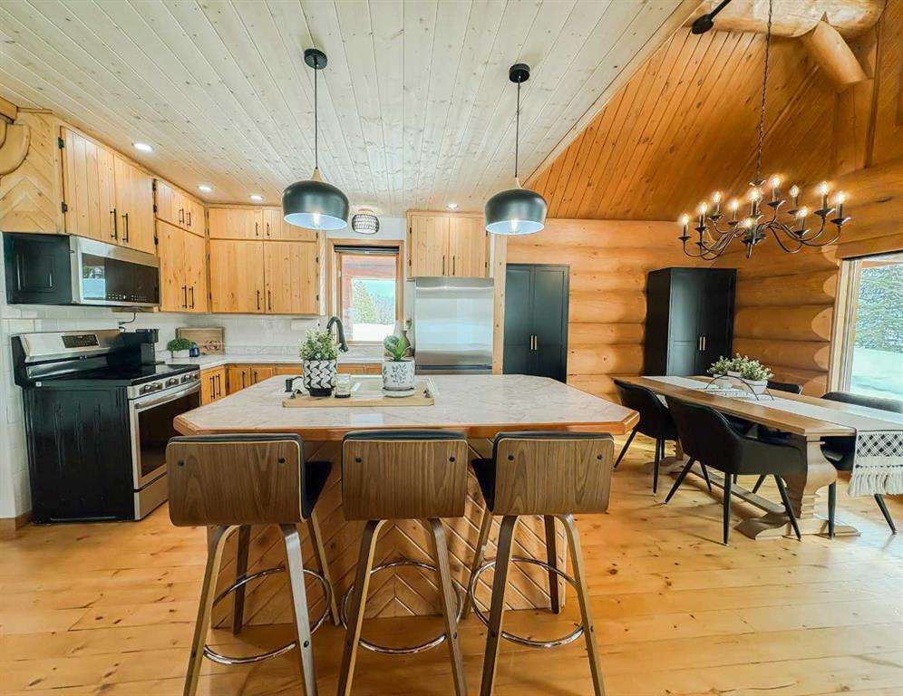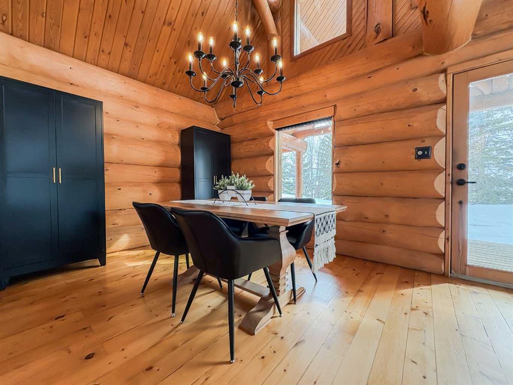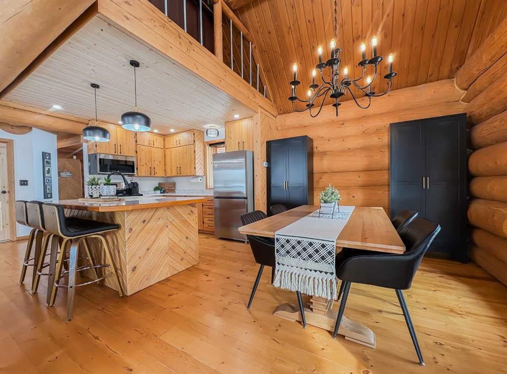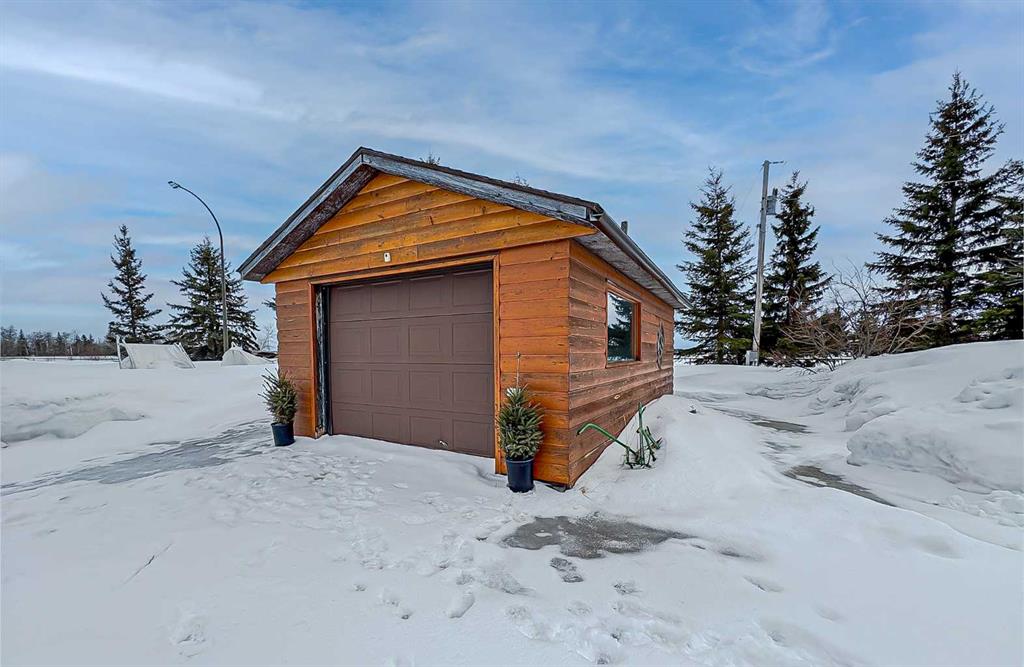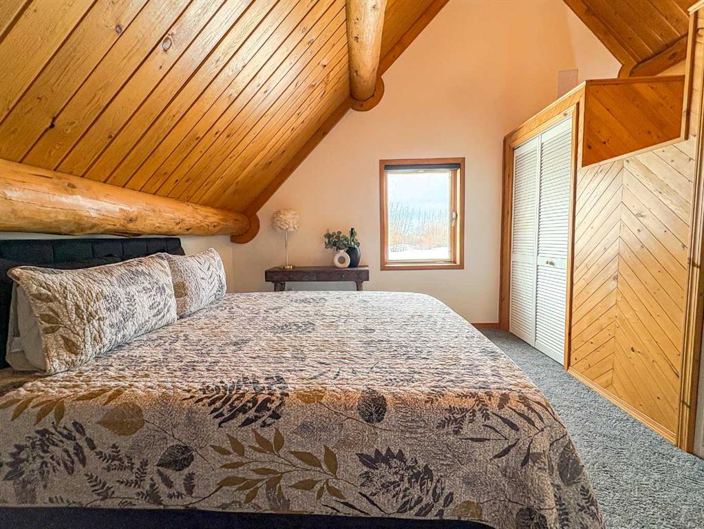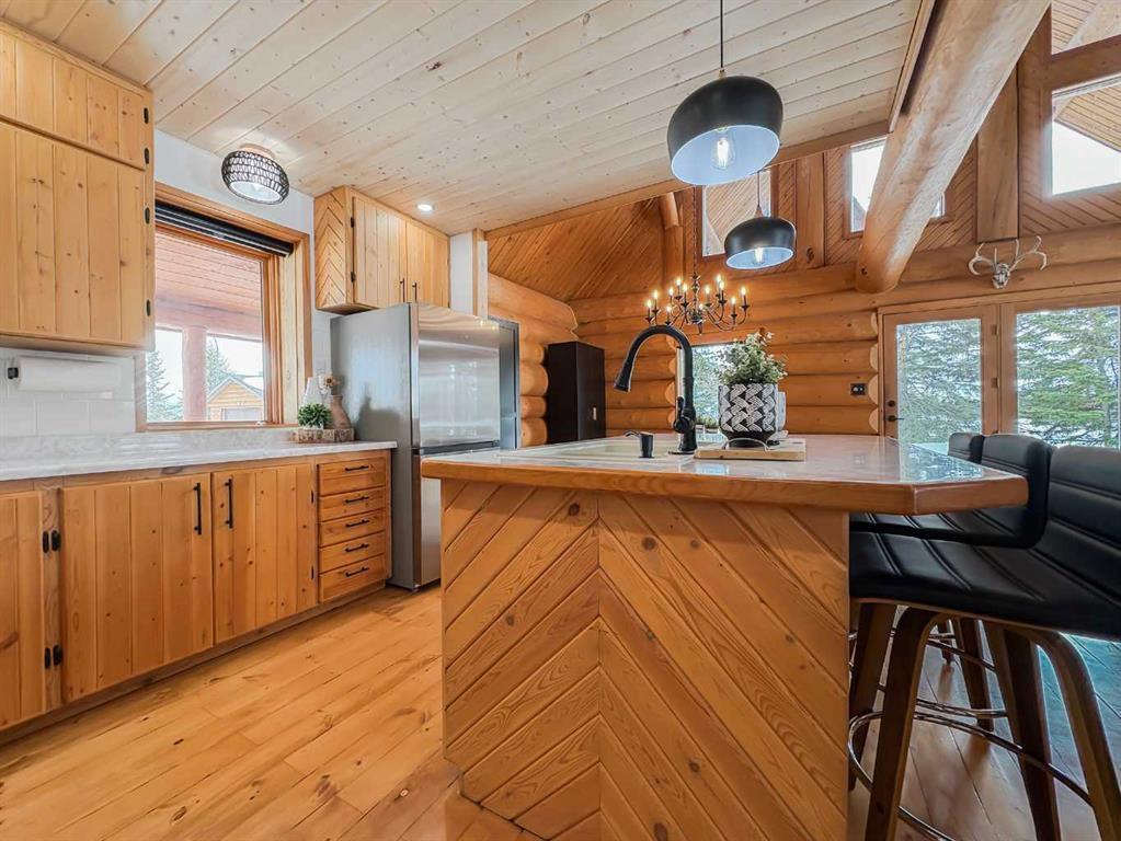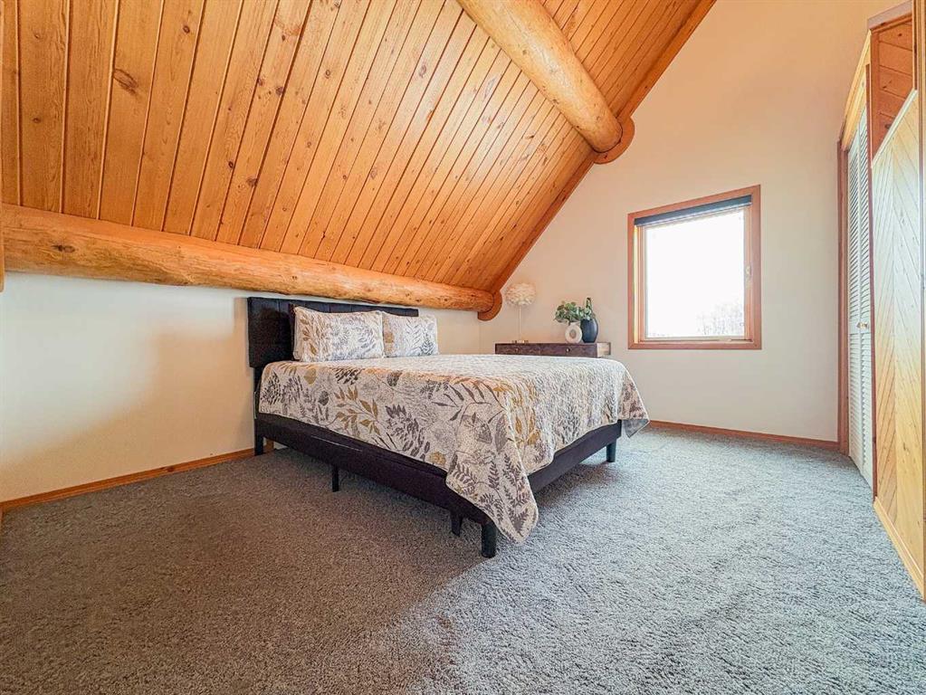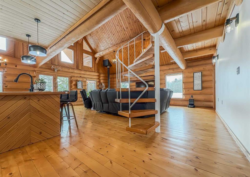 Set on 17.27 acres just over 100 km from Grande Prairie, this one-of-a-kind log home offers the perfect balance of peaceful country living and practical functionality, ideal for those looking to live, work, and unwind all in one place. Step inside and you’re immediately welcomed by soaring vaulted ceilings, exposed log beams, and a stunning open-to-below design that fills the home with natural light. The main living space is warm yet airy, anchored by large windows that frame the surrounding landscape. The kitchen is both functional and inviting, featuring ample cabinetry, a central island with seating, and a seamless flow into the dining area. The home offers 2 bedrooms and 2 bathrooms, along with the convenience of main floor laundry. The primary suite feels like a true retreat, while thoughtful touches throughout the home create a cozy, elevated cabin feel without sacrificing brightness or style. Outside, the lifestyle truly shines. A covered wrap-around porch provides the perfect spot for morning coffee or evening relaxation while taking in the peaceful surroundings. The land itself is a versatile mix of pasture and grain, fenced and ready for horses or some livestock. For those needing space to operate or expand a business, the shop setup is exceptional. Featuring 5,560 sqft. of space, multiple attached bays, including one with in-floor heat, 3-phase power, 18-foot overhead doors, office space, multiple rooms, and even a bathroom! This property is fully equipped to support a wide range of uses. An additional detached garage adds even more storage or workspace options. Located just off the highway for easy commuting, this property offers the rare combination of accessibility, privacy, and opportunity all wrapped into a stunning log home setting. Ask your agent for the full list features & upgrades!