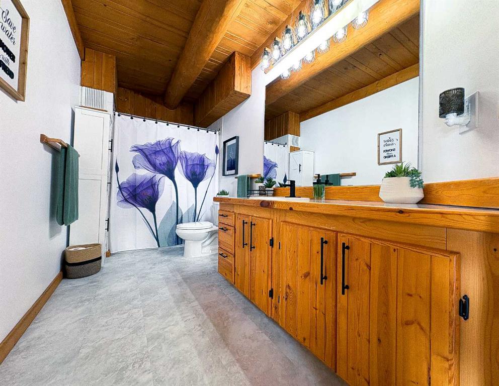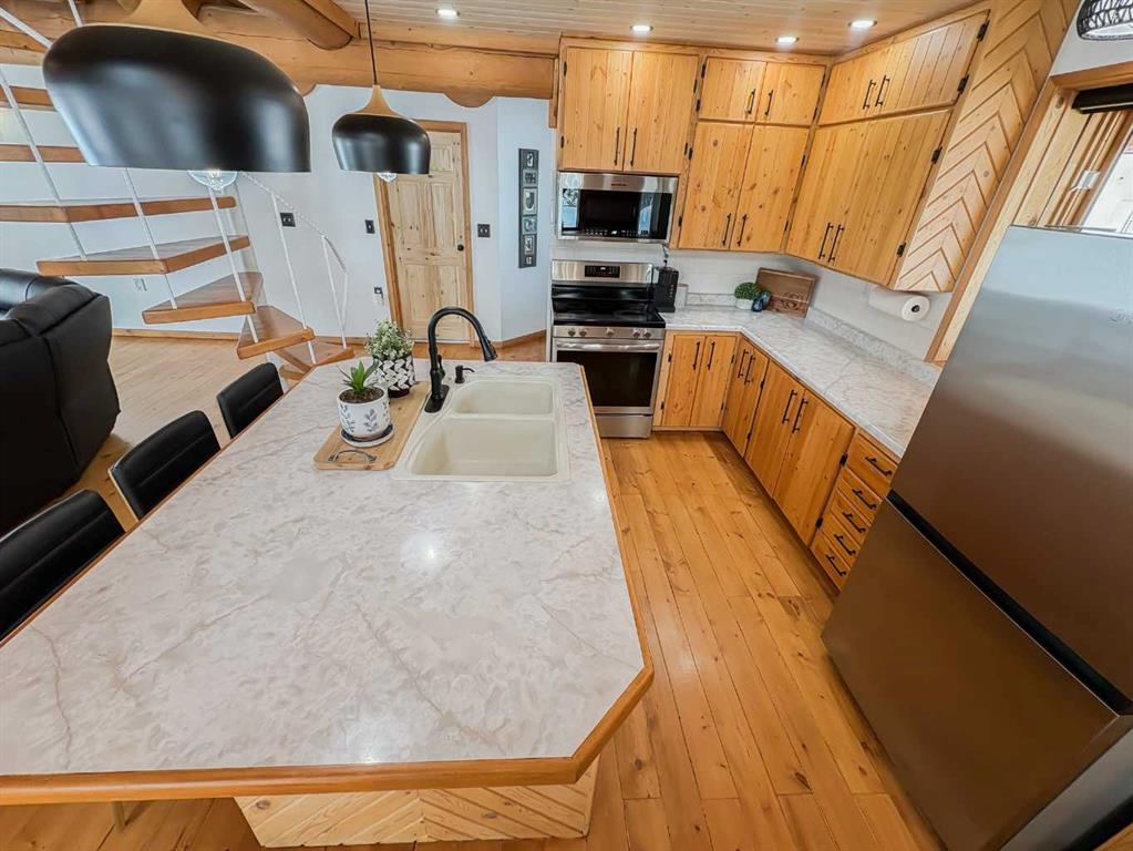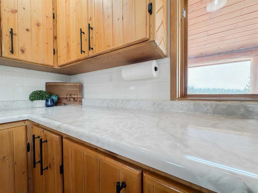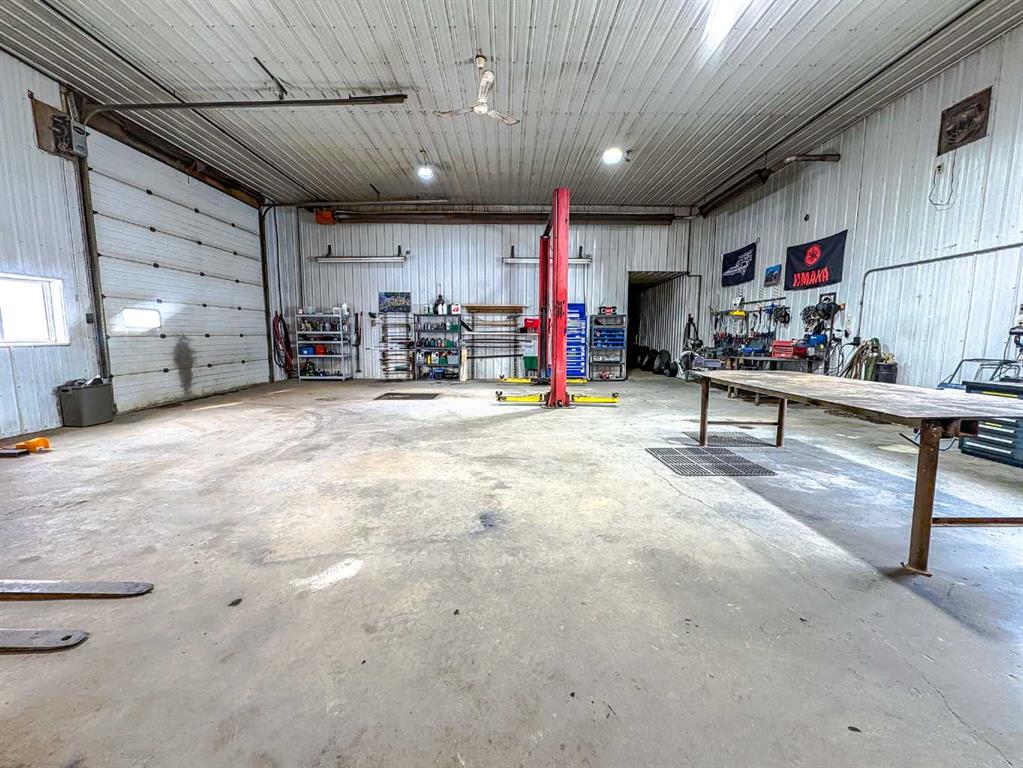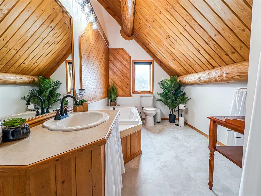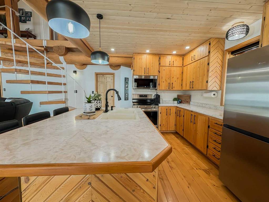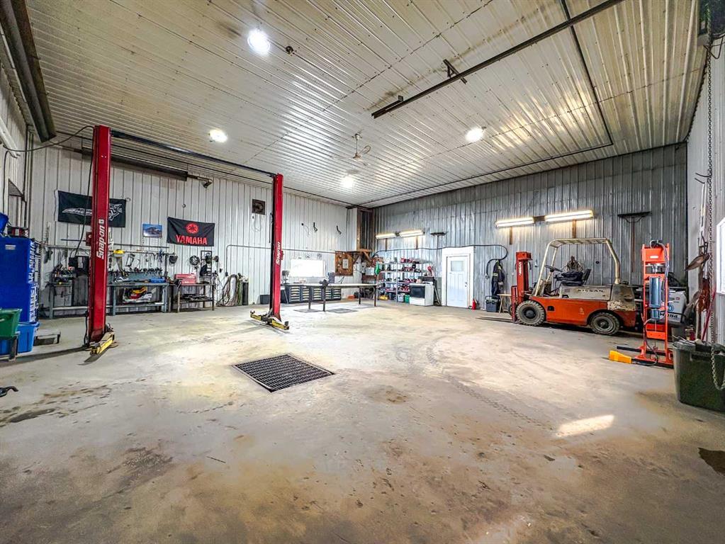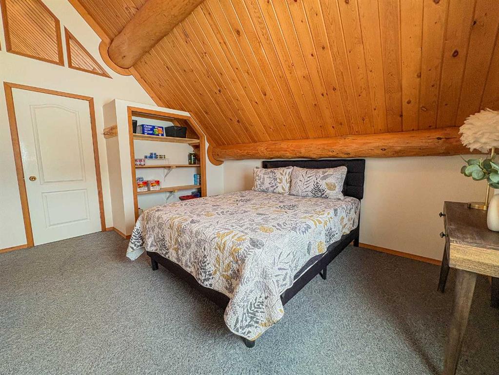 Set on 17.27 acres just over 100 km from Grande Prairie, this one-of-a-kind log home offers the perfect balance of peaceful country living and practical functionality, ideal for those looking to live, work, and unwind all in one place. Step inside and you’re immediately welcomed by soaring vaulted ceilings, exposed log beams, and a stunning open-to-below design that fills the home with natural light. The main living space is warm yet airy, anchored by large windows that frame the surrounding landscape. The kitchen is both functional and inviting, featuring ample cabinetry, a central island with seating, and a seamless flow into the dining area. The home offers 2 bedrooms and 2 bathrooms, along with the convenience of main floor laundry. The primary suite feels like a true retreat, while thoughtful touches throughout the home create a cozy, elevated cabin feel without sacrificing brightness or style. Outside, the lifestyle truly shines. A covered wrap-around porch provides the perfect spot for morning coffee or evening relaxation while taking in the peaceful surroundings. The land itself is a versatile mix of pasture and grain, fenced and ready for horses or some livestock. For those needing space to operate or expand a business, the shop setup is exceptional. Featuring 5,560 sqft. of space, multiple attached bays, including one with in-floor heat, 3-phase power, 18-foot overhead doors, office space, multiple rooms, and even a bathroom! This property is fully equipped to support a wide range of uses. An additional detached garage adds even more storage or workspace options. Located just off the highway for easy commuting, this property offers the rare combination of accessibility, privacy, and opportunity all wrapped into a stunning log home setting. Ask your agent for the full list features & upgrades!