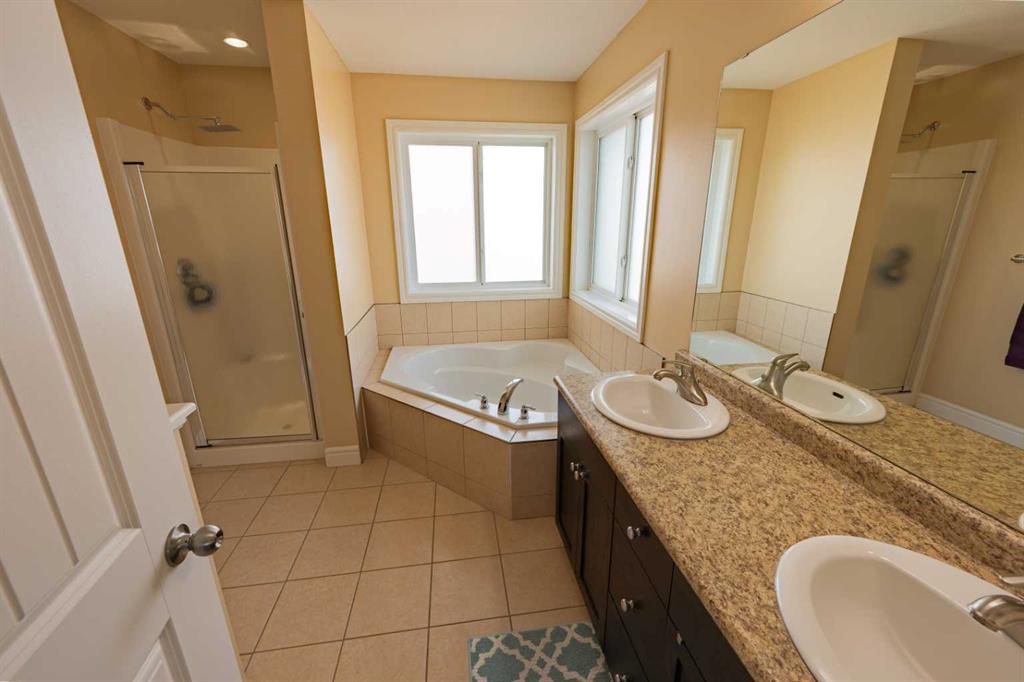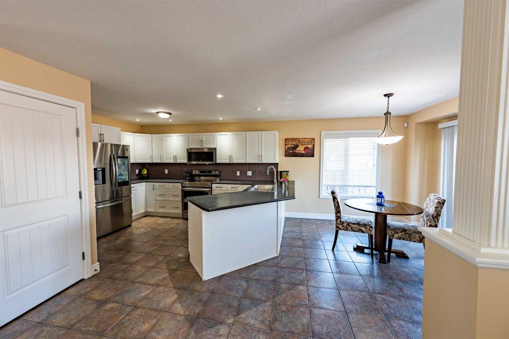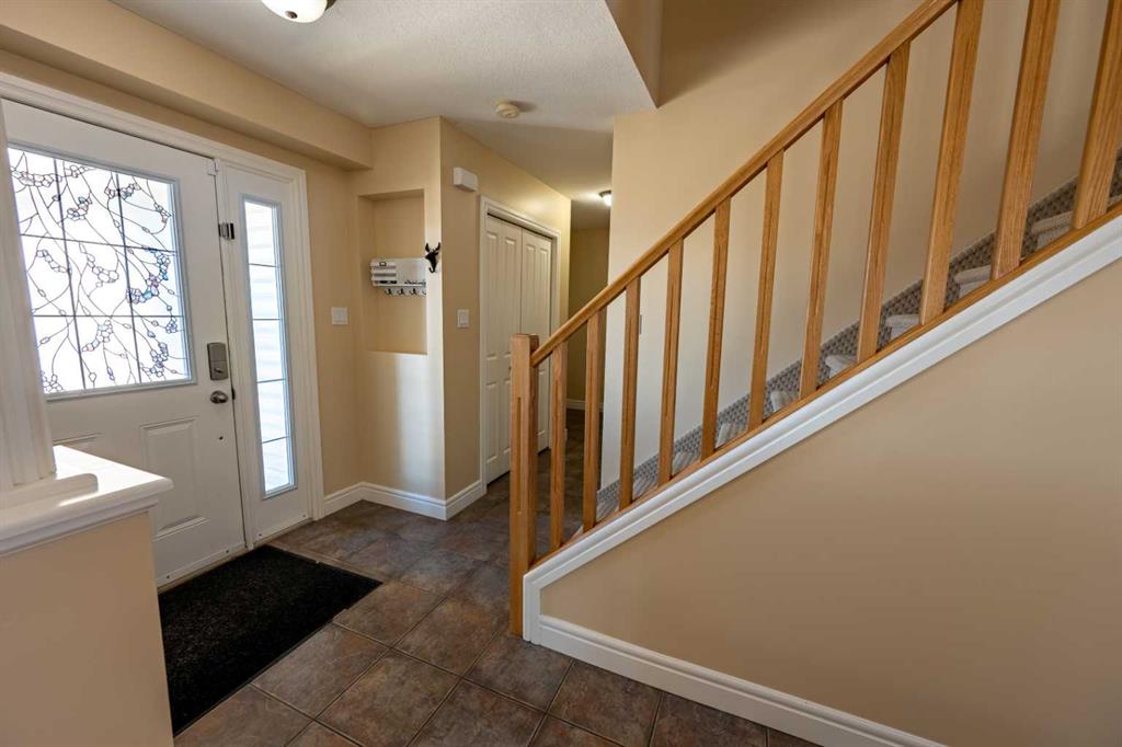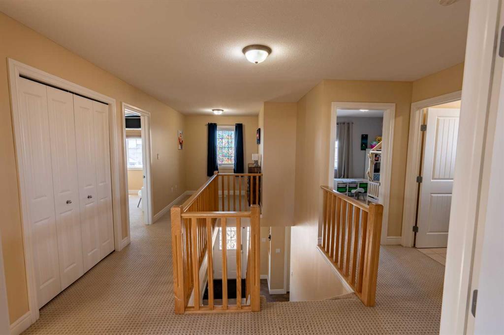 Welcome to the ideal home for a growing family, offering space, comfort, and a fantastic location. This well-designed property features 4 bedrooms (3 up, 1 down) and 3.5 bathrooms, with room for everyone to live and grow. From the moment you arrive, the inviting 18' x 7' front deck sets the tone. Step inside to a spacious front entry with convenient access to the double attached garage and a 2-piece bath. The main floor showcases beautiful hardwood flooring throughout the living and family rooms, while the bright, functional kitchen features tile flooring, a generous eating area, and direct access to the fully fenced backyard. Here, you’ll enjoy both a 16' x 12' deck and a stamped concrete patio perfect for entertaining or relaxing. Upstairs, you’ll find three well-sized bedrooms, a full 4-piece bathroom, and a stunning primary retreat complete with a 5-piece ensuite and walk-in closet. The upper-level laundry adds everyday convenience, along with a dedicated study nook ideal for homework or a home workspace. The completed basement offers excellent additional living space, including a fourth bedroom, office or potential fifth bedroom, rec room, utility/storage area, and a finished 4-piece bathroom. Additional highlights include RV parking beside the garage and a quiet, family-friendly location close to shopping, parks, and a walking trail just steps behind the home. This is a fantastic opportunity to own a spacious, move-in ready home in a great neighbourhood perfect for families looking for both function and lifestyle.