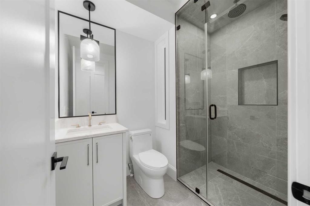 This gorgeous three-story duplex on a premier Altadore street offers an expansive floor plan meticulously designed for modern living. This build features two curated color palettes—light and dark. Please refer to photos of the builder's previous builds for a preview of both finish styles. The main level welcomes you with a formal foyer and an elegant dining room that flows into a chef-inspired kitchen featuring a massive quartz island, a walk-in pantry, and a dedicated pocket office—perfect for working from home. Relax in the sun-filled living room anchored by a sleek gas fireplace, which leads into a functional rear mudroom and a conveniently located powder room. The second level is thoughtfully laid out with three bedrooms and a separate laundry room. This floor includes a spacious secondary master bedroom with its own private ensuite bath and walk-in closet, a second bedroom also featuring a walk-in closet, and a versatile third bedroom. Highlighting the home's unique design, the entire third floor is a private primary retreat, offering ultimate seclusion with a private balcony, a massive walk-in closet with its own center island, and a spa-like ensuite featuring a deep soaker tub, double vanity, and custom shower. The fully developed basement adds even more value with a dedicated home gym, a spacious media room, a stylish wet bar, a fifth bedroom, and ample storage. This stunning property blends luxury and function, situated just steps from the vibrant shops of Marda Loop, top-tier schools, and local parks.