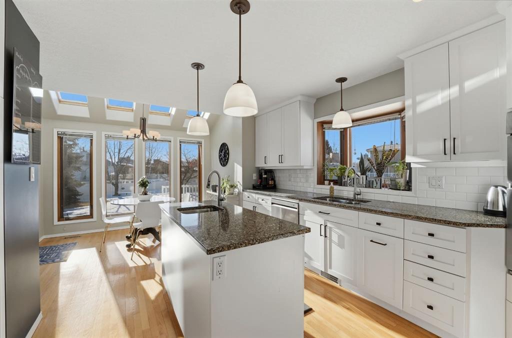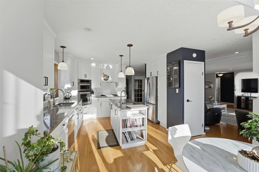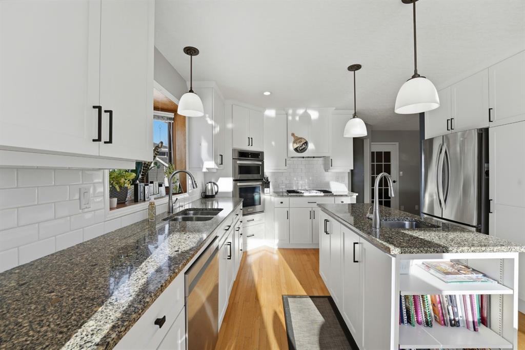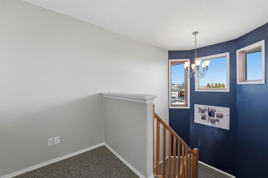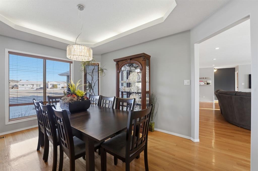 An elevated home offering space without sacrificing design — one of those places that just feels like home. Tucked into a quiet Stettler cul-de-sac, this property features a triple attached garage, 5 bedrooms (with potential for a 6th), and 4 bathrooms, creating the perfect setting to grow into and enjoy for years to come. Step inside to a welcoming foyer that opens into a bright and inviting living room, where large south-facing windows and rich hardwood flooring create a warm and comfortable gathering space. The formal dining room features tray ceilings, offering an ideal setting for family dinners and entertaining. The kitchen is both timeless and highly functional, complete with beautiful cabinetry, granite countertops, a center island with prep sink, gas range, and wall oven/microwave combo - perfect for those who love to cook and host. The adjoining breakfast nook is a standout feature, with a stunning skylight package and surrounding windows that fill the space with natural light, while a garden door leads directly to the tiered deck for easy indoor-outdoor living. The main floor also includes a versatile bedroom or office, a full bathroom, and a practical mudroom with direct access to the garage, which is equipped with an electric vehicle charger. Upstairs, you’ll find three additional bedrooms and a full bathroom, along with a spacious primary suite featuring a cozy gas fireplace, a super-sized walk-in closet, and a full ensuite — creating a comfortable and private retreat. The fully developed lower level expands your living space with a large family and games area, an additional bedroom, generous storage, and the option to create a sixth bedroom if desired. A unique highlight is the 3-piece bathroom complete with a dry cedar sauna. Outside, the private backyard is beautifully landscaped with mature trees, vinyl fencing, and RV parking with hook-up. The multi-tiered deck with inset hot tub and fire pit area creates a great space for relaxing or entertaining. With central air conditioning already in place and exceptional space throughout, this home offers a layout and lifestyle that truly works for everyday family living — a home where you can truly put down roots and grow into for years to come.