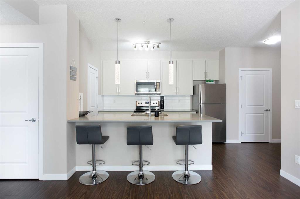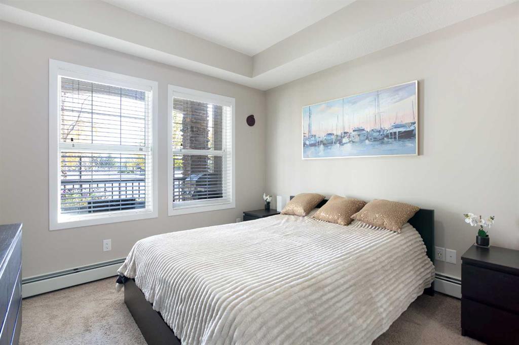 Welcome Home to Cranston! Step into your bright and spacious main-floor retreat in one of Calgary’s most desirable southeast communities. This beautifully maintained 2-bedroom, 2-bath condo combines modern design with everyday convenience in a sought-after, family-friendly location. The open-concept layout features a well-appointed kitchen with sleek countertops, abundant cabinetry, and a seamless flow into the dining and living areas—perfect for entertaining or relaxing. Large south-facing windows flood the space with natural light and open onto your private patio, ideal for enjoying morning coffee or evening sunsets. The spacious primary suite includes a full ensuite and generous closet space, while the second bedroom and bathroom offer flexibility for guests, a home office, or a roommate. Added conveniences include in-suite laundry, an outdoor parking stall right near the entrance, and a private storage locker for your seasonal items or gear. Cranston offers a true sense of community with exceptional amenities right at your doorstep. Enjoy access to Cranston Century Hall, featuring a gym, splash park, sports courts, skating rink, and event spaces. Outdoor enthusiasts will love the endless walking and biking pathways connecting to Fish Creek Park and the Bow River, while families benefit from excellent nearby schools, playgrounds, and green spaces. Shopping, dining, and daily necessities are minutes away at Cranston Market and Seton Urban District, home to coffee shops, grocery stores, restaurants, the YMCA, South Health Campus, and Cineplex VIP Theatre. Quick access to Deerfoot and Stoney Trail makes commuting simple and efficient. Whether you’re a first-time buyer, investor, or downsizer, this bright and inviting main-floor condo offers the perfect blend of comfort, community, and convenience. Experience the best of Cranston living—schedule your private viewing today!