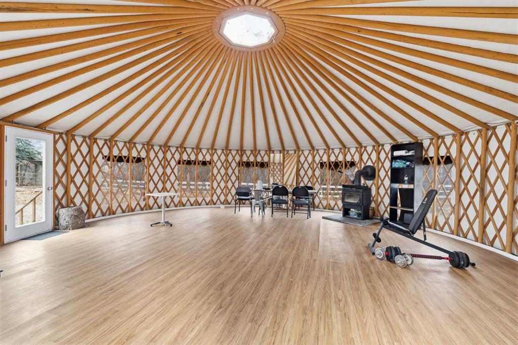 A Private Country Oasis on 5.52 Acres | Steps to Town | 2,231 Sq. Ft. Above Grade | Over 3,000 Sq. Ft. of Total Developed Living Space Discover this exceptional acreage property offering privacy, natural beauty, and timeless country charm — all just minutes from town amenities. Nestled on 5.52 fully treed acres behind a private gated entrance, this uniquely designed residence provides a serene lifestyle while maintaining convenient access to daily necessities and major roadways. The home features thoughtfully selected farmhouse-inspired finishes, including reclaimed elements sourced from historic sites. The well-appointed kitchen includes stainless steel appliances, ample counter space, and extensive cabinetry, providing both functionality and style. The adjoining dining room offers a warm and inviting space for family gatherings and special occasions. A dramatic, light-filled family room showcases vaulted ceilings and expansive windows framing the peaceful natural surroundings. The sunken living room adds an additional cozy retreat, complete with a wood-burning fireplace and bay window — ideal for relaxing on cooler evenings. The upper level hosts a charming primary bedroom with double barn-door closet access, a gas fireplace, and a private balcony overlooking the treed landscape — the perfect spot for morning coffee or quiet reflection. A second bedroom, flex room, and spacious 5-piece bathroom complete this level. The finished lower level offers a large multi-purpose space, an additional bedroom with 2-piece bathroom (macerating toilet), and direct walk-up access to the outdoors.The fully developed lower level offers exceptional additional living space, featuring a bedroom, a 2-piece bathroom (macerating toilet), a large recreation room, storage area, and direct walk-up access to the outdoors, making it ideal for guests, teens, or multi-use living. Outdoor Features The property offers endless opportunities to explore and enjoy nature with mature trees, walking paths, and multiple outdoor activity and relaxation areas. Additional amenities include: • Cottage-style playhouse • Swings and outhouse • Chicken coop and horse shelters • Wood sheds and detached garage • Two firepit areas and water features • Expansive deck space • Pasture and stock waterers — ideal for horse owners Recent Upgrades • Gas stove • Window blinds • Water filtration system • New hot water tank • New furnace Location & Investment Appeal Conveniently located near Honda Okotoks, this property offers excellent access to shopping, services, and commuter routes. A fantastic opportunity for buyers seeking space, lifestyle, and long-term land value in the Okotoks and surrounding area. This one-of-a-kind property combines character, comfort, and possibility — a rare offering that truly must be experienced.