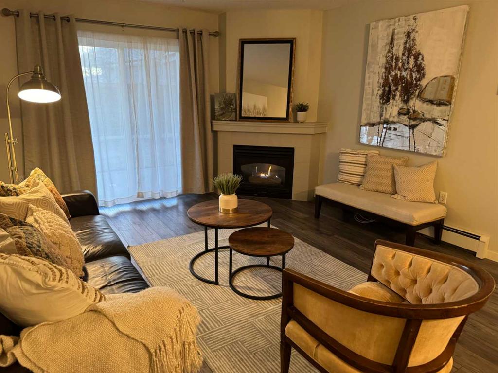 Welcome to this beautifully updated 2-bedroom, 2 full bathroom condo, offering modern comfort and a convenient lifestyle. Featuring durable laminate flooring throughout, this bright and spacious unit. The inviting living area includes a cozy gas fireplace and sliding glass doors that lead to a private patio—ideal for enjoying your morning coffee. The kitchen is equipped with stainless steel appliances, quartz counter tops, updated backsplash. Additional highlights include in-suite laundry, fresh updated paint, air conditioner, off street parking and a well-designed layout that provides both functionality and privacy. Located just minutes from the university, parks, and everyday amenities, this home offers the perfect balance of convenience and comfort. A fantastic opportunity for students, professionals, or investors.