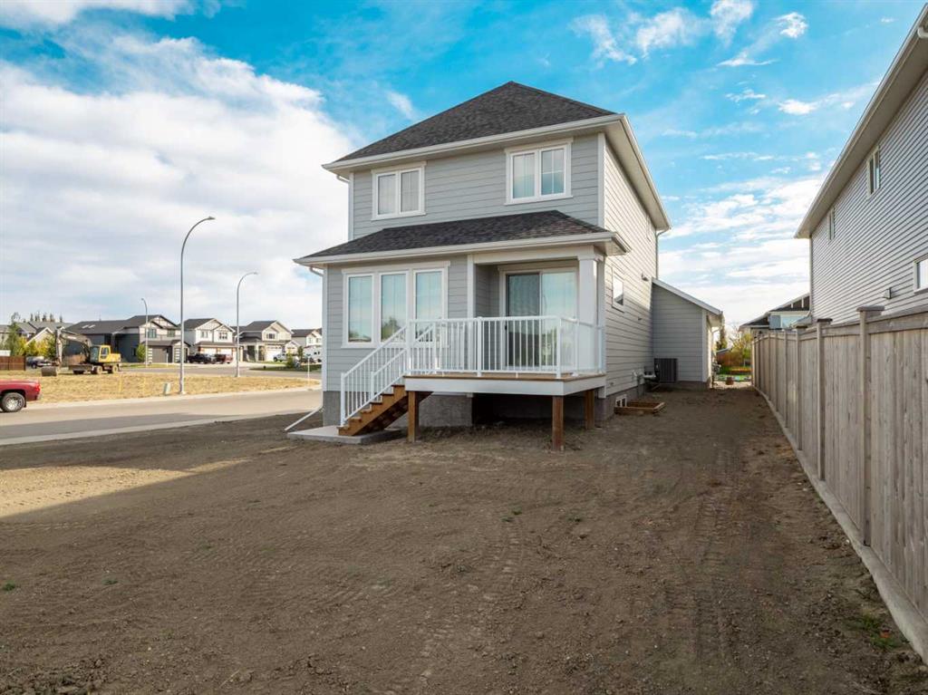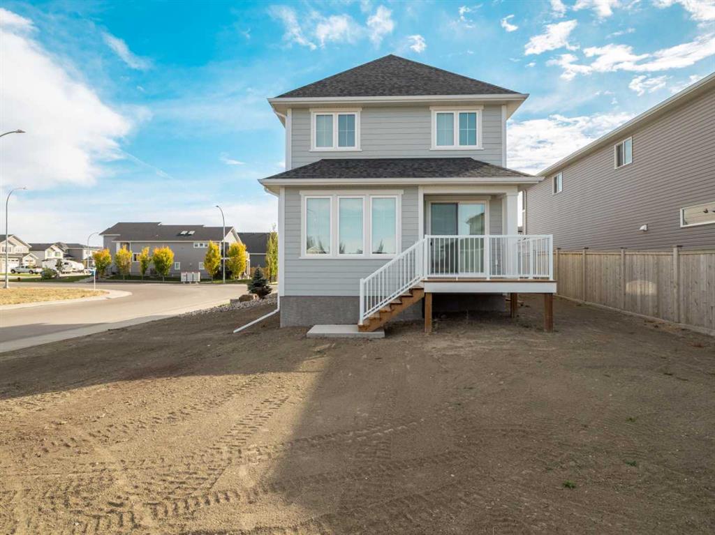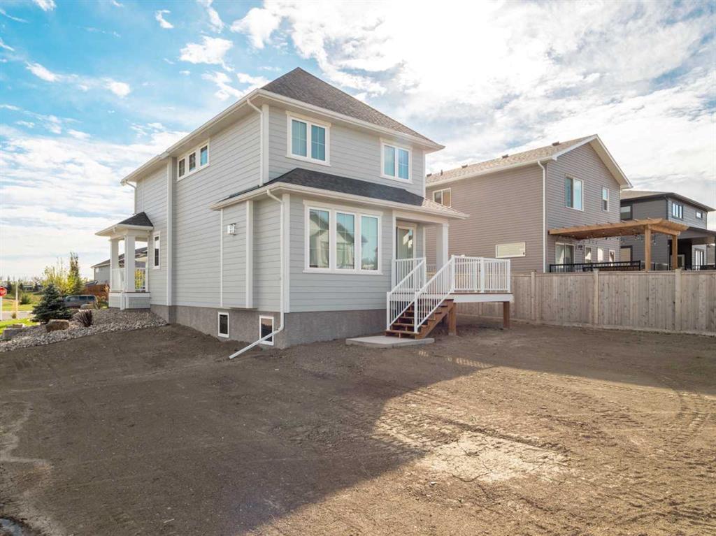 Welcome to this beautifully crafted custom home in the highly desirable community of Cottonwood Estates in Coaldale. Built by prestigious Stonegate, this stunning home showcases timeless Cape Cod style, bringing classic East Coast charm to the prairie landscape. Featuring 3 bedrooms and 2 bathrooms, the home offers a bright, well designed layout with upscale finishes throughout. Highlights include Lux windows, solid interior doors, custom built-ins, quartz countertops, stainless steel appliances, and a beautiful stone wrapped fireplace. The kitchen is both stylish and functional with a walk-in pantry, custom shelving, and timeless backsplash. Enjoy 9’ ceilings, triple-pane windows, curated lighting, and a partially covered rear deck perfect for relaxing or entertaining. The exterior is equally impressive with upgraded James Hardie siding, Smartboard trim, and a charming carriage style garage door, delivering exceptional curb appeal. Covered by the Alberta New Home Warranty Program, this home offers peace of mind along with comfort, style, and quality craftsmanship. Move to one of Coaldale’s most welcoming and secure communities .