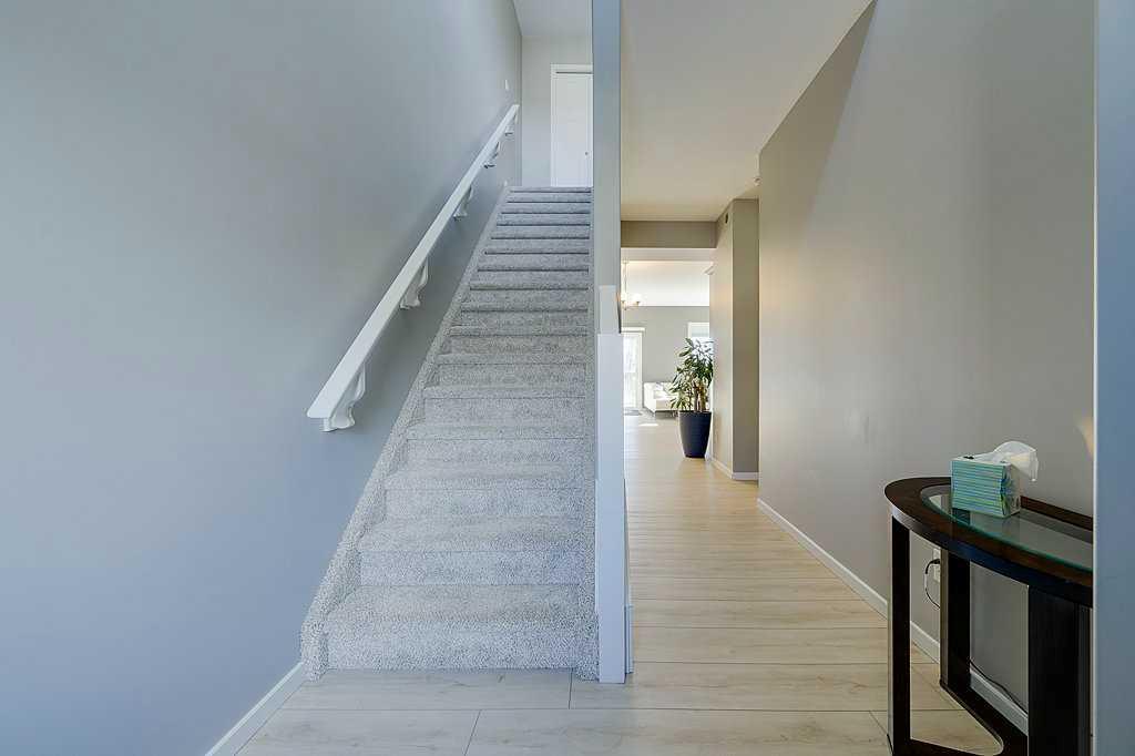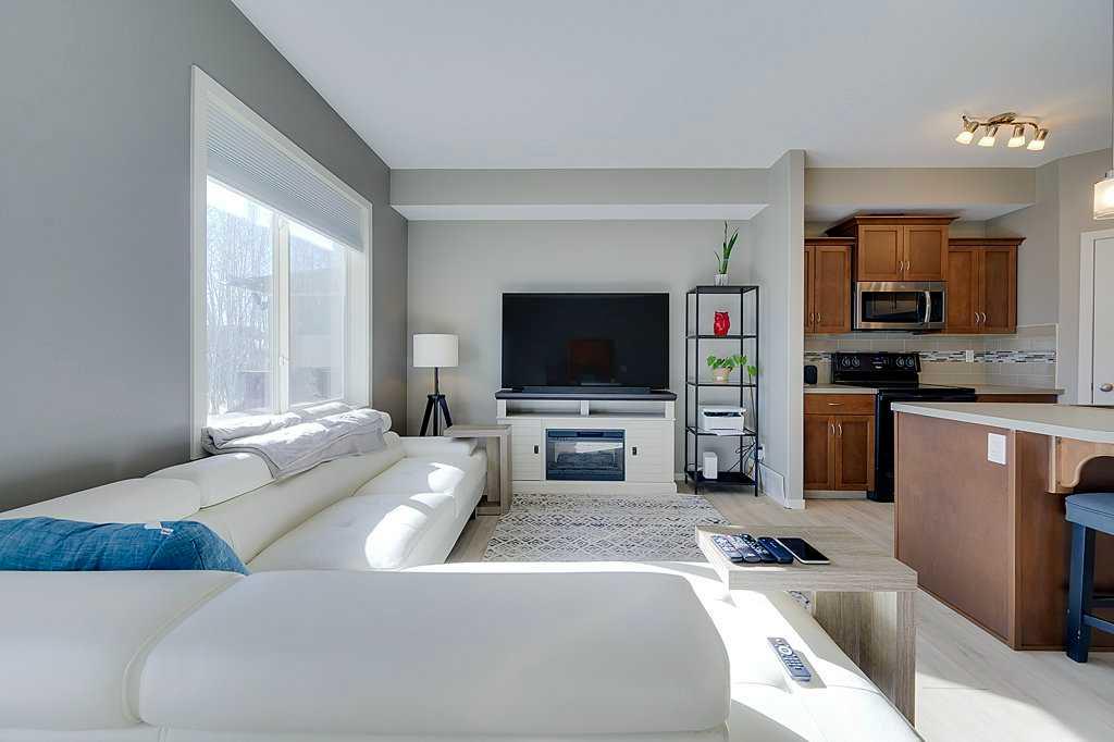 Located in the charming town of Sylvan Lake, this beautiful townhome in Newport Village offers a perfect blend of comfort and convenience. With 1,447 square feet of thoughtfully designed living space, this home features soaring 9-foot ceilings, a combination of durable vinyl plank flooring and cozy carpet, and an inviting open floor plan. The large south-facing rear windows provide an abundance of natural light and picturesque views of the serene treed area. The modern kitchen is equipped with a functional island, wood cabinets, and a pantry, making it ideal for cooking and entertaining. Upstairs, you’ll find three spacious bedrooms, including a generously sized primary suite with a walk-in closet. The convenience of second-floor laundry adds to the home’s appeal. The living room opens onto a back deck with a yard, offering a great space for relaxation. The unfinished basement presents an opportunity to customize to your needs. A one-car attached garage provides added convenience. Enjoy the benefits of professional management, which includes exterior maintenance, lawn care, and snow removal including walk-ways and driveway, allowing you more time to experience the lake and all the activities Sylvan Lake has to offer. This low-maintenance home is perfect for those seeking a balance of modern living and outdoor enjoyment. Pets no bigger than 18 inches at highest point. 4o