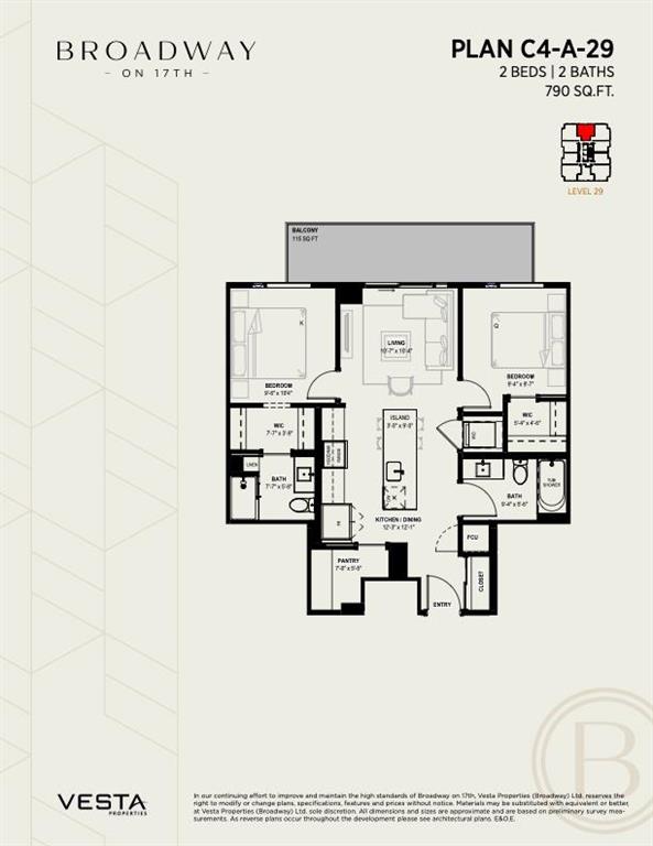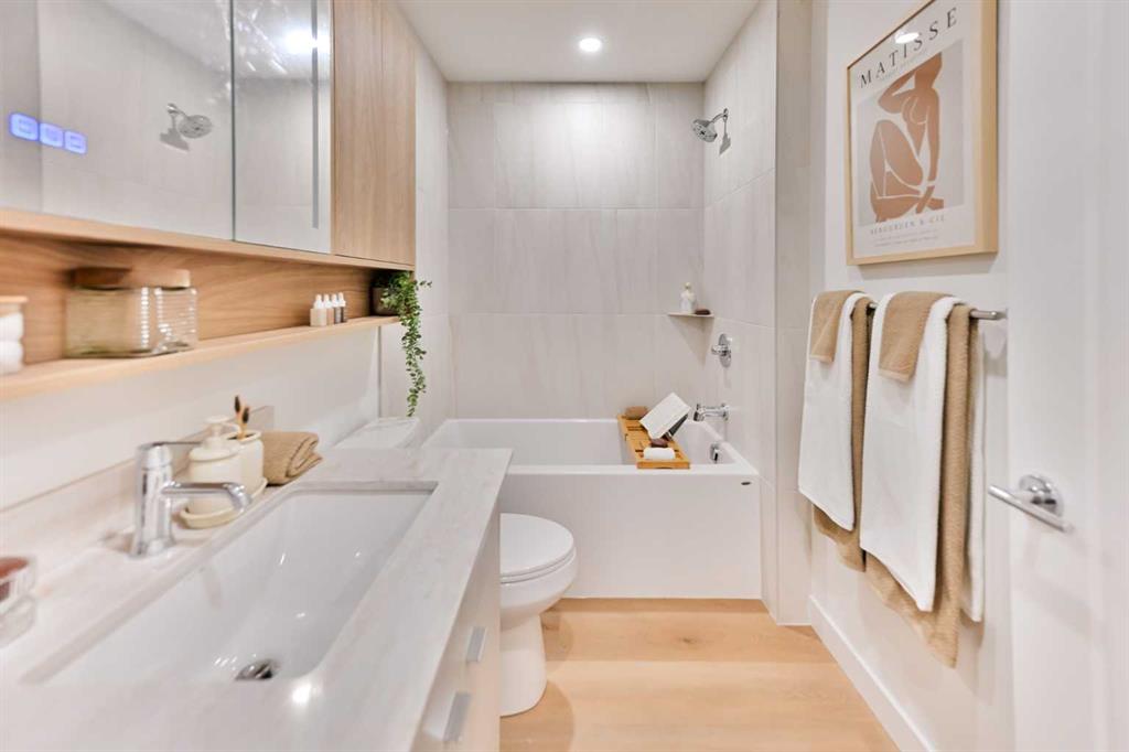 Welcome to Broadway on 17th, a landmark new development redefining urban living in the heart of Calgary. This architecturally striking community offers a rare opportunity to secure a home in one of the city’s most vibrant and evolving corridors. The C4 model on the 29th floor showcases the perfect blend of sophistication and functionality, featuring thoughtfully designed interiors, premium appliances, and contemporary finishes curated for elevated everyday living. Spacious and efficient, this home reflects modern design principles while offering comfort, style, and flexibility. Residents will enjoy an unmatched collection of resort-style amenities, including a full spa and sauna, state-of-the-art fitness studio, co-working spaces, games lounge, arcade, sports simulator, and beautifully designed social lounges. Pet-friendly areas and collaborative workspaces further enhance the lifestyle experience. A true highlight of the development is the Level 46 Fireside Sky Lounge—an exclusive retreat featuring a bar, indoor fireplace, and private dining areas, all set against breathtaking panoramic views of downtown Calgary and the Rocky Mountains. At ground level, the vibrant Broadway Plaza will bring daily convenience to your doorstep with curated retail, restaurants, cafés, daycare, and office spaces—creating a dynamic, walkable urban village. Designed with intention, the tower placement maximizes natural light, privacy, and sightlines, ensuring each residence benefits from optimal sunshine and stunning views. Offering a diverse range of layouts including studios, one-bedroom, two-bedroom, junior three-bedroom residences, and exclusive sub-penthouse and penthouse homes, Broadway on 17th delivers options for every lifestyle and stage of life. Located just minutes from Calgary’s best shopping, dining, entertainment, and cultural destinations, this is urban living at its finest. Scheduled for completion in October 2030. Live above the energy at Broadway on 17th by Vesta Properties.