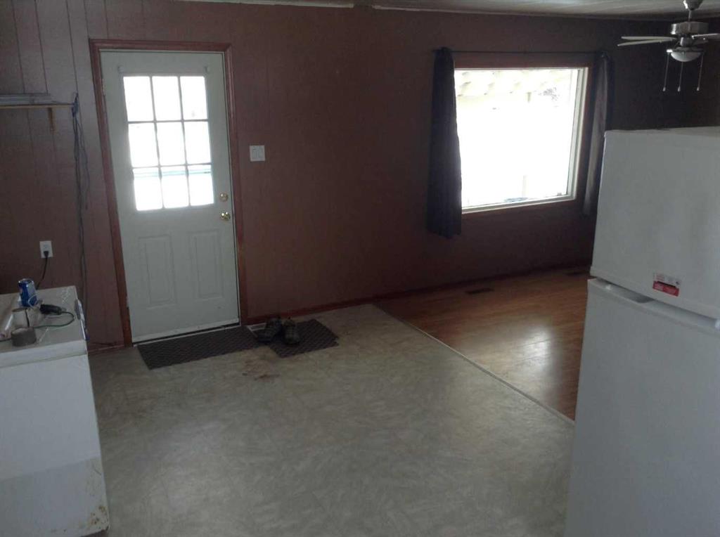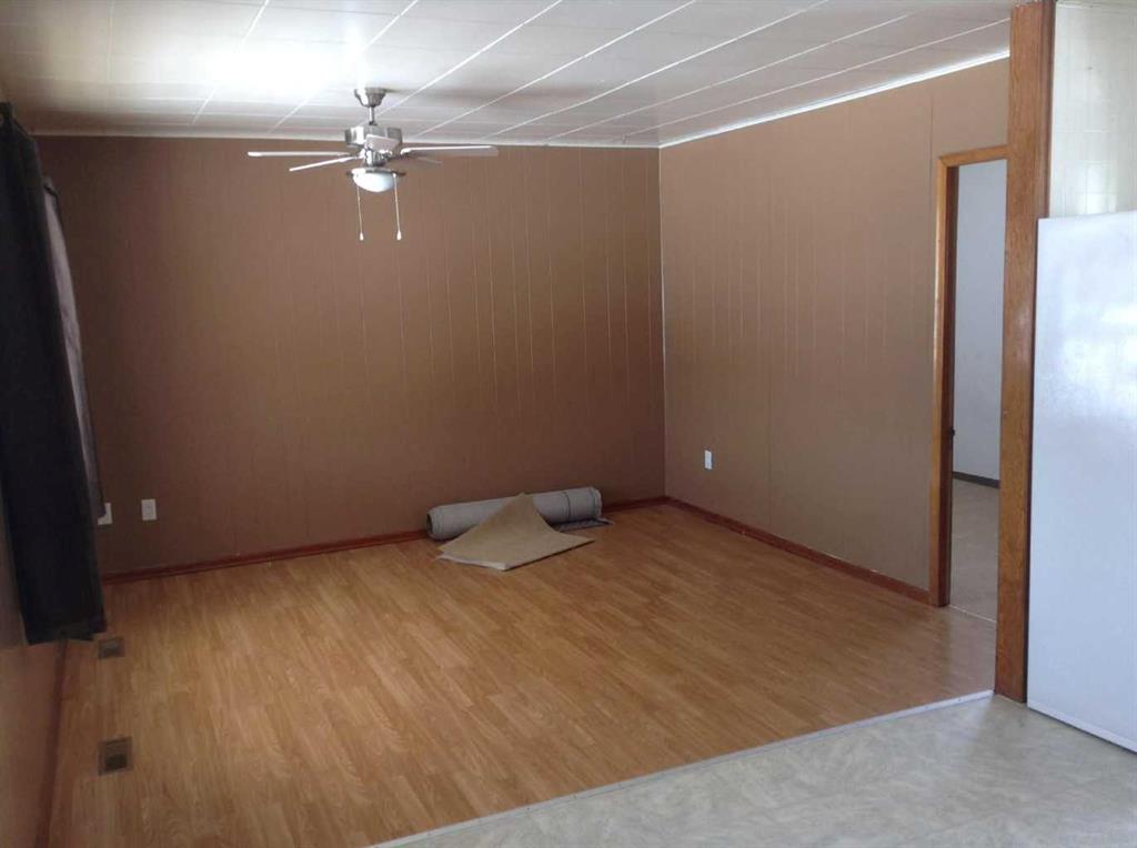 It's not everyday that you can purchase a home for less than $100,000! This two bedroom, one bath home is perfect for a first time buyer or someone looking to downsize. It features a covered deck in the front with a spacious back yard large with alley access perfect for gardening, additional parking and more! The basement is undeveloped allowing for plenty of additional storage and potential future development. The community features a K-6 school, library, daycare, arena, seniors center and so much more! Floor plans are available in the photos section.