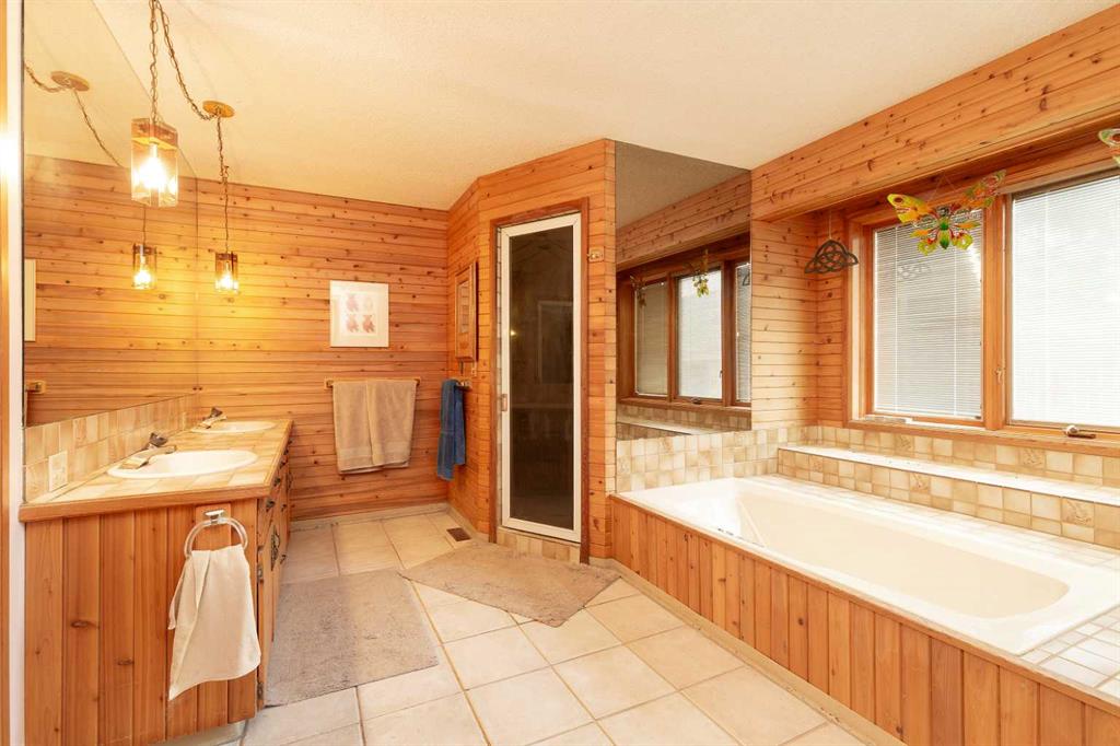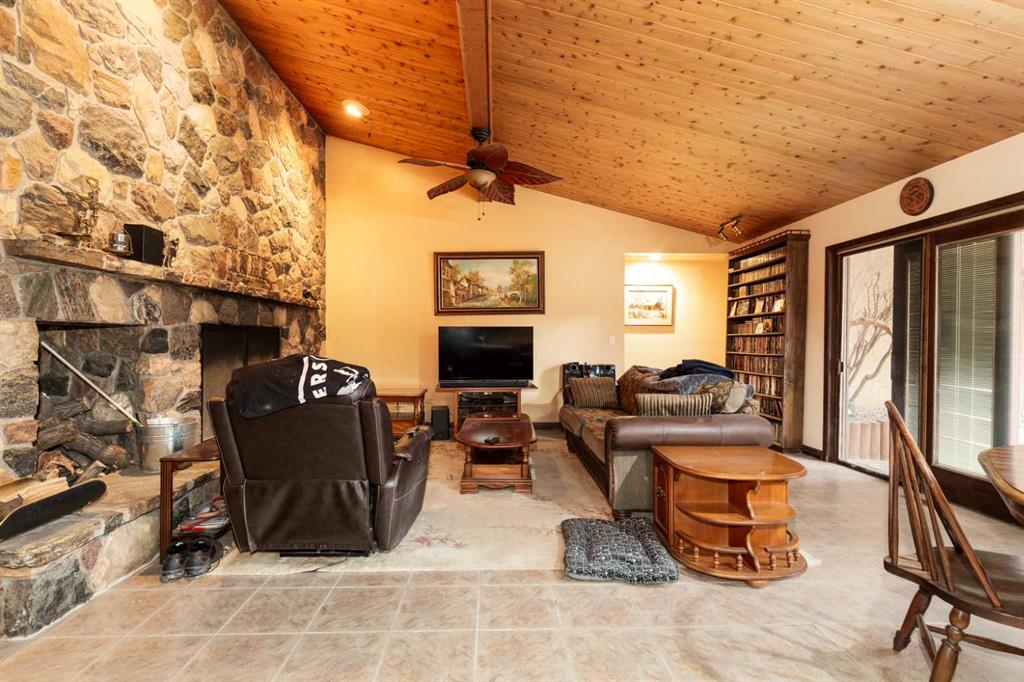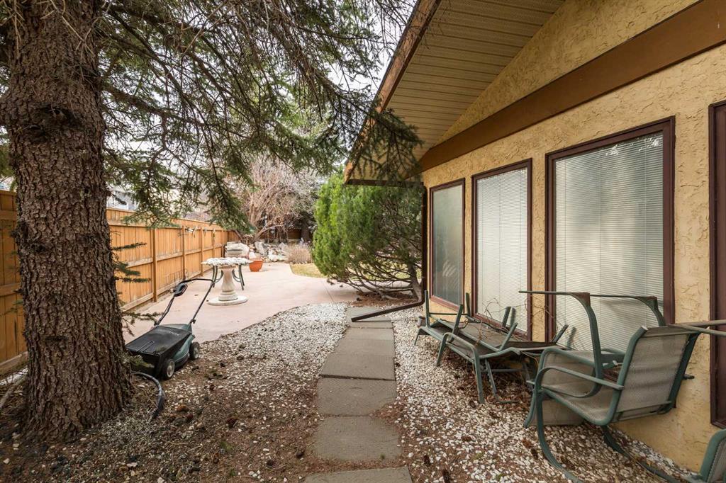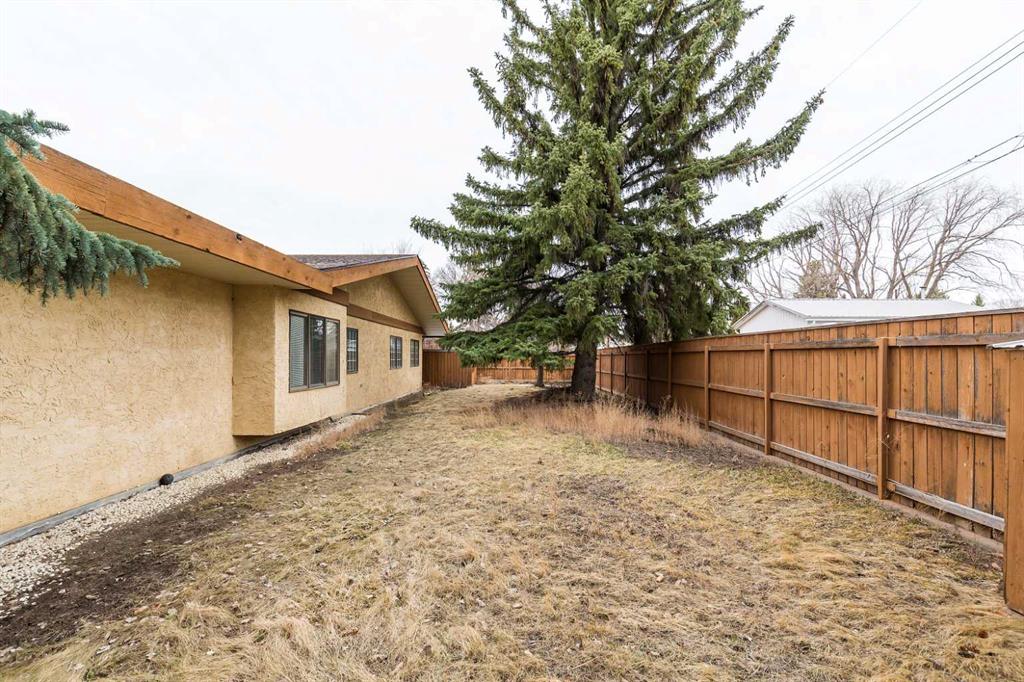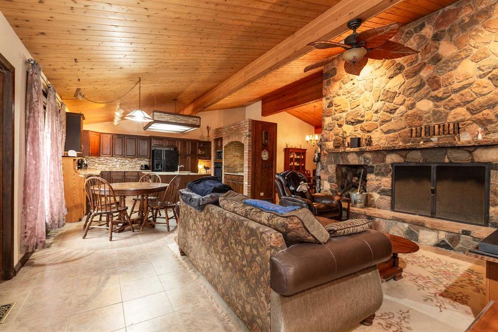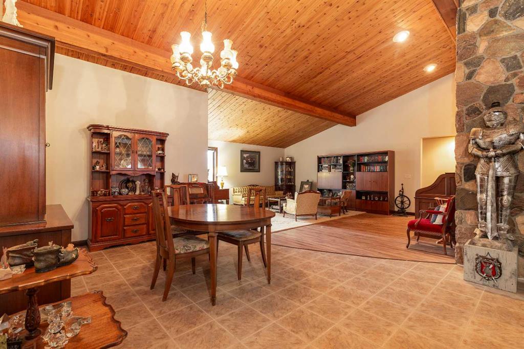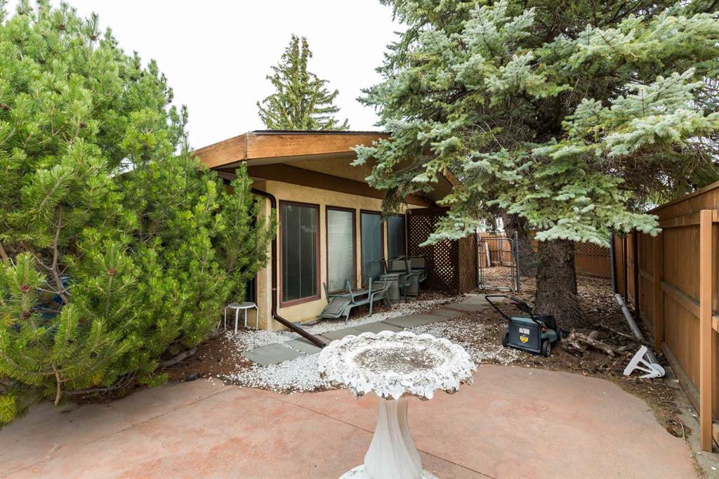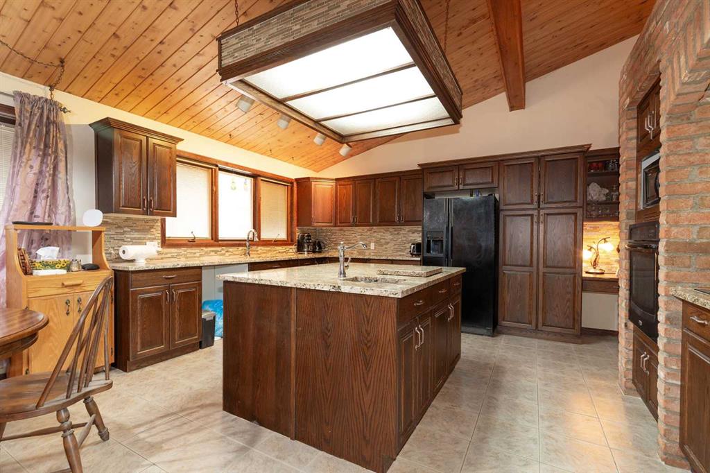 Welcome to 2125 25 St. Tucked away in a quiet cul-de-sac, this impressive 3,420 sq. ft. bungalow offers a rare blend of space, character, and refined design, all set on a beautifully treed 12,775 sq. ft. lot. Showcasing a warm mid-century modern influence, the home features timeless architectural elements, natural materials, and a layout that emphasizes both form and function. The main living area is truly striking, highlighted by soaring beamed cedar vaulted ceilings and a thoughtfully designed layout that balances formal and casual spaces. A floor-to-ceiling custom rock wood-burning fireplace serves as a stunning focal point, gracefully separating the formal living and sitting rooms from the inviting family room, kitchen, and breakfast nook. The expansive kitchen is well-appointed with a large island, built-in oven, and a distinctive brick surround stovetop. The home features 3 bedrooms, a separate office, and 3 full bathrooms, with all 3 bedrooms enjoying direct access to a bathroom, including two bedrooms with private ensuites,. The primary suite is a luxurious retreat, complete with a walk-in closet and a spacious ensuite offering dual vanities, a soaker tub, and a separate shower. Just off the primary bedroom, a private hot tub room with a skylight and sliding glass doors opens to the patio—creating a serene, spa-like escape. Outdoors, the fully fenced and landscaped yard is framed by mature trees, providing both privacy and a tranquil setting. A double attached garage and space for RV parking compliment this exceptional property. A distinctive home offering timeless appeal in a sought-after Coaldale location.