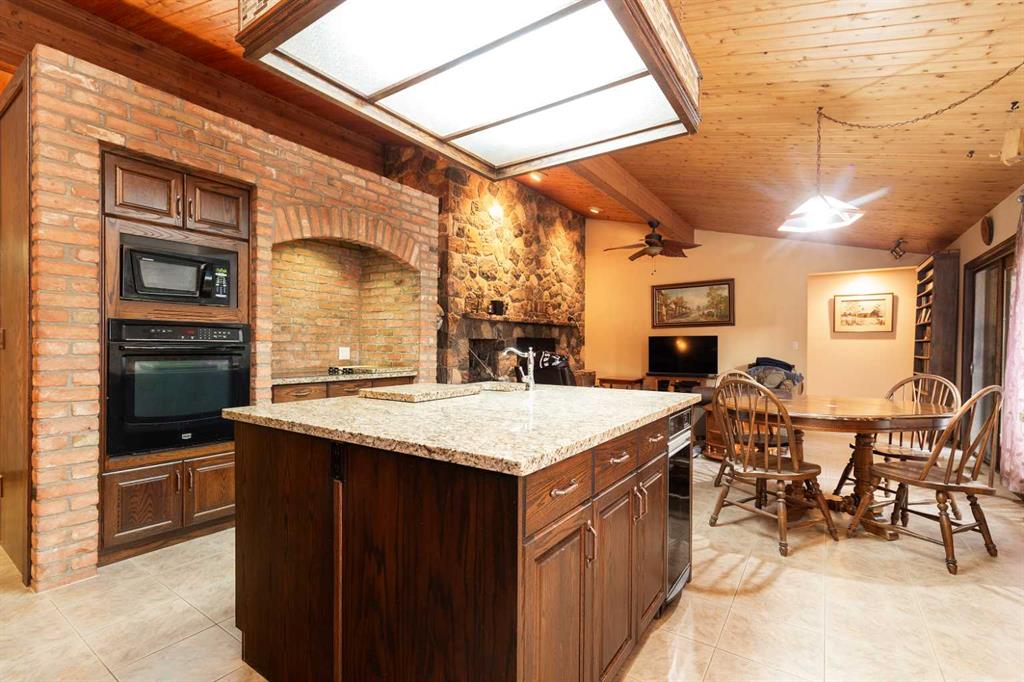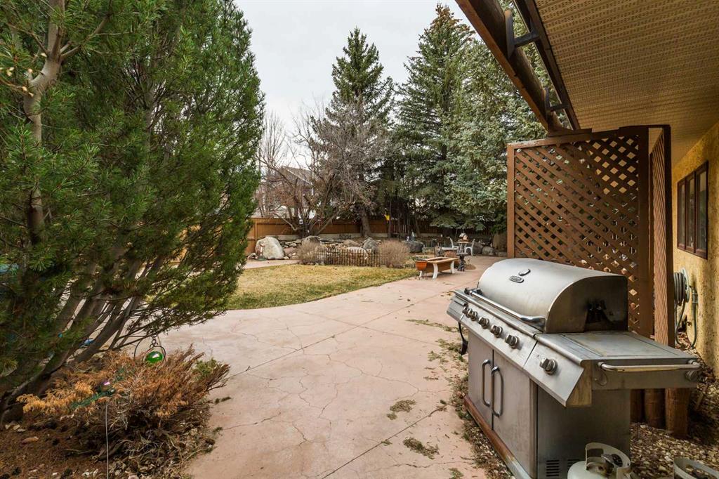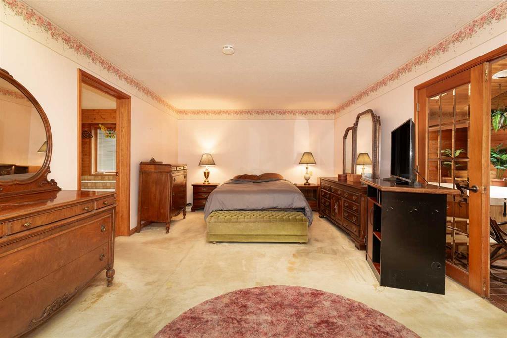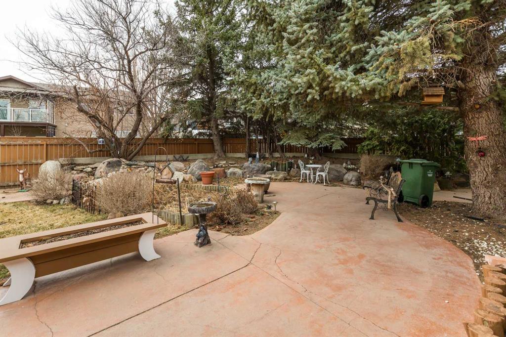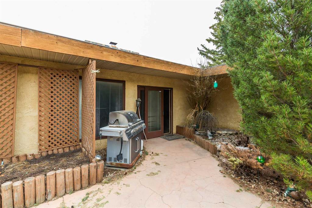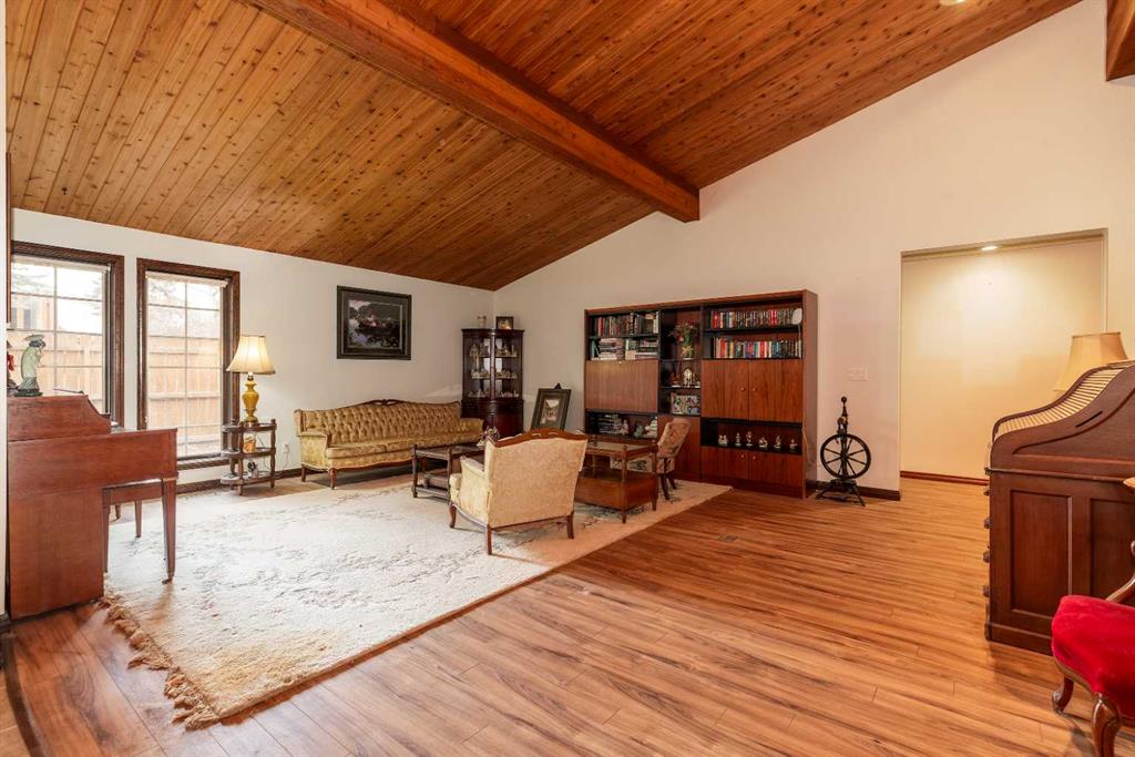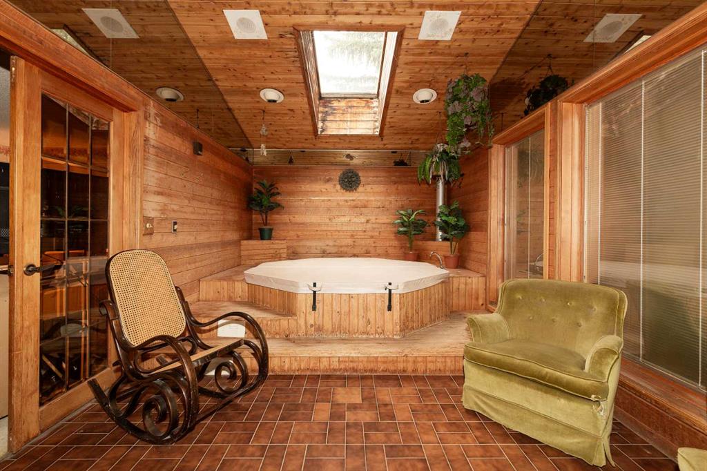 Welcome to 2125 25 St. Tucked away in a quiet cul-de-sac, this impressive 3,420 sq. ft. bungalow offers a rare blend of space, character, and refined design, all set on a beautifully treed 12,775 sq. ft. lot. Showcasing a warm mid-century modern influence, the home features timeless architectural elements, natural materials, and a layout that emphasizes both form and function. The main living area is truly striking, highlighted by soaring beamed cedar vaulted ceilings and a thoughtfully designed layout that balances formal and casual spaces. A floor-to-ceiling custom rock wood-burning fireplace serves as a stunning focal point, gracefully separating the formal living and sitting rooms from the inviting family room, kitchen, and breakfast nook. The expansive kitchen is well-appointed with a large island, built-in oven, and a distinctive brick surround stovetop. The home features 3 bedrooms, a separate office, and 3 full bathrooms, with all 3 bedrooms enjoying direct access to a bathroom, including two bedrooms with private ensuites,. The primary suite is a luxurious retreat, complete with a walk-in closet and a spacious ensuite offering dual vanities, a soaker tub, and a separate shower. Just off the primary bedroom, a private hot tub room with a skylight and sliding glass doors opens to the patio—creating a serene, spa-like escape. Outdoors, the fully fenced and landscaped yard is framed by mature trees, providing both privacy and a tranquil setting. A double attached garage and space for RV parking compliment this exceptional property. A distinctive home offering timeless appeal in a sought-after Coaldale location.