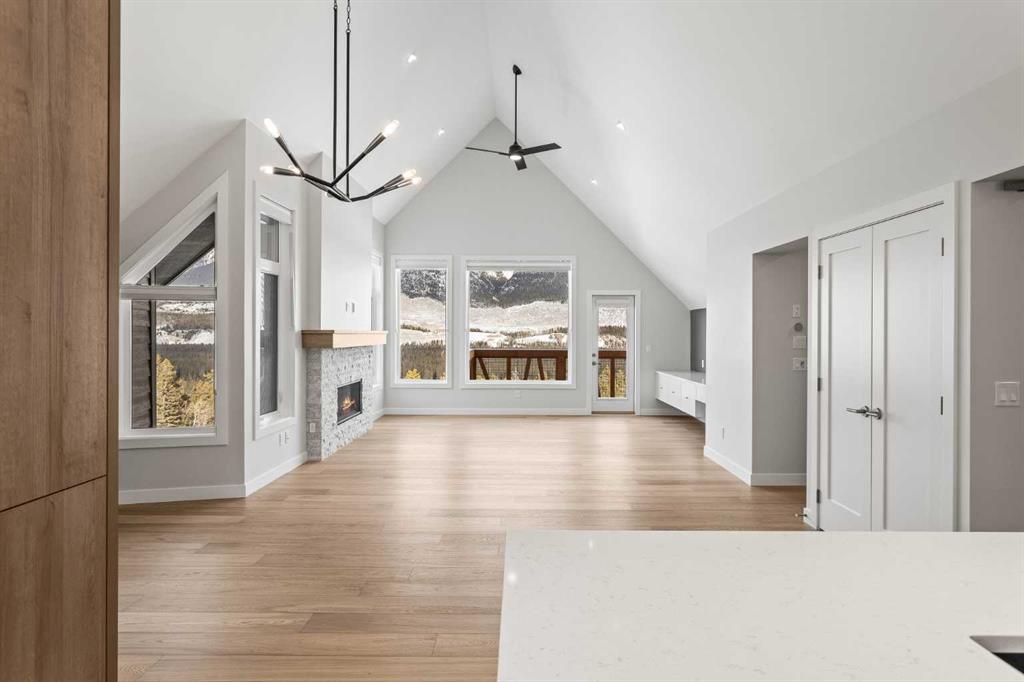 Discover luxury mountain living at its finest in these exquisite 3-bedroom, 2.5-bath retreat, in Stewart Creek's newest multi-family development, The Meadows at Stewart Creek. Situated just under 60 minutes from YYC these 2.5 - storey Chalet townhouses boast a unique floor plan with 15ft vaulted ceilings, architectural wing walls giving the units additional windows, dedicated balconies creating an open and airy ambiance. The upper living areas accented by built-in desk/workspaces, gas fireplaces in the living area to set a serene tone, dedicated dining area, and well-appointed kitchens which boast quartz counters, stainless steel appliances and spacious eating bar. After a day on the hiking and biking trails or at the Stewart Creek Golf course storage is easily accessible in 1.5-car garage with large, heated gear/storage space. Photos are from a finished unit of the same floor plan. Anticipated Possession April 2026.