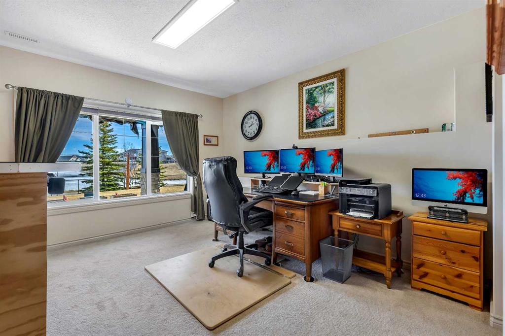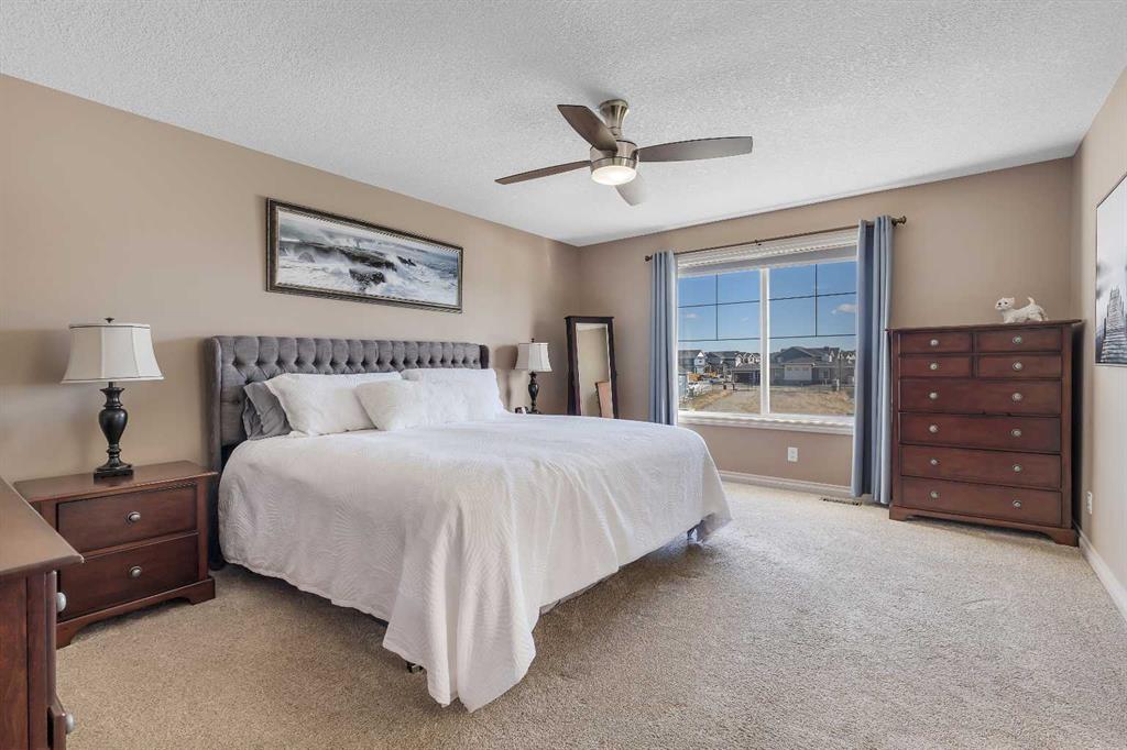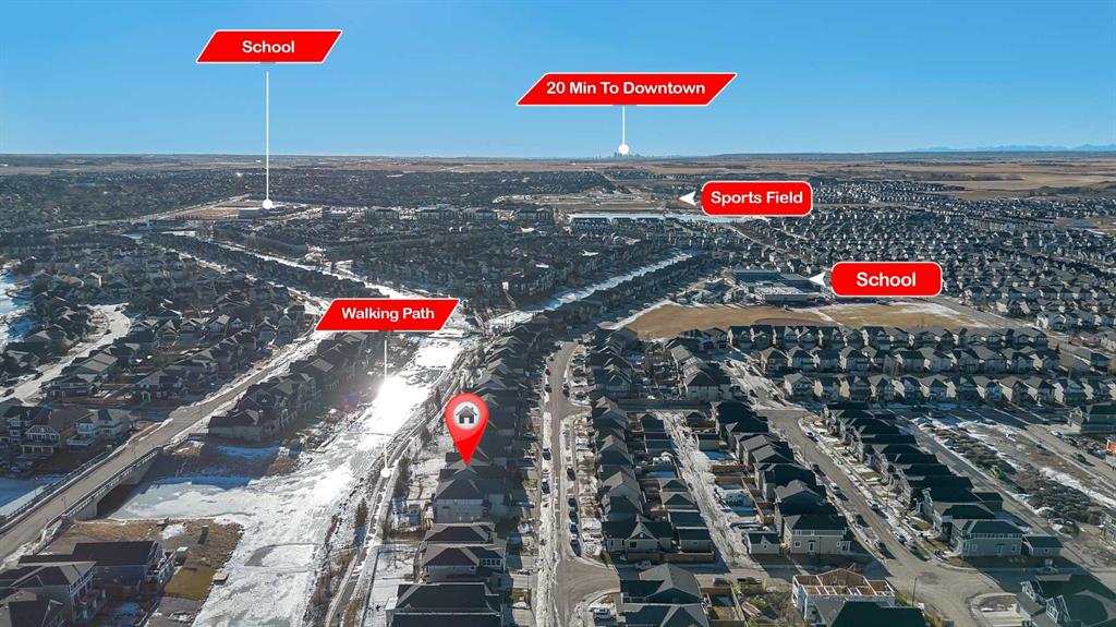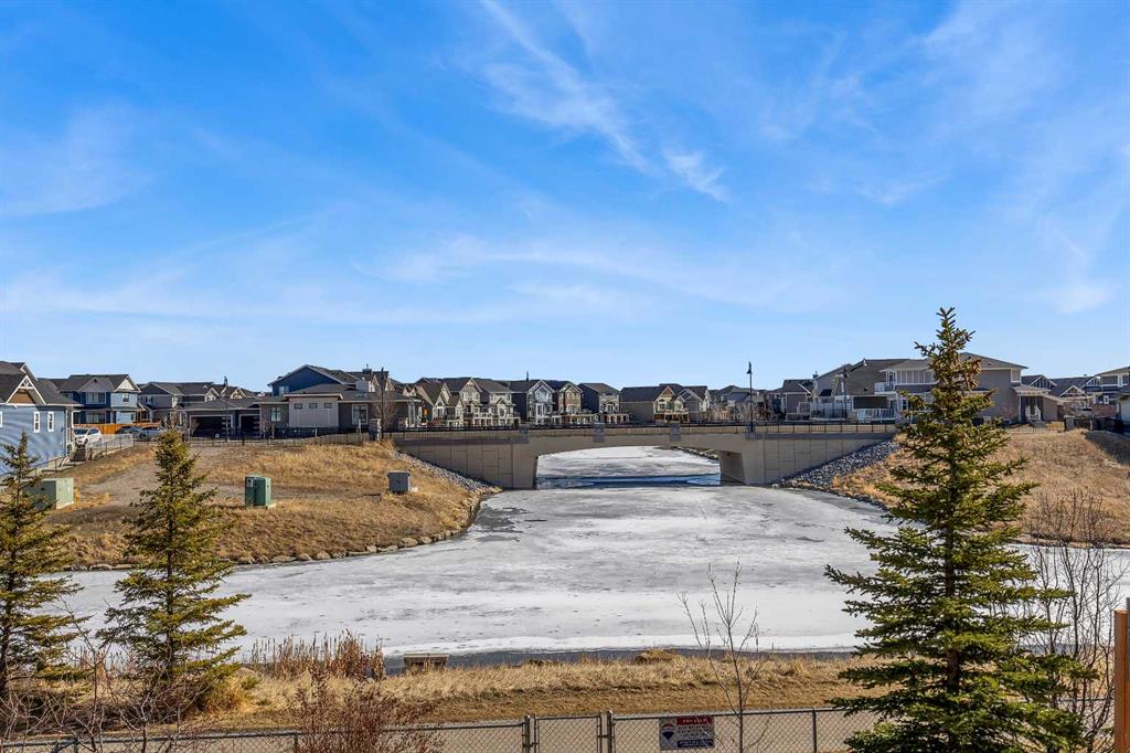 Location, Location, welcome to this beautifully maintained, original-owner home nestled on a quiet street in the desirable community of Bayside. Backing directly onto the scenic canal and pathway system, this property offers over 3,300 sq. ft. of developed living space, combining comfort, functionality, and exceptional outdoor living. This impressive home features 5 bedrooms and 3.5 bathrooms, along with numerous upgrades throughout, including 9’ ceilings, a vaulted bonus room, hardwood flooring, granite countertops, wrought iron railings, and upgraded stainless steel appliances. Additional highlights include two furnaces (with air conditioning on the upper level), rough-in for speakers on the main floor and in the ensuite, and an 11’ ceiling in the garage with extensive shelving for added storage. The main floor offers a thoughtful layout with a spacious great room featuring a cozy gas fireplace, a versatile flex room, convenient laundry area, and a stylish kitchen complete with a pantry, large island with eating bar, and a bright nook that opens onto the newer composite deck—perfect for enjoying picturesque canal views. A gas line is already in place for your BBQ. Upstairs, you’ll find a vaulted bonus room, four generously sized bedrooms, and a full 4-piece bathroom. The primary retreat includes a walk-in closet and a private ensuite, providing a perfect space to unwind. The fully developed walkout lower level expands your living space with a family room, additional bedroom, den, and a 4-piece bathroom, with direct access to the lower patio and backyard. The exterior is equally impressive, featuring manual underground sprinklers in the front yard and multiple outdoor living spaces designed to take full advantage of the tranquil waterfront setting. Ideally located close to schools, shopping, parks, and all amenities, this home truly reflects pride of ownership and offers an exceptional lifestyle in one of Bayside’s most desirable locations. Click on link to view 3D walk through.