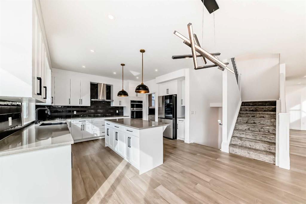Refined Luxury. Designed for Real Life. Welcome to one of the most thoughtfully designed homes in Chestermere, where elevated finishes meet the way families actually live. Situated on a premium corner lot backing onto peaceful green space and park, this brand-new residence offers over 4400 sq ft of living space, a triple car garage, and a layout that effortlessly blends everyday comfort with upscale design. From the moment you step inside, you’re greeted by soaring open-to-above ceilings, statement lighting, and natural light pouring in from every angle, creating a space that feels both grand and inviting. At the heart of the home is a kitchen designed to bring people together. Complete with premium cabinetry, quartz surfaces, a gas range, and a fully equipped spice kitchen tucked seamlessly behind, offering practicality. Equally suited for sophisticated entertaining and effortless daily living. The main floor bedroom is ideal for guests, in-laws, or multigenerational living. A rare and highly functional addition. Upstairs, you’ll find four spacious bedrooms, including two stunning primary suites, each offering a designer ensuite with elevated finishes and walk-in closet . A central bonus space adds flexibility for a media room, kids’ lounge, or home office. A designated laundry room offers convenience. The full, unfinished, walk out basement provides future flexibility for additional square footage or the potential to add a suite (subject to approval and permitting by the city/municipality). This is more than a new build, it’s a home designed to grow with you. Set within one of Chestermere’s most desirable communities, you’re minutes from schools, parks, walking paths, and everyday amenities. All within quick, easy commute into Calgary.