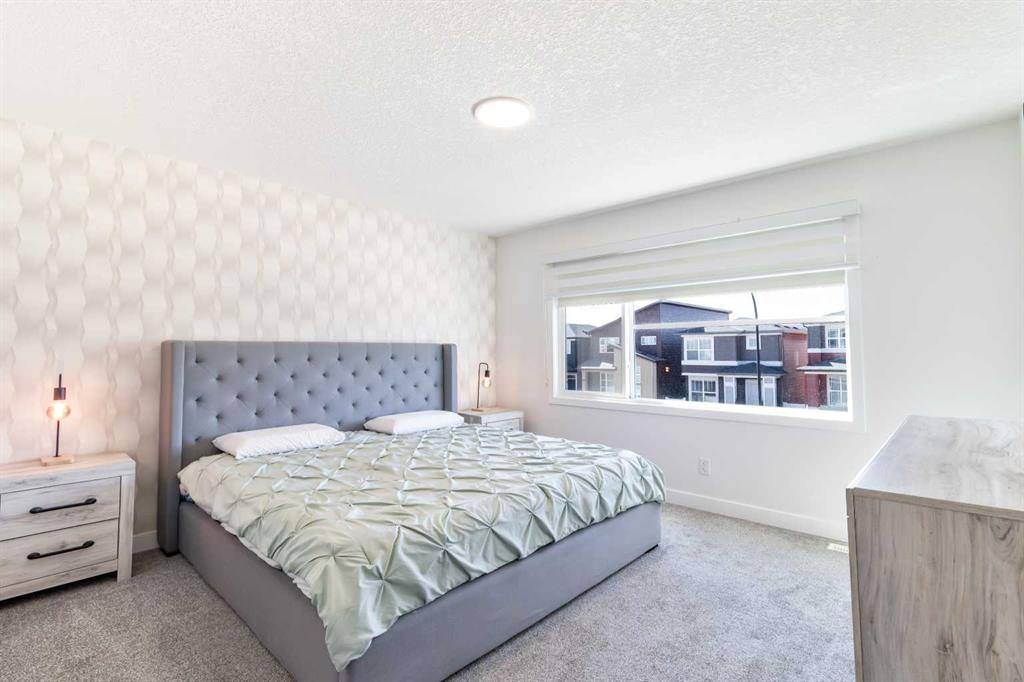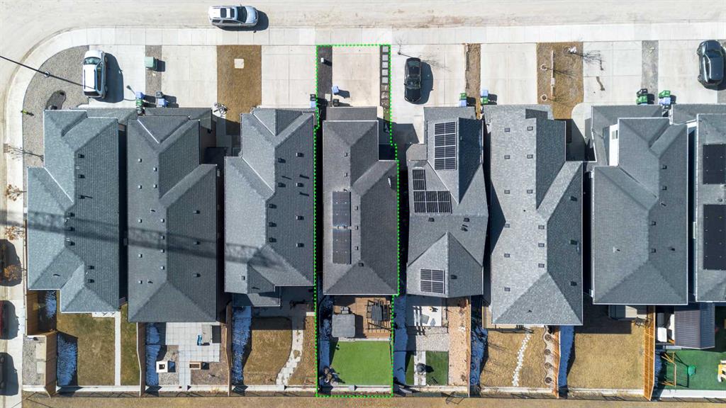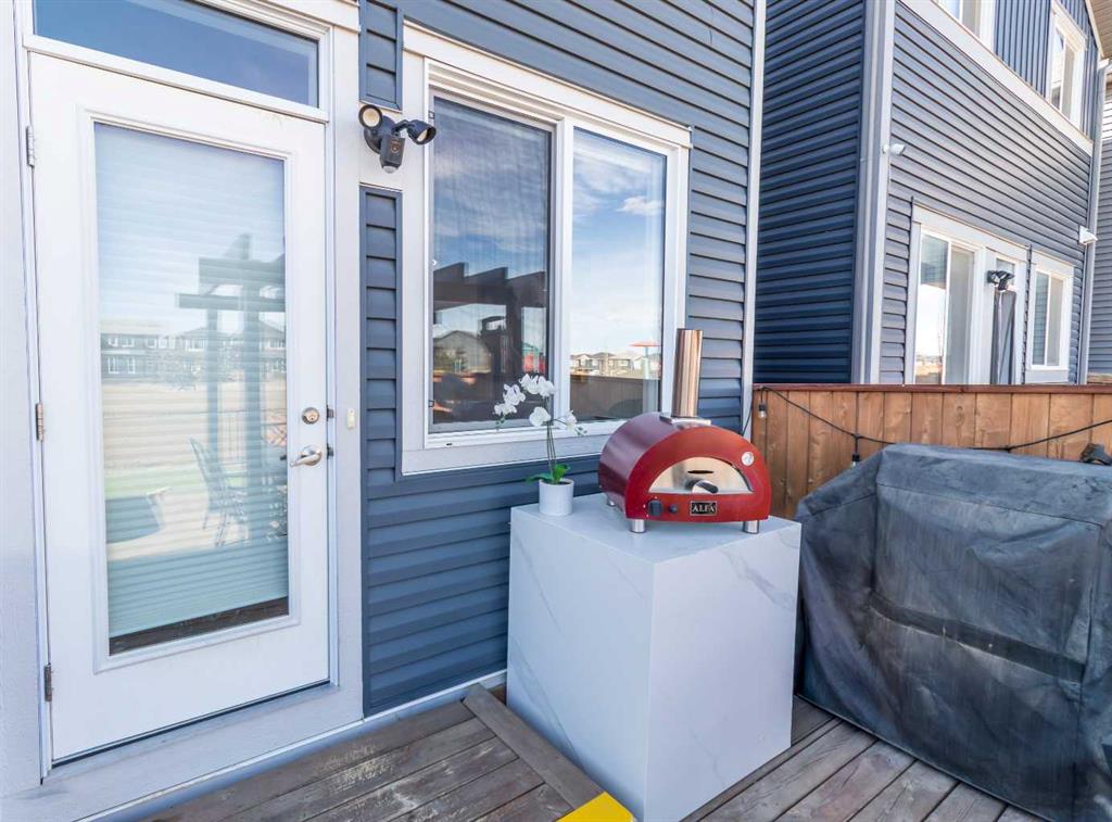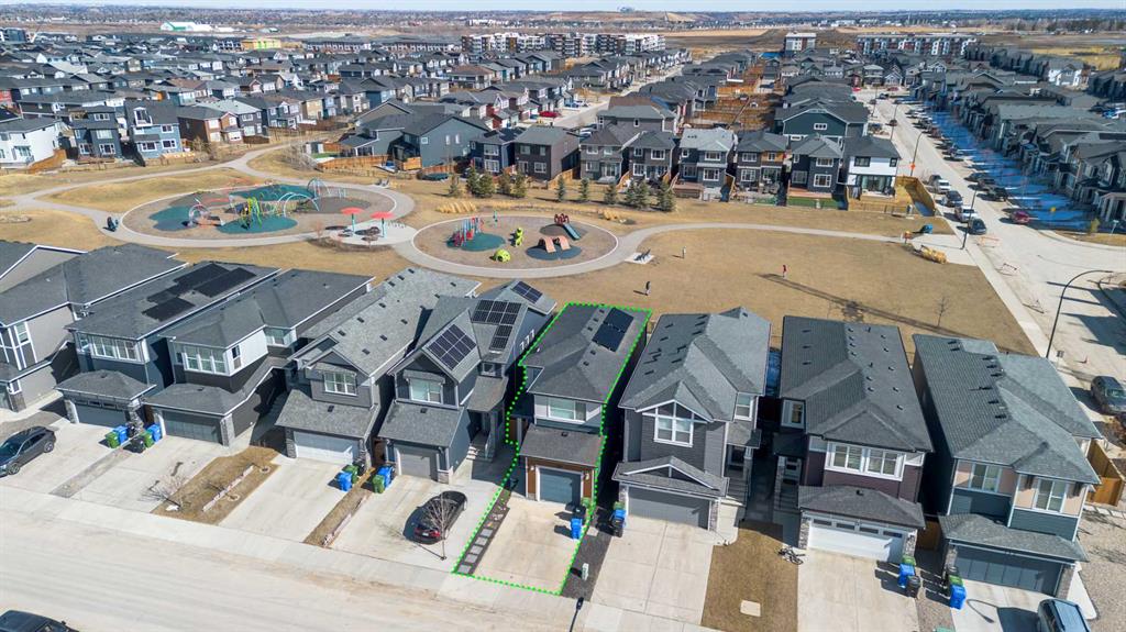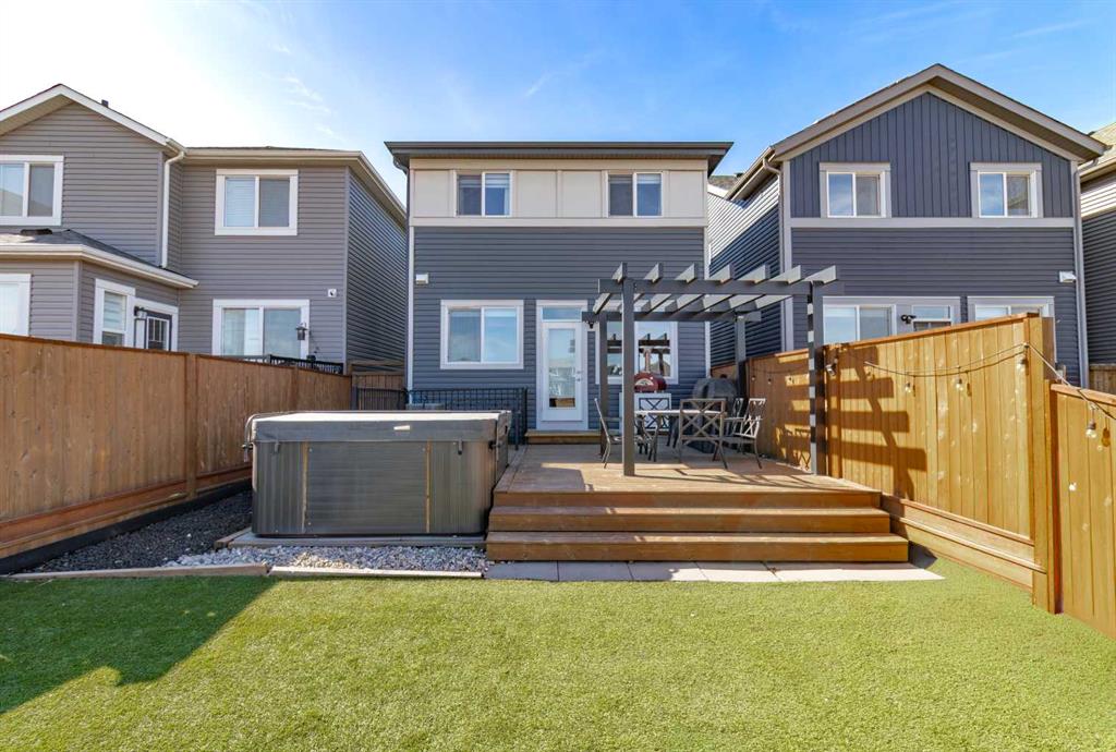 Welcome to this beautifully designed 3-bedroom Jayman home that blends style, comfort, and energy efficiency. The open-concept main floor is filled with natural light from large rear windows, creating a bright and welcoming atmosphere throughout the living, dining, and kitchen areas. A convenient 2-piece bathroom is also located on the main floor, adding extra functionality for guests and everyday living. The kitchen is the heart of the home, featuring Cambria quartz countertops, stylish cabinetry, premium appliances, and a spacious island, perfect for everyday living and entertaining. The main floor also showcases luxury vinyl plank flooring, upgraded lighting fixtures, designer wallpaper accents, and electronic blinds for added convenience. Upstairs, the primary bedroom offers a spacious retreat with a custom walk-in closet and private ensuite. Two additional well-sized bedrooms, a bonus room, and the convenient upper-level laundry complete the upper floor. Step outside to enjoy the fully landscaped backyard, designed for low maintenance with synthetic turf, rock, and concrete elements. The rear deck with pergola and LED lighting creates an ideal outdoor space for relaxing or hosting gatherings. just beyond the backyard you'll find a green space with a playground and walking paths, perfect for children and dog walks. Enjoy the added peace of mind of being able to see this area from your home, creating a wonderful sense of community. Additional highlights include a tankless on-demand hot water system, HRV, air conditioning, water filtration, and water softener. The home is also equipped with solar panels that can help reduce electricity costs by approximately 50%, offering both sustainability and long-term savings.
