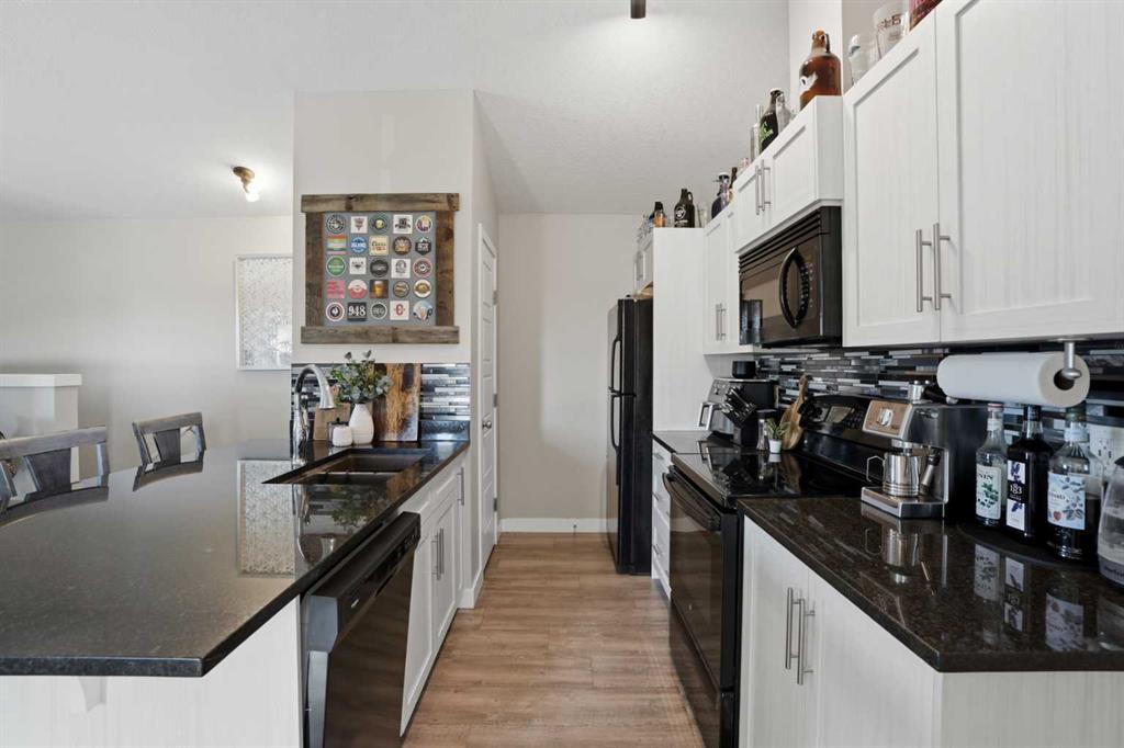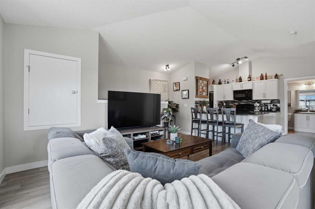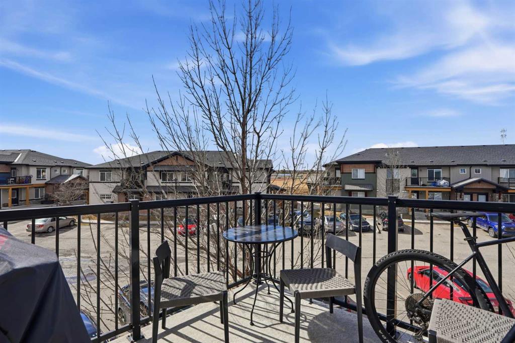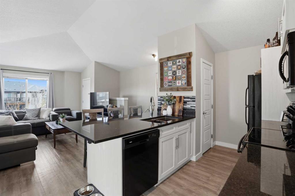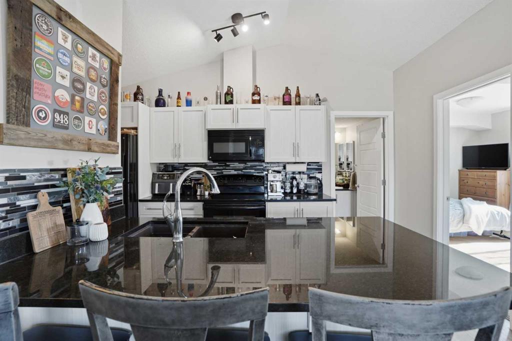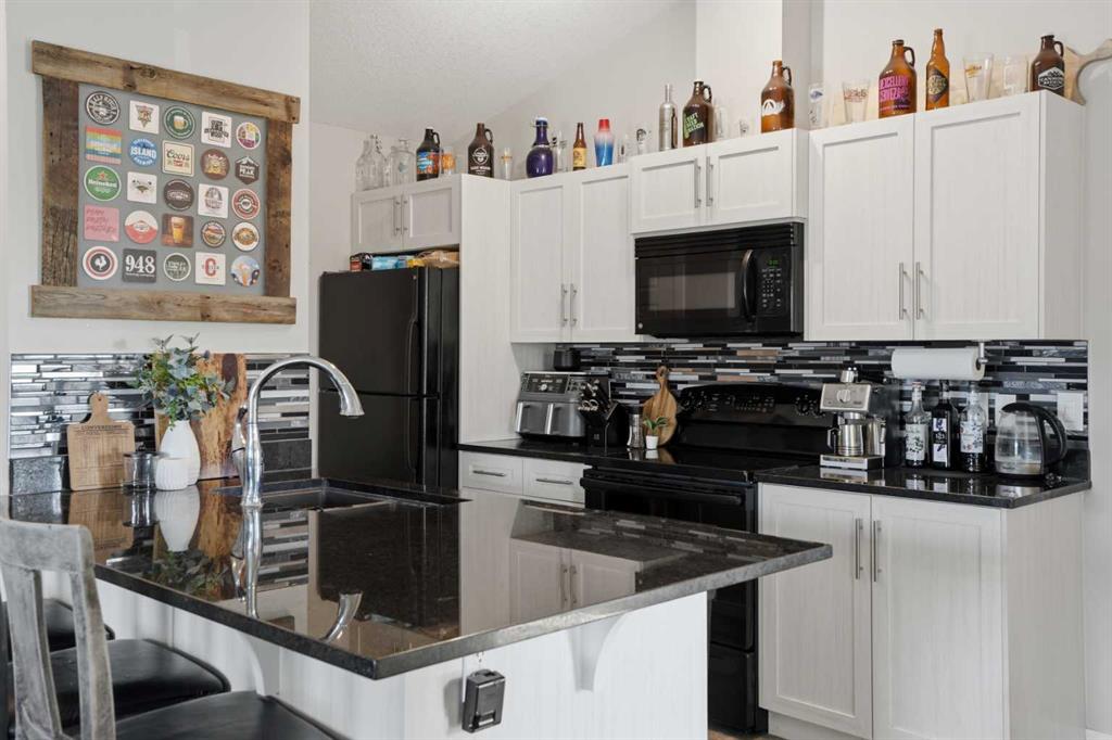 Welcome to this beautifully designed 2-storey condo offering style, space, and functionality in a prime Airdrie location—right next to Chinook Winds Regional Park! Enjoy easy access to scenic walking paths, green space, and outdoor activities all summer long. The main level foyer provides a private entrance and leads upstairs to a bright, open-concept living area featuring soaring vaulted ceilings and large windows that fill the home with natural light. The spacious kitchen is ideal for everyday living and entertaining, complete with granite countertops, black appliances, ample cabinetry, a closet pantry for extra storage, and a breakfast bar with barstool seating. The kitchen flows seamlessly into the dining and living areas, creating an inviting atmosphere. From the living room, step out onto your private balcony—perfect for BBQs and relaxing evenings. This well-appointed unit features 2 comfortable bedrooms with plush carpet and generous closet space, along with a full 4-piece bathroom. You’ll also appreciate the convenience of in-suite laundry and additional in-unit storage—perfect for seasonal items. To top it off, this home includes an assigned parking stall for added ease and convenience. Hurry and book a showing at this gorgeous home today!
